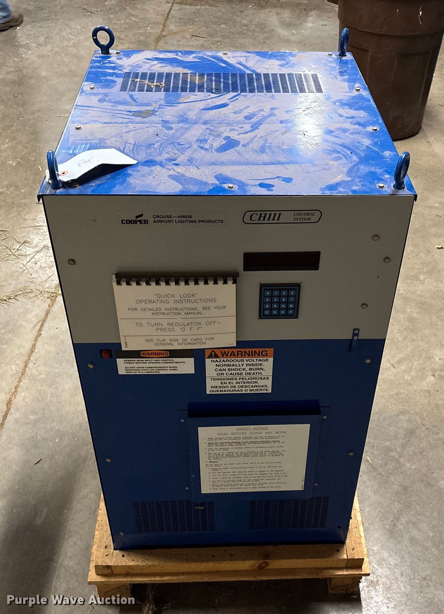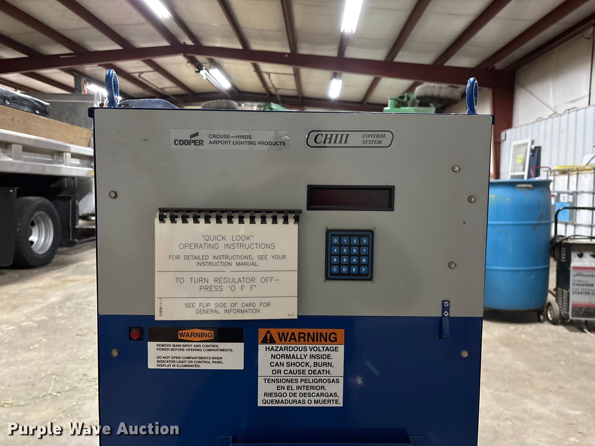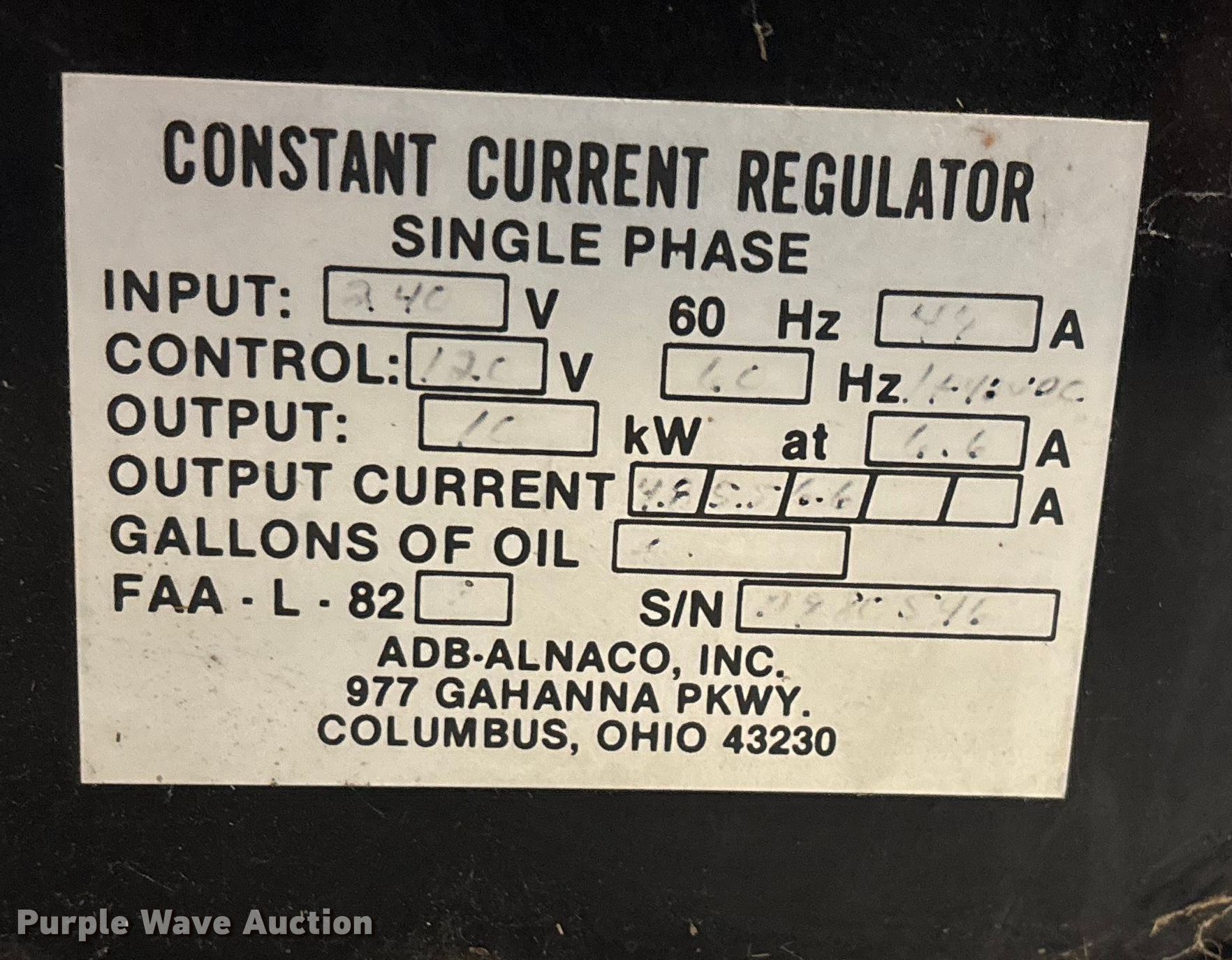 Purple Wave is selling a used Building Materials in Missouri. This item is a (4) airport runway lighting constant current regulators with the following: Eaton/ Cooper Crouse-Hinds Series Constant Current Regulator, ID: FAA L-828, Serial: 2789, Volts: 240, Hertz: 60, Output: 7.5 KW, Phase: Single, Cooper Crouse-Hinds, Constant current regulator, ID: FAA L - 828, Serial: 2461, Volts: 240, Hertz: 60, Output: 10 kW, Phase: Single, Crouse-Hinds Constant Current Regulator, ID: FAA-L-828, Serial: 2696, Volts: 240, Hertz: 60, Output: 7.5 kW, Phase: Single, Constant Current Regulator, Volts: 240 v, Output: 10 kW, Non-operational unit