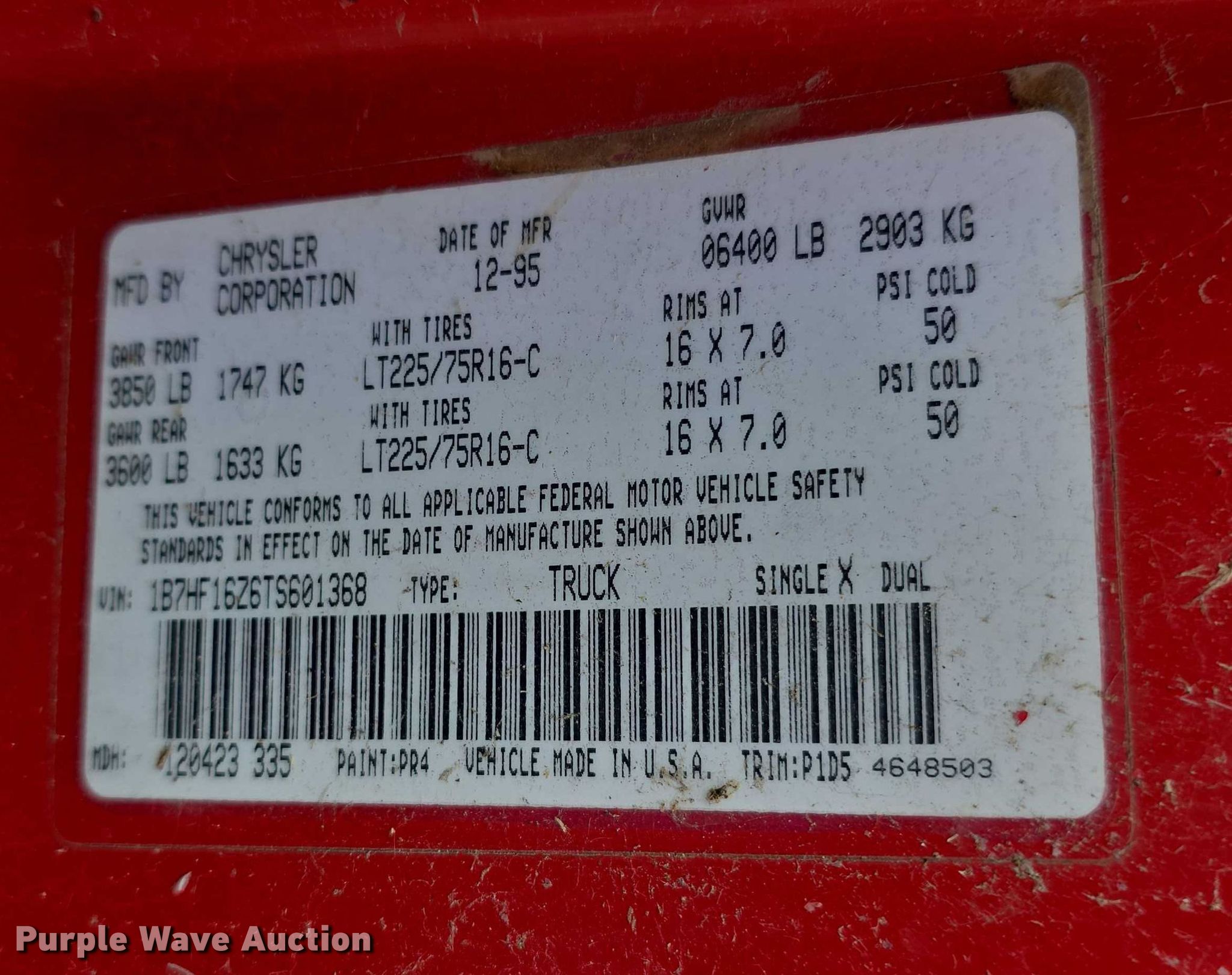 - VIN: 1B7HF16Z6TS601368