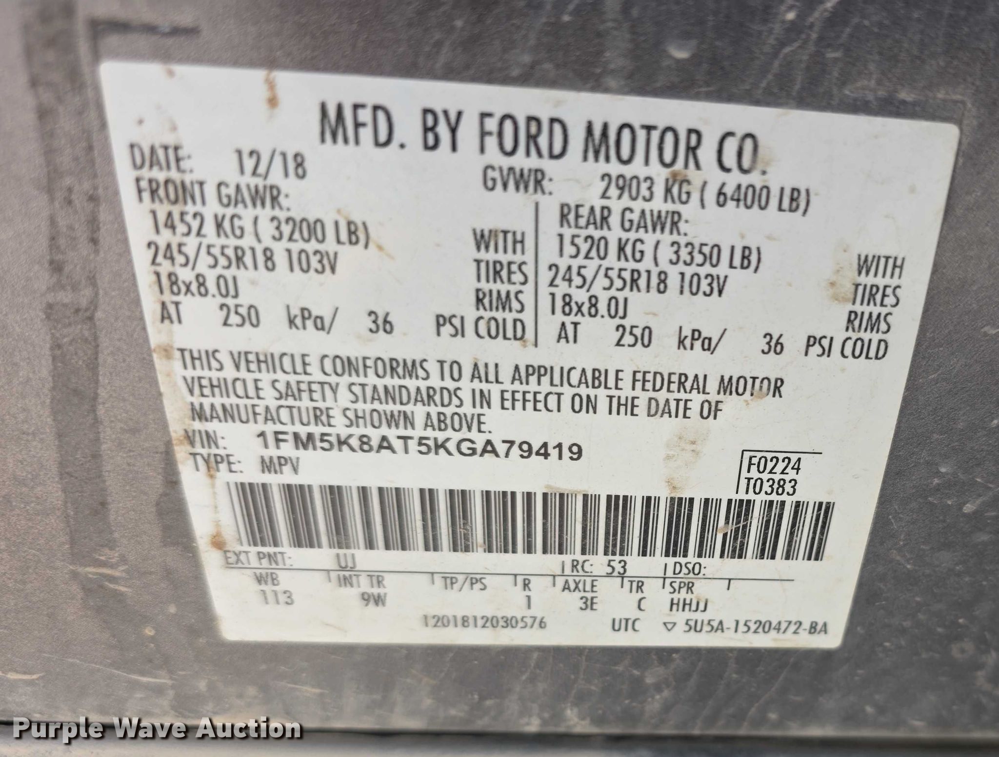 Purple Wave is selling a used Passenger Vehicle in Kansas. This item is a 2019 Ford Explorer Police Interceptor SUV with the following: Miles: 153,063 on odometer, VIN: 1FM5K8AT5KGA79419, Unit #: 19