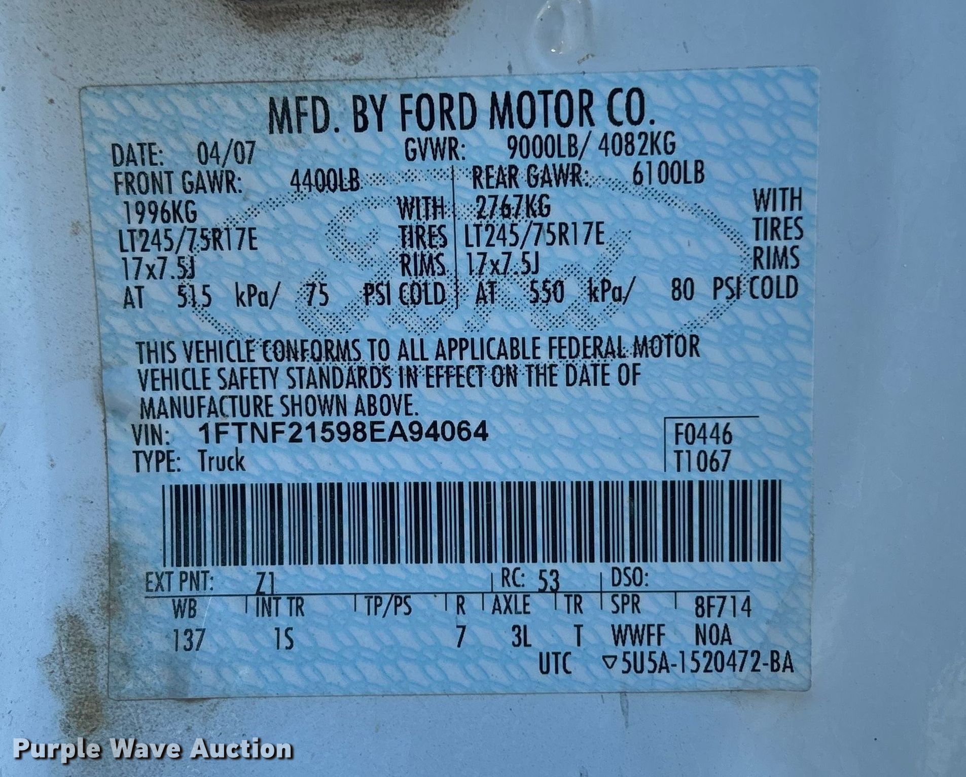 Purple Wave is selling a used 3/4 or 1 Ton Pickup or Van in Nebraska. This item is a 2008 Ford F250 Super Duty XL utility bed pickup truck with the following: Miles: 72,659 on odometer, VIN: 1FTNF21598EA94064