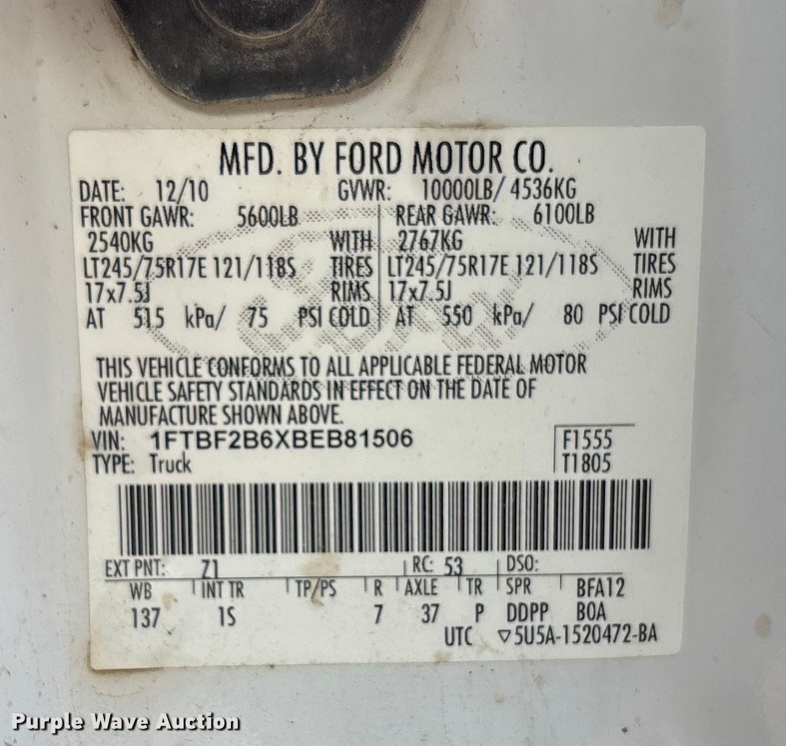 - VIN: 1FTBF2B6XBEB81506