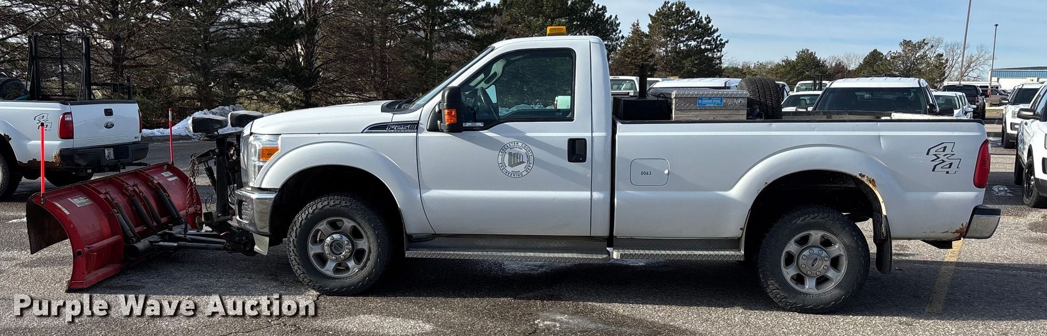 2015 Ford F250 Super Duty XL pickup truck. Miles: 151,317 on odometer, VIN: 1FTBF2B68FEA46854. Engine Displacement: 6.2L, Cylinders: 8, Fuel type: Gas. Transmission Automatic, Four wheel drive. Interior AC, Heat, Heated mirrors, Power windows, Power locks, Cruise control, Brake controller. Features Better Bill transfer tank Capacity: 100 gallons, Western Plow Pro Plus Ultra Finish snow plow. Tires Size: 265/70R17. Notes Dash warning indicator: TPMS. Nebraska title. Title distribution may be delayed up to 14 days from verification of funds. Lancaster County Engineer. Lincoln, NE 68528