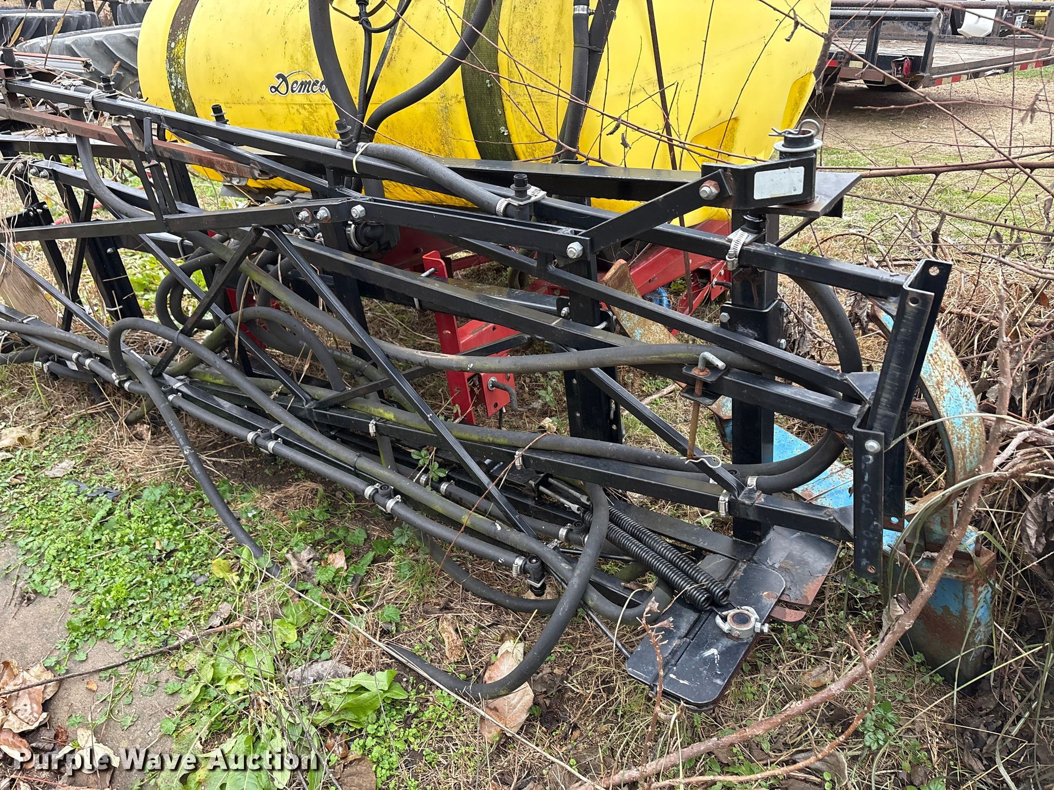 Purple Wave is selling a used Applicator Attach. in Texas. This item is a Demco sprayer with the following: Hitch: Three point, Solution tank, Capacity: 400 gallons, Type: Poly, Boom, Width: 219", Sections: 4, Manual fold, Nozzles, Nozzle bodies: Single, Spacing: 15",
