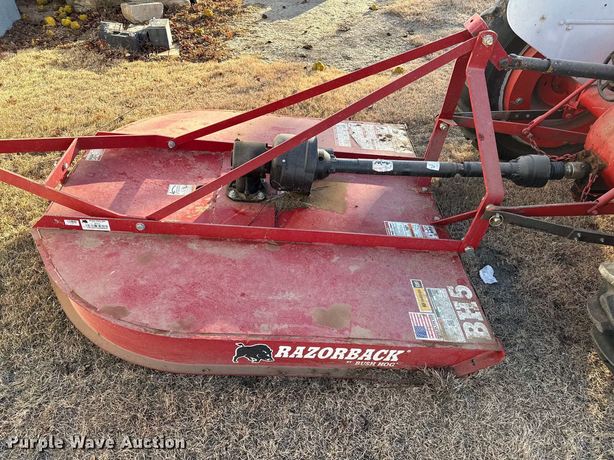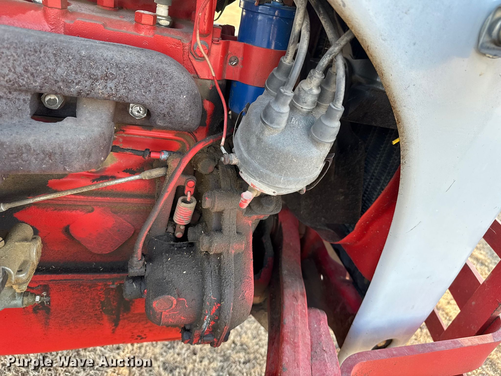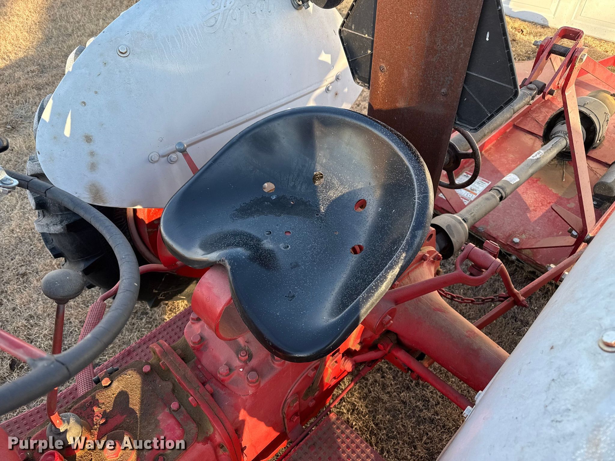 1950 Ford 8N tractor. Serial: 303295. Engine Ford, Displacement: 2.0L, Cylinders: 4, Fuel type: Gas. Transmission Manual, 4F - 1R. Features PTO: 540, Three point Top link, Rotary mower Bush Hog BH5 Razorback Serial: 1HCHR1182290431, Hitch: three point, Working width: 60", PTO: 540, Tires: Solid.. Tires Front: 6.00-16, Rear: 11.2-28, Wheel weights: 2. Cimarron, KS 67835