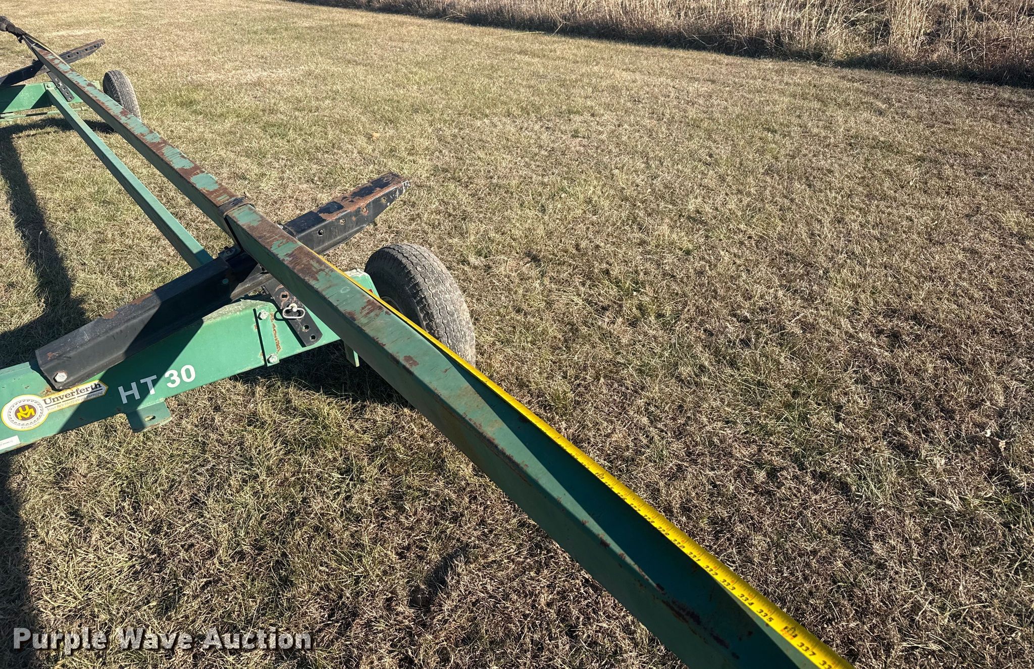 Unverferth header trailer. Dimensions. Overall Length: 40', Width: 81", Deck Length: 30'. Features Deck type: Steel, Hitch: Pin. Tires Steel wheels, Size: 7.50-10. Trenton Butler. Tonganoxie, KS 66086