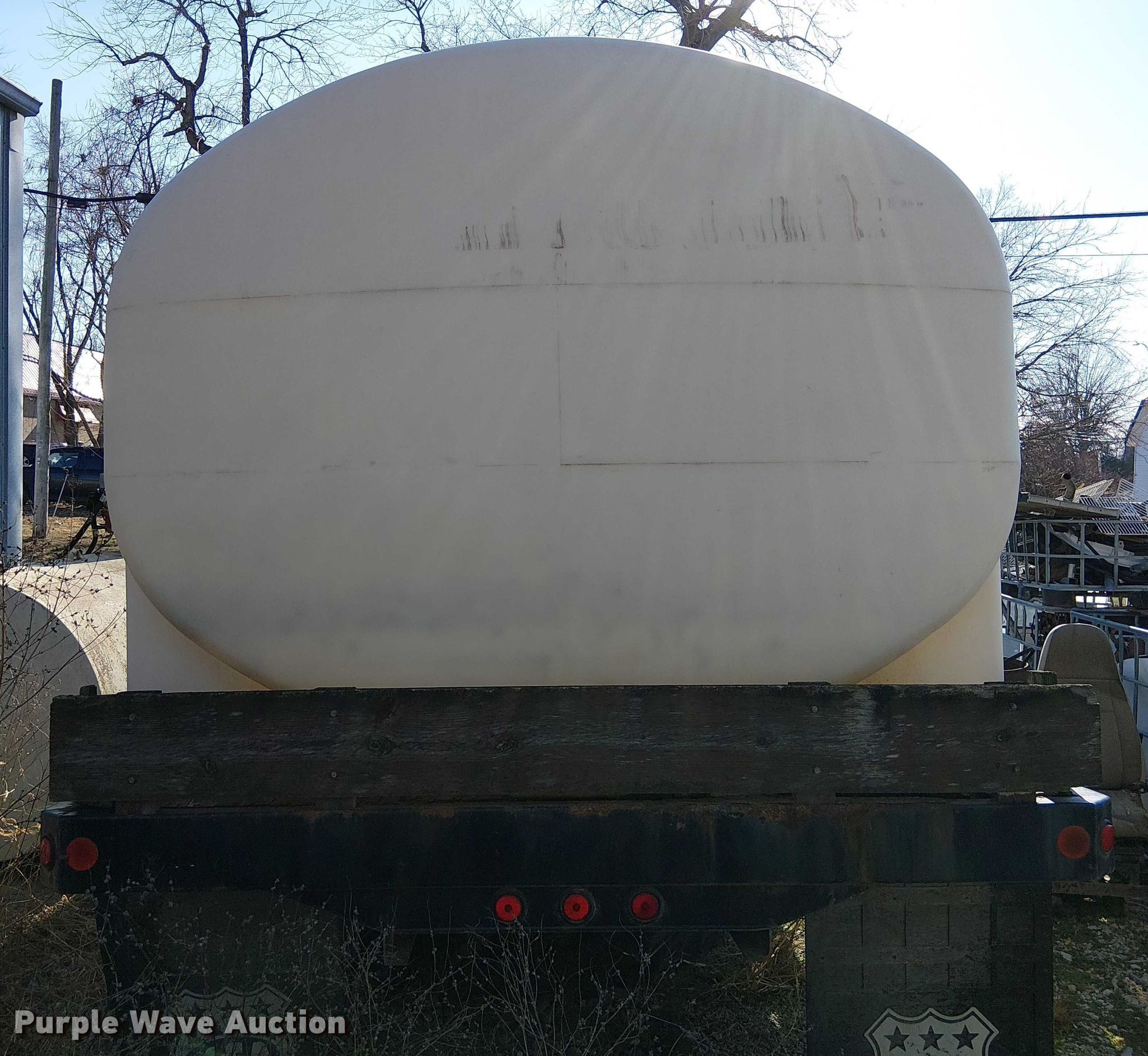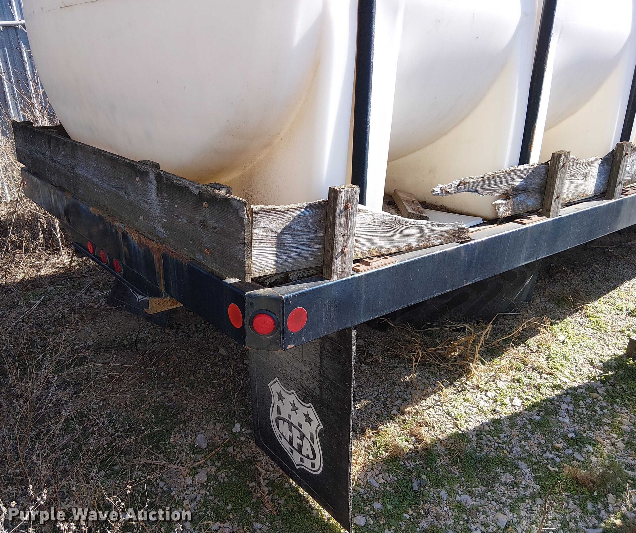 Flatbed. Length: 17' 11", Width: 96", Mixing tank, Poly tank, Capacity: 3,200 gallons. Notes Deck boards damaged. MFA Inc. Hamilton, MO 64644