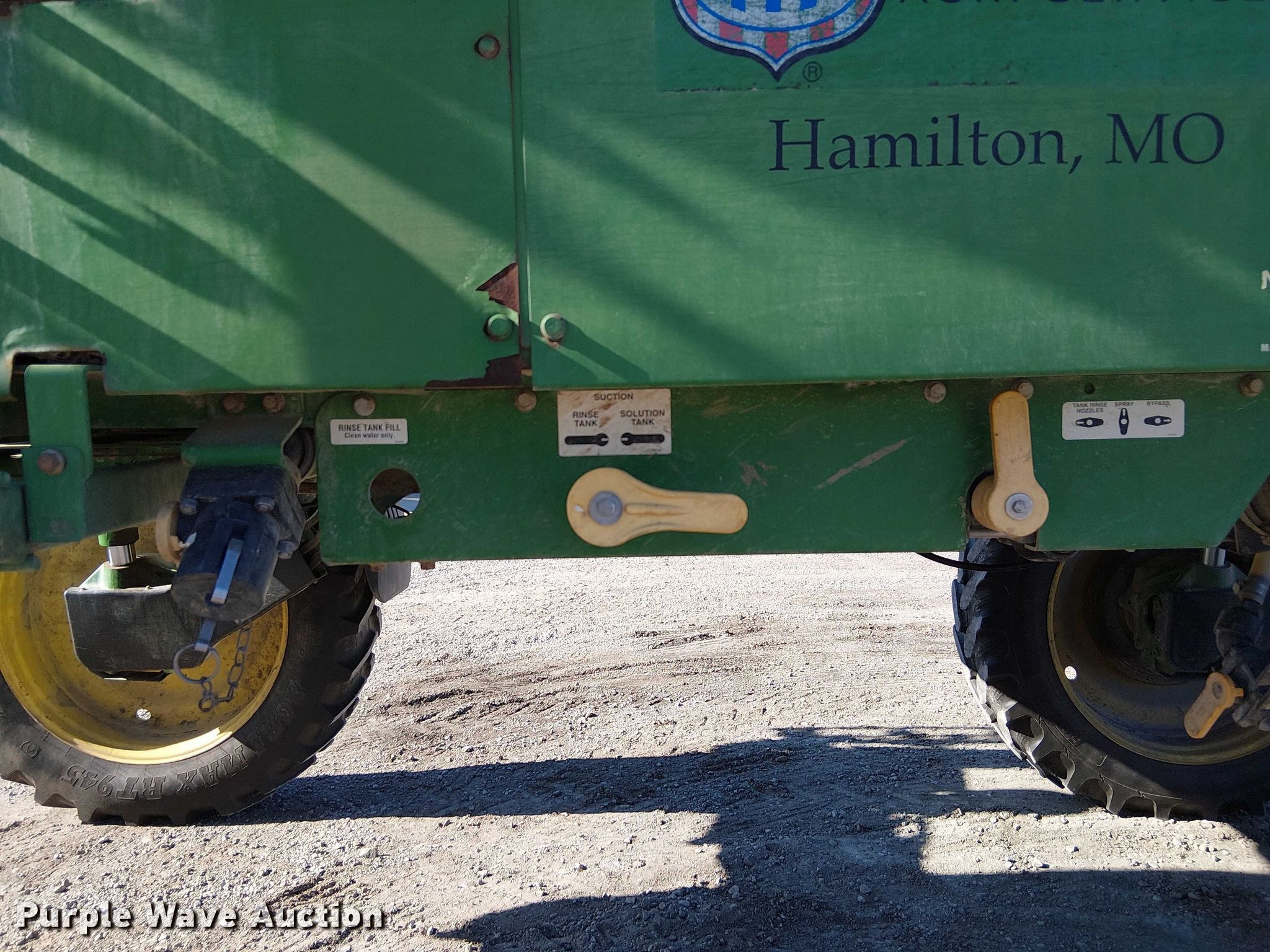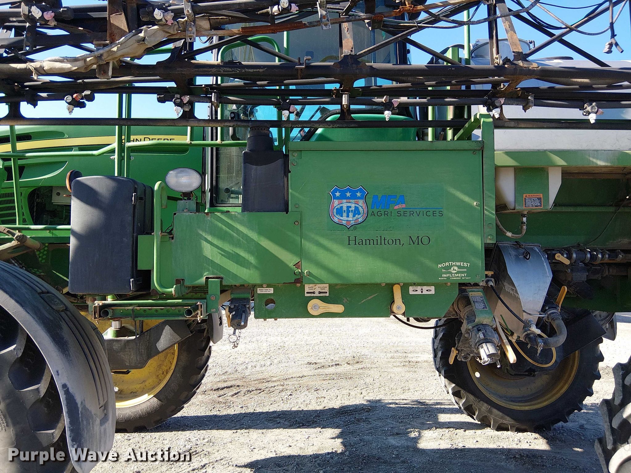 John Deere 4730 sprayer. Engine hours: 6,352 on meter, Serial: 1N04730XCB0018822. Engine John Deere 6068HN053, Serial: P6068L190306, Displacement: 6.8L, Cylinders: 6, Fuel type: Diesel. Transmission Hydrostatic, Four wheel drive. Operators station AC, Heat. Features Hydraulic ladder, Solution tank Capacity: 800 gallons, Type: Stainless Steel, Rinse tank, Clean water tank, Boom Width: 100', Sections: 5, Boom breakaway, Hydraulic boom fold, Hydraulic height control, Nozzle Spacing: 20", Nozzle bodies: 3-way, Electronics GPS monitor John Deere, GPS receiver John Deere StarFire 3000.. Tires Size: 380/90R46, Row crop tires. MFA Inc. Hamilton, MO 64644