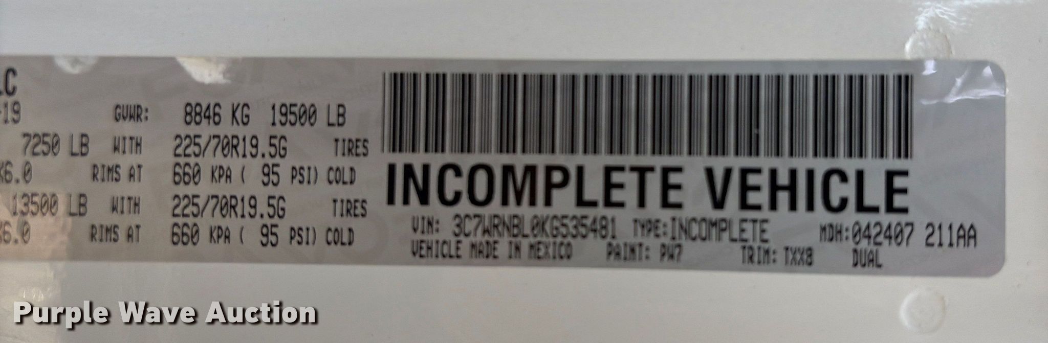 Purple Wave is selling a used Service Truck in Texas. This item is a 2019 RAM 5500 utility / service truck with the following: Miles: 178,129 on odometer, VIN: 3C7WRNBL0KG535481