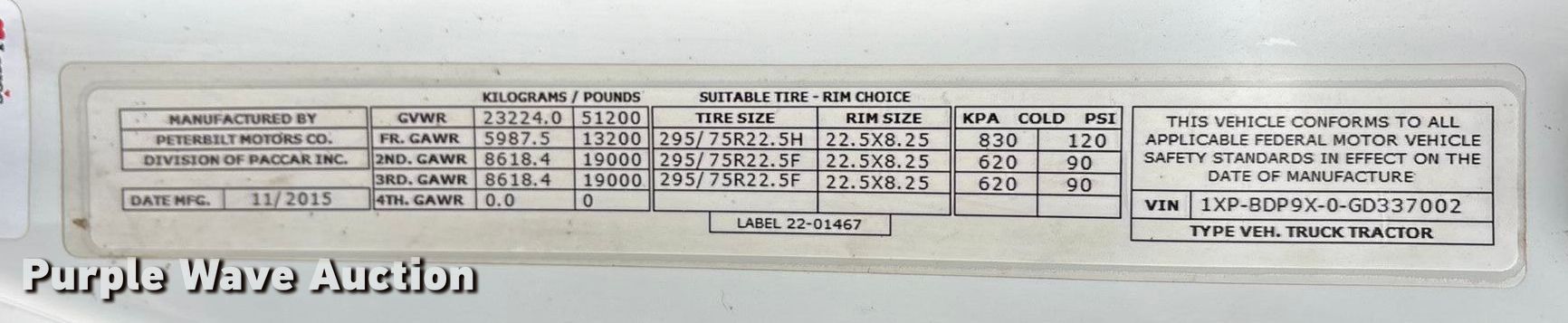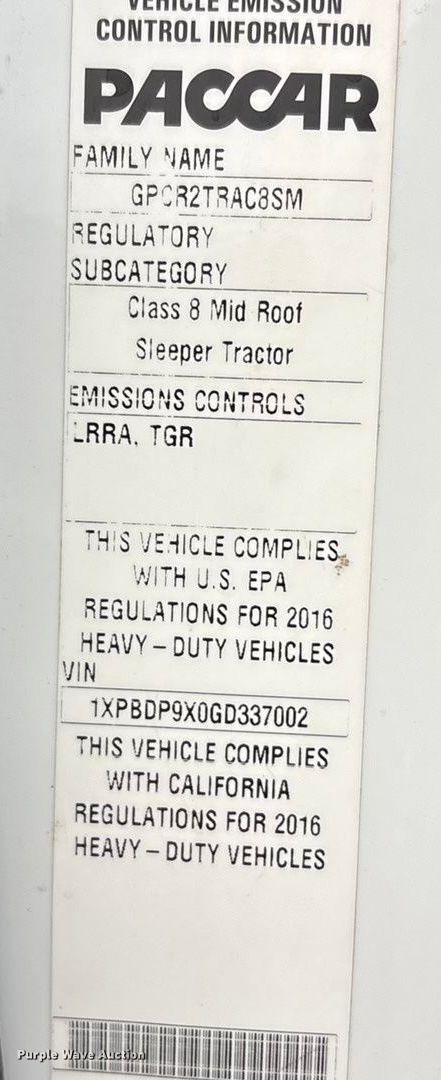 - VIN: 1XPBDP9X0GD337002