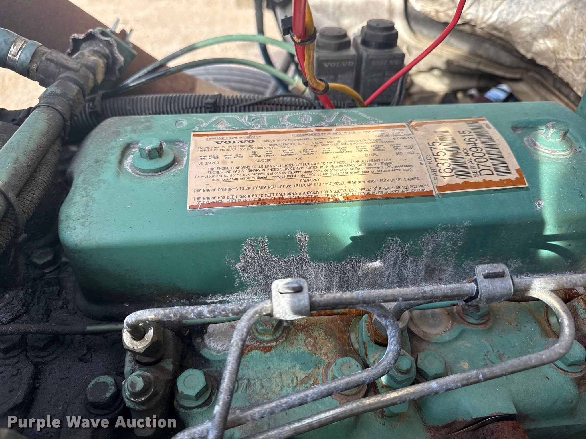 1998 Volvo Truck WG truck cab and chassis. Miles: 72,002 on odometer, VIN: 4VGJBAHD6WN861553. Engine Volvo VE7, Displacement: 6.7L, Cylinders: 6, Fuel type: Diesel. Transmission Eaton Fuller, Manual, Speed: 9. Chassis Axles: Single, Suspension: Spring, Brakes: Air, Truck chassis: 10', GVWR: 34,500 lbs FAWR: 12,000 lbs, RAWR: 22,500 lbs. Interior AC, Heat, Heated mirrors, Brake controller. Features Fuel tank: Single. Tires Front: 11R22.5, Rear: 11R24.5. Notes Windshield chipped or cracked. Oklahoma title. Seller is an Oklahoma licensed motor vehicle dealer. Buyers may be required to provide identification to the licensed dealer to comply with state laws. Title will be assigned and distributed by the dealer. Please contact the seller for distribution questions. Title distribution may be delayed up to 30 days from verification of funds. Collinsville, OK 74021