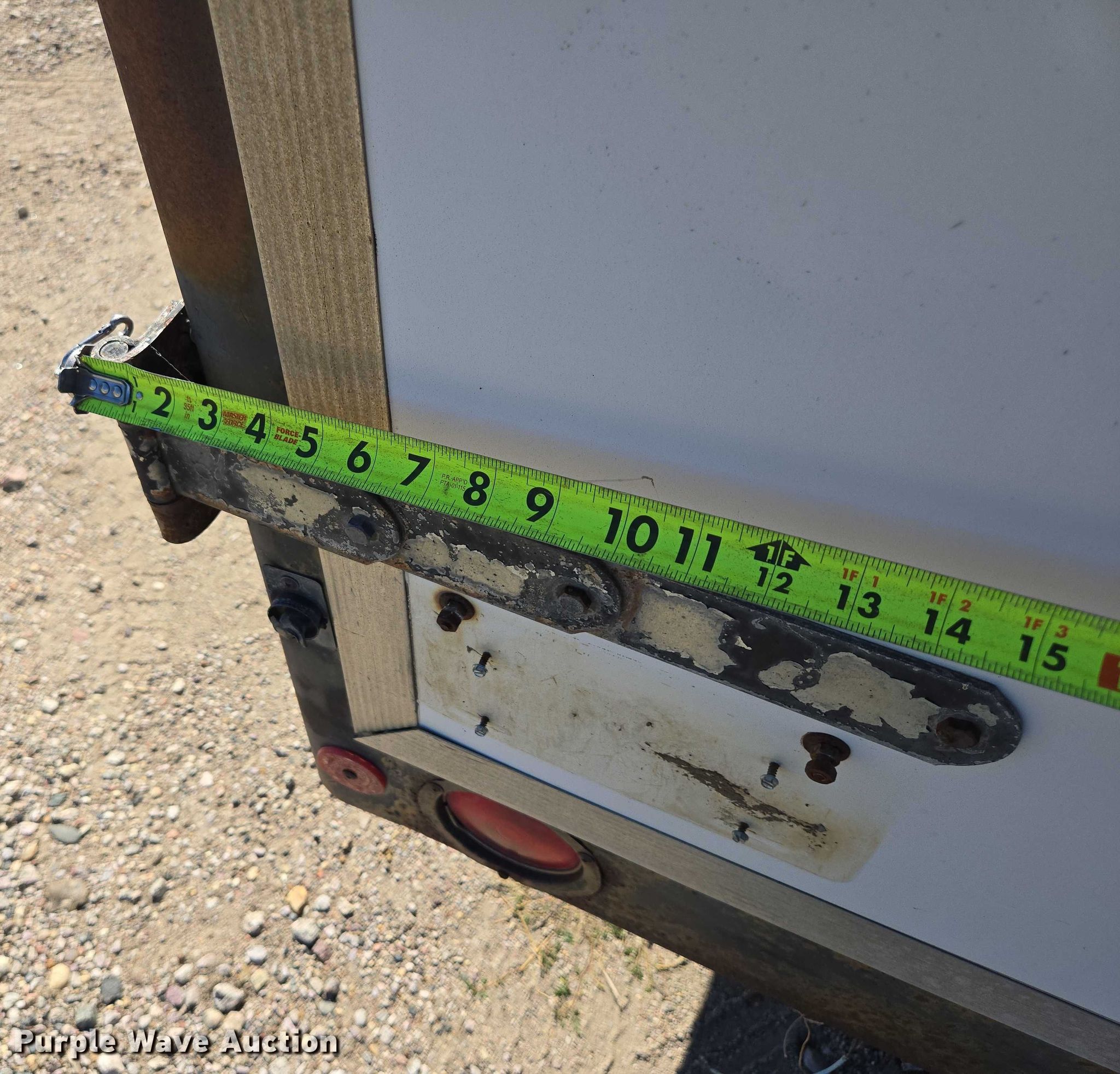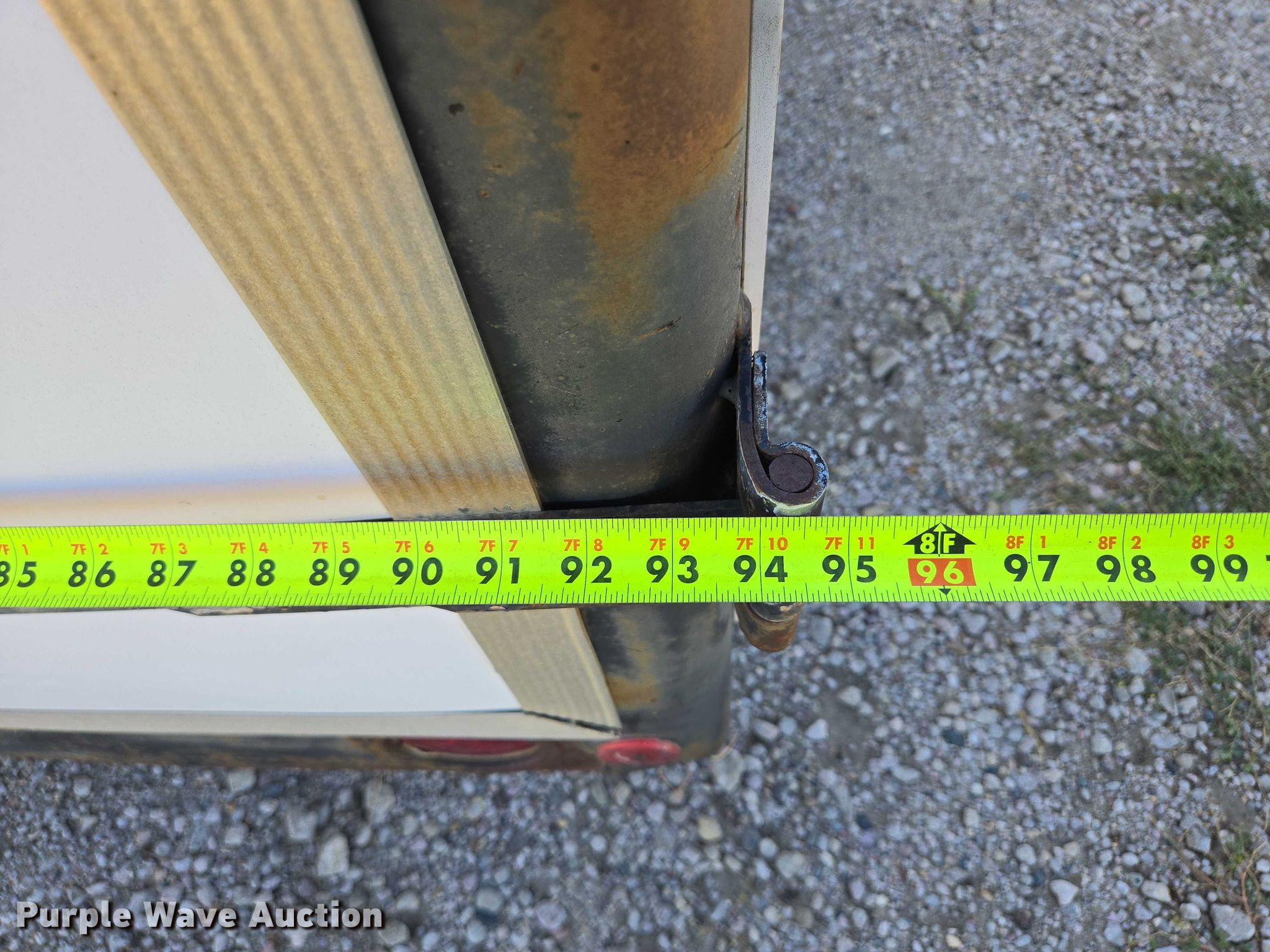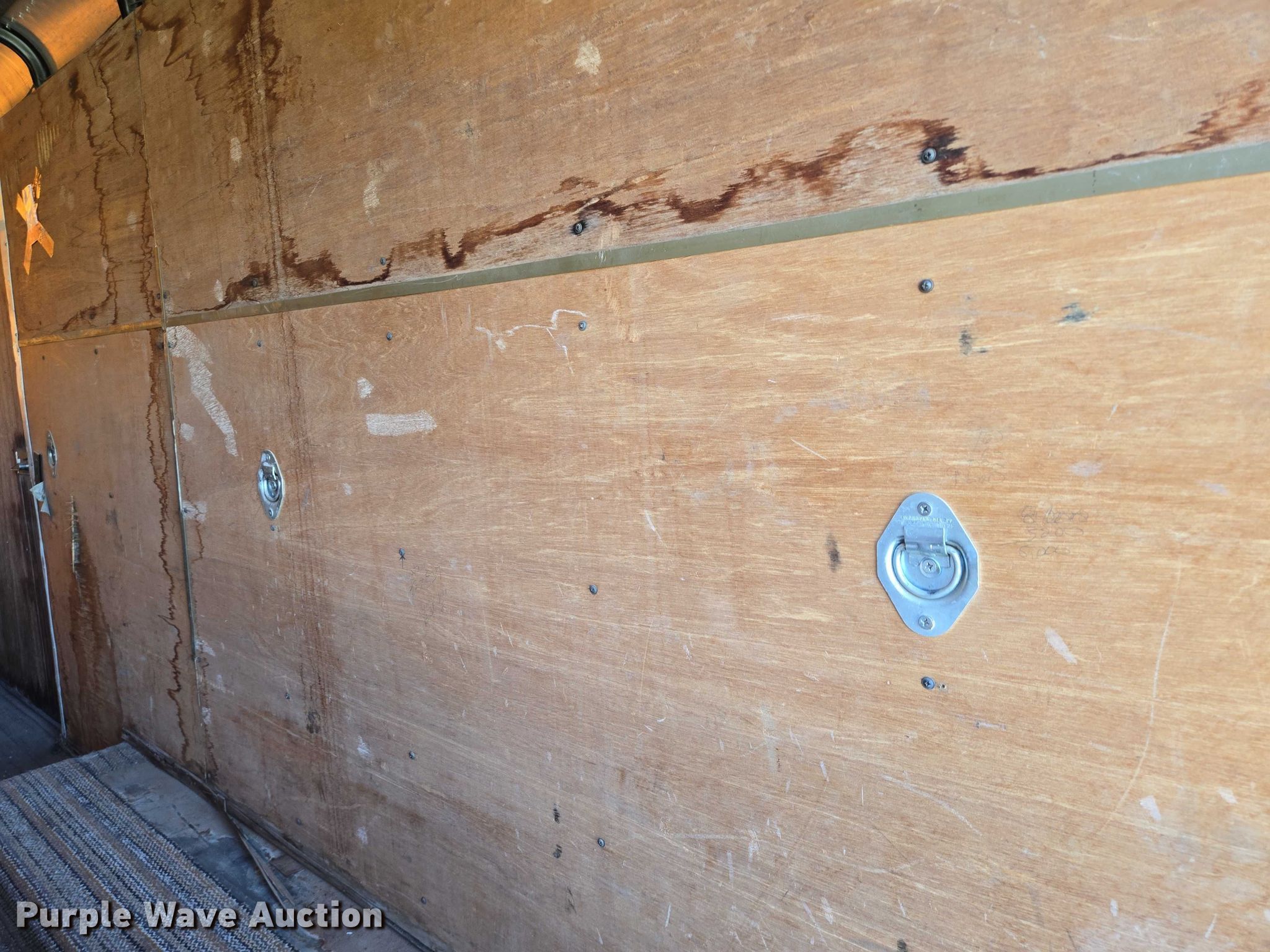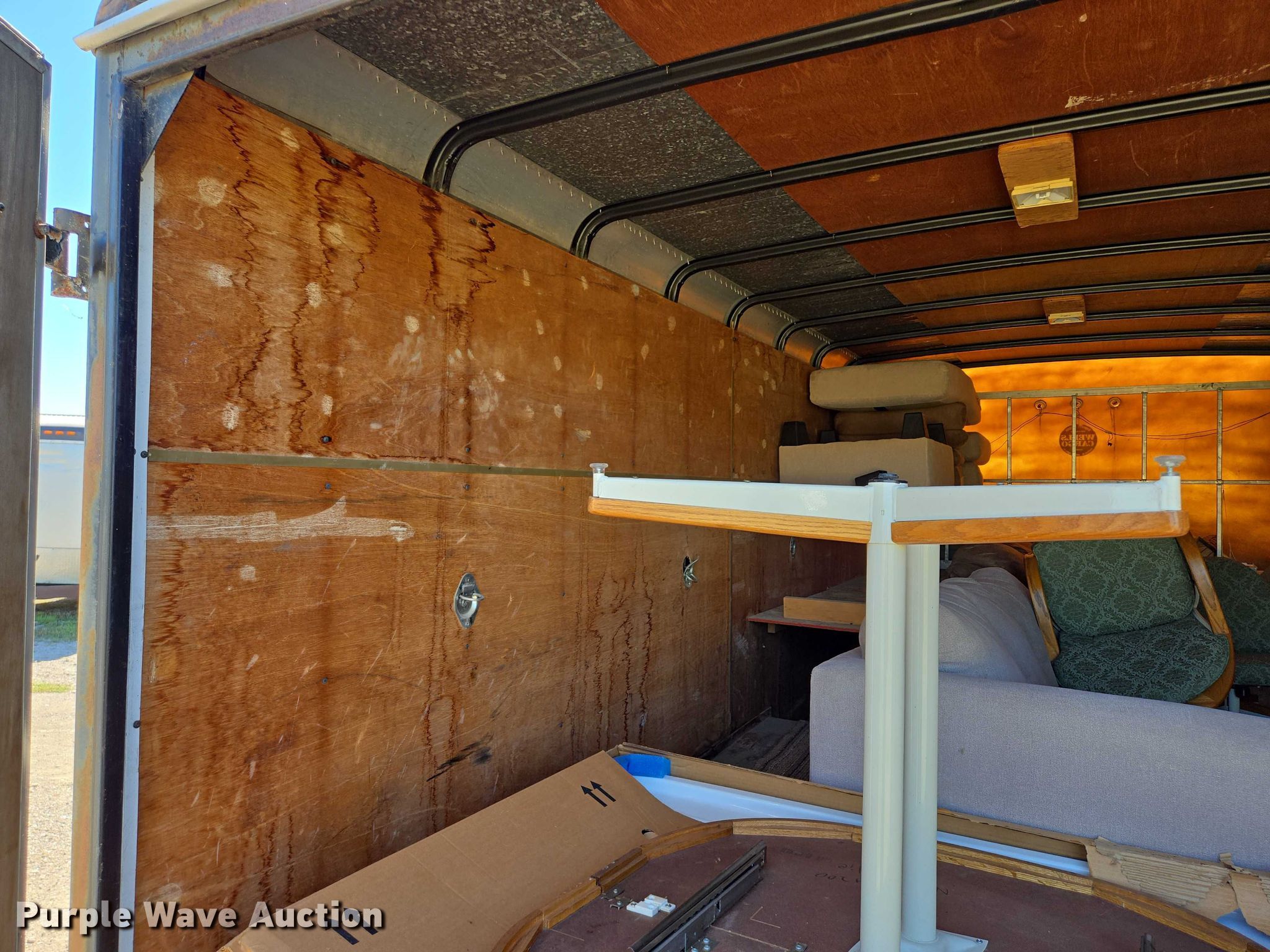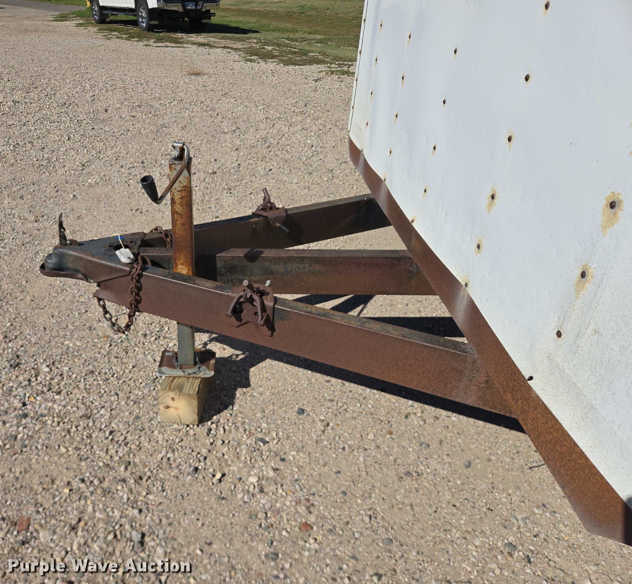 1984 Wells Cargo Express Wagon enclosed cargo trailer. VIN: 1WC200G29E1030628. Dimensions Overall Length: 21', Width: 95", Body Length: 17', Width: 95". Features Deck type: Wood. Chassis Ball hitch: 2 5/16", Landing gear: Single, Suspension: Spring, Brakes: Electric, Axles: Tandem. Tires Steel wheels, Size: 8-14.5. Notes Contents not included, will be removed prior to auction, Decals will be removed prior to sale, Parts damaged. South Dakota title. Title distribution may be delayed up to 14 days from verification of funds. Olson Plumbing Inc.. Pierre, SD 57501