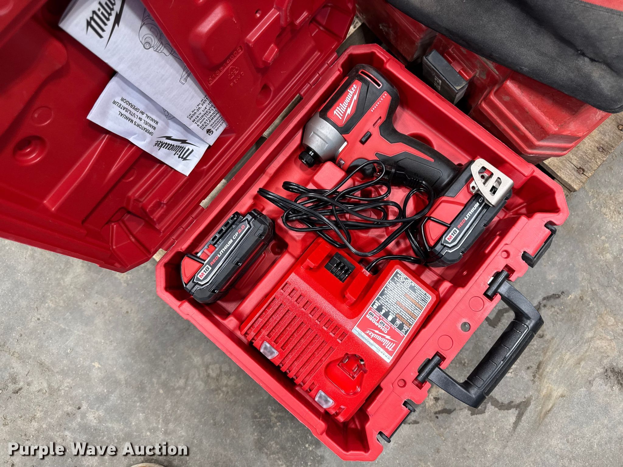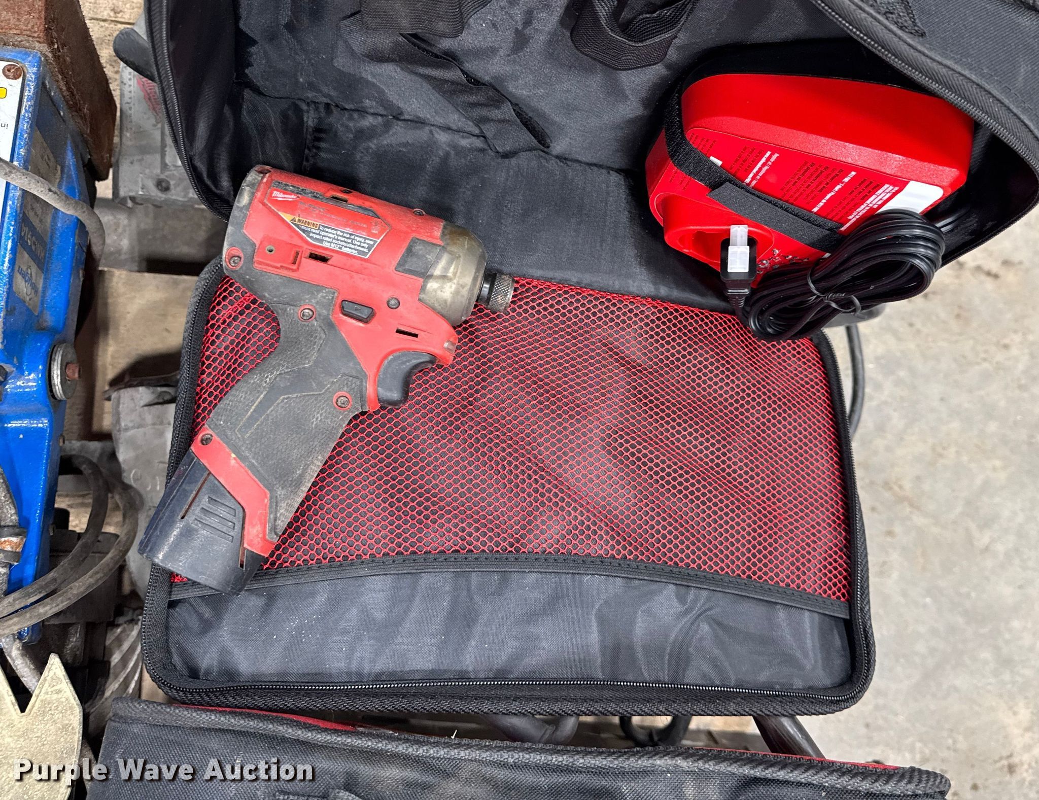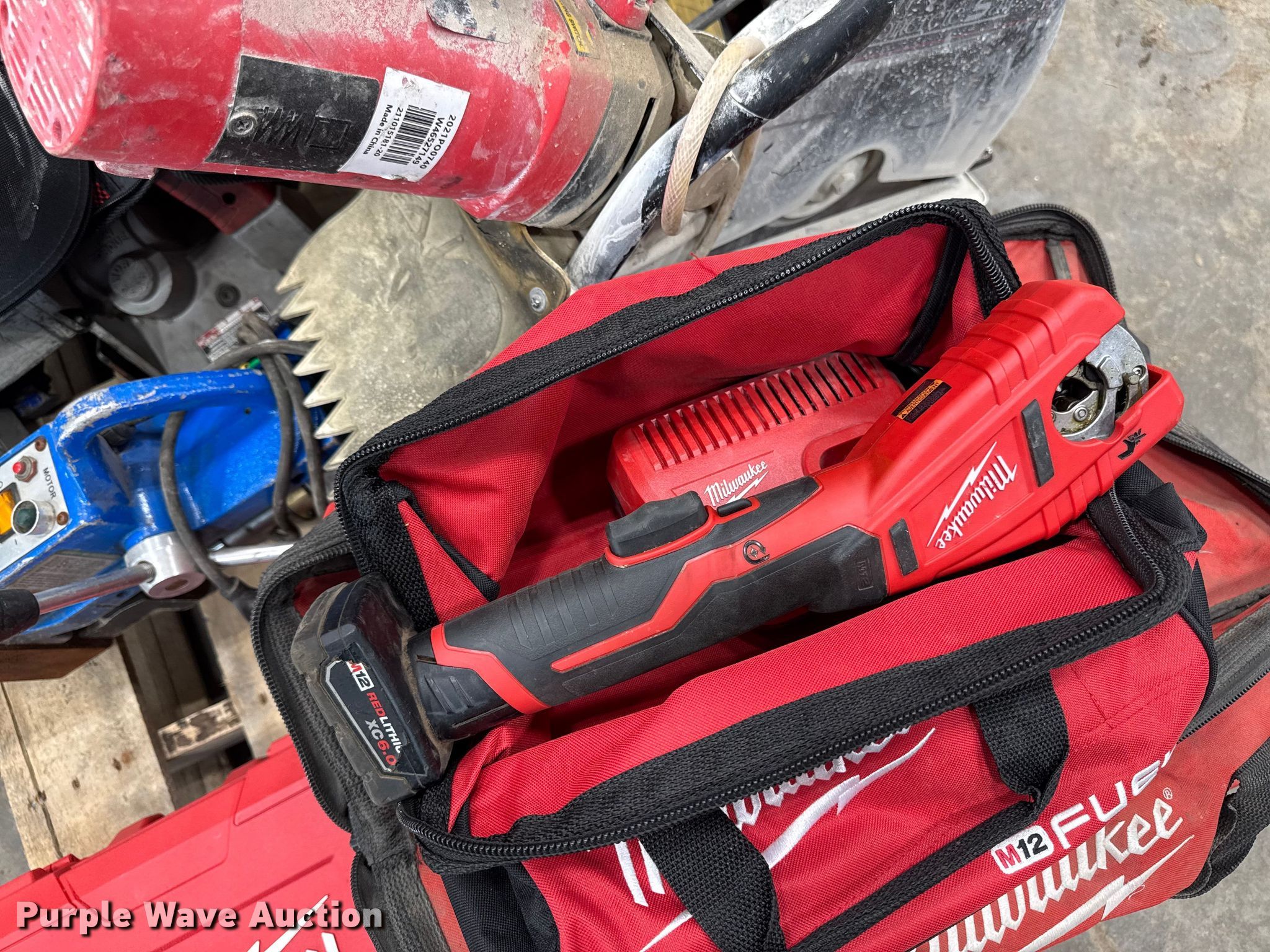 Purple Wave is selling a used Tools in Iowa. This item is a Tools with the following: Milwaukee, Drills, Drivers, Band saws, Mag, Drill, Concrete saw, Core drill, Circular saw, Nail guns