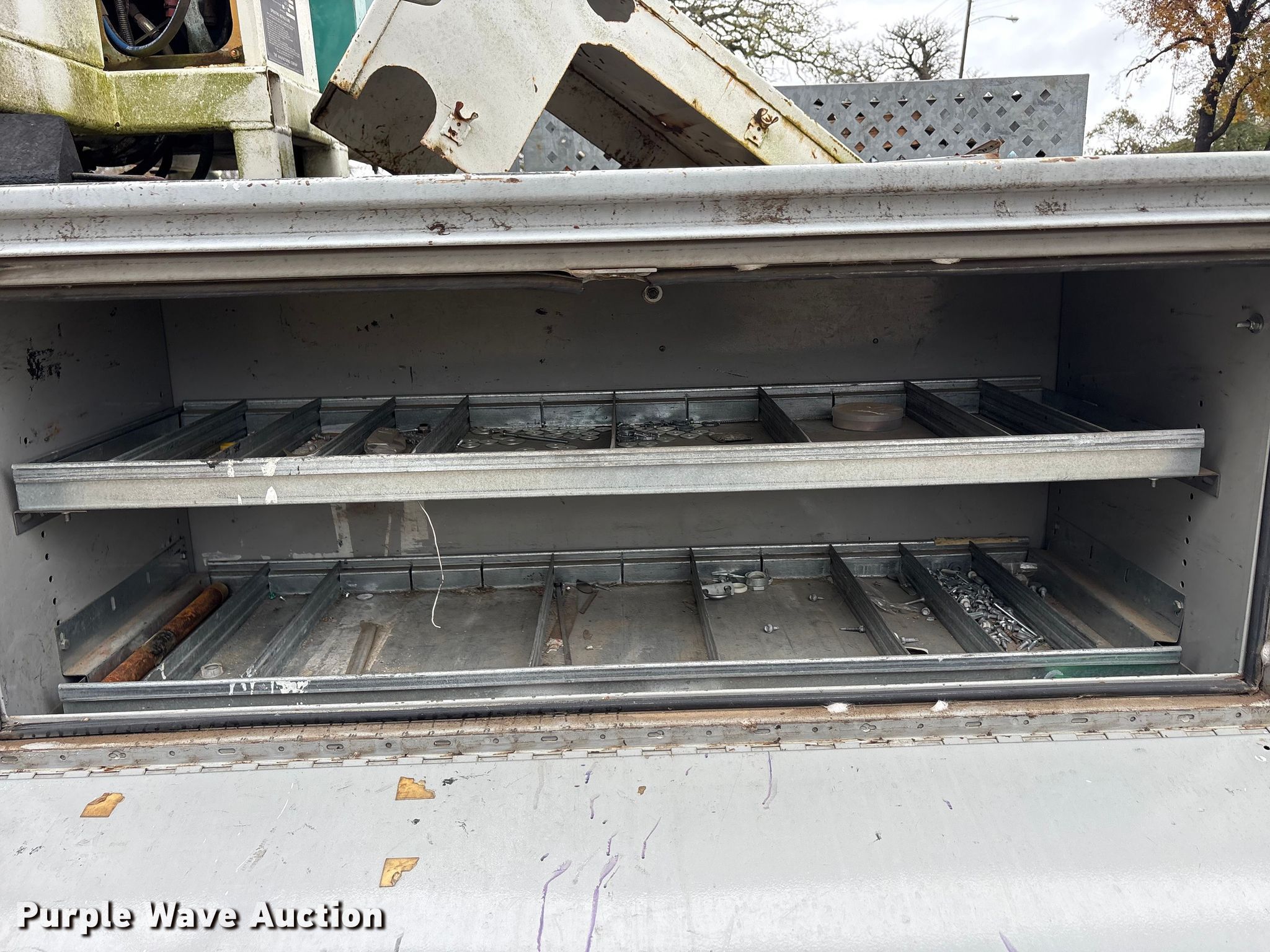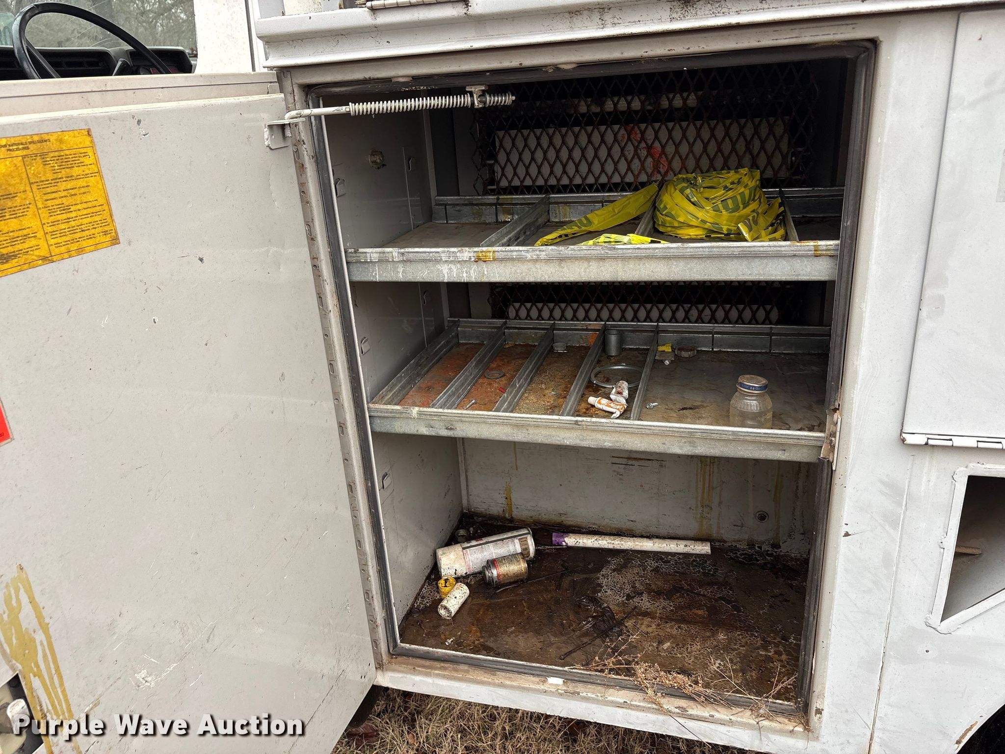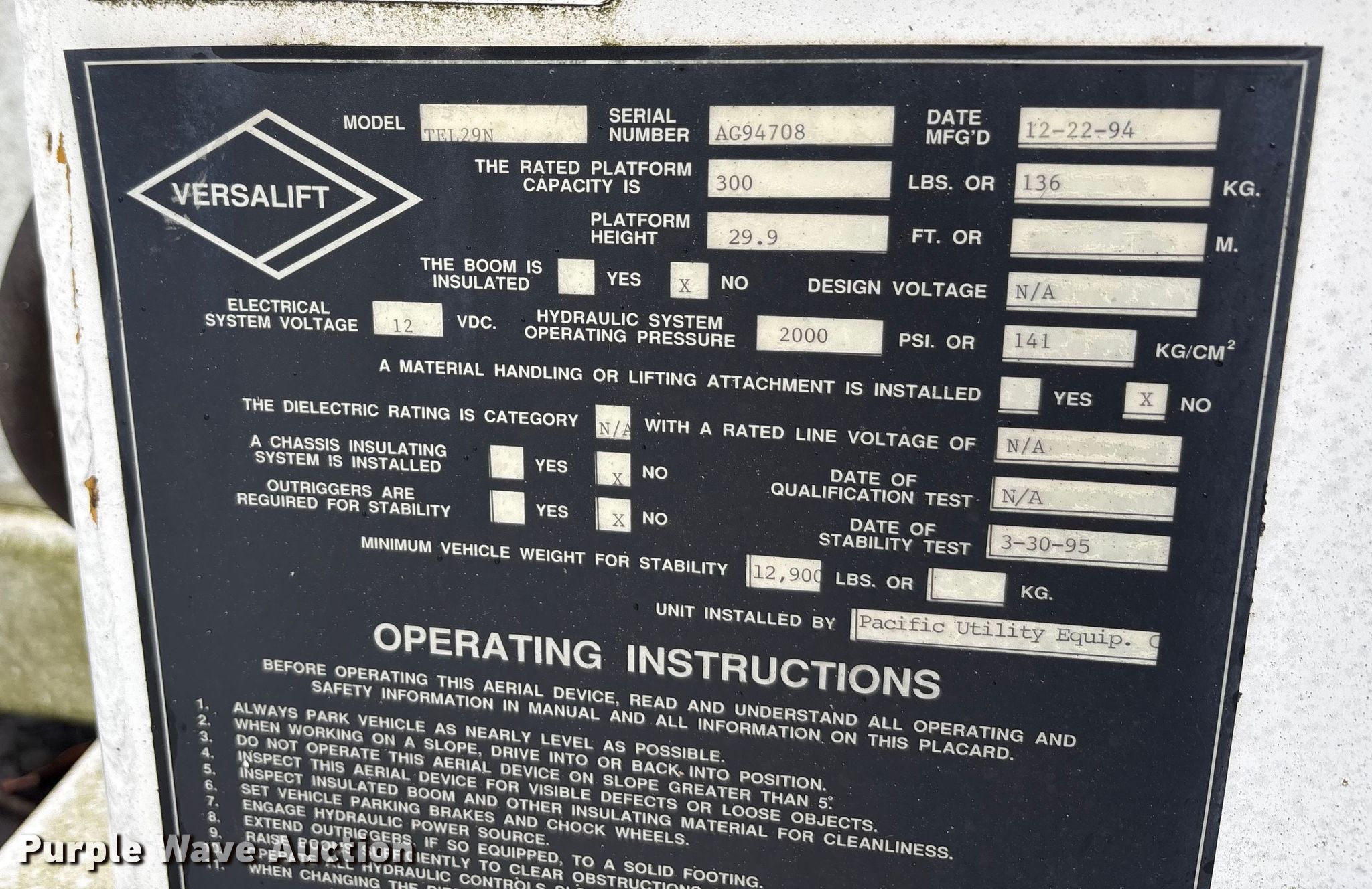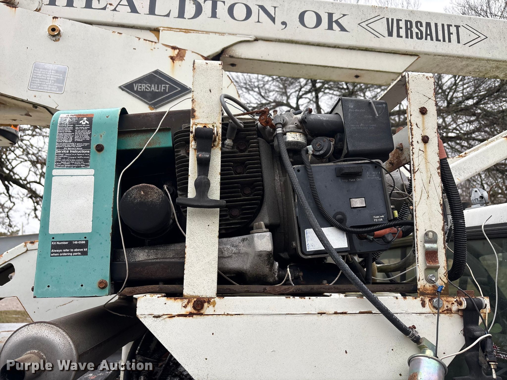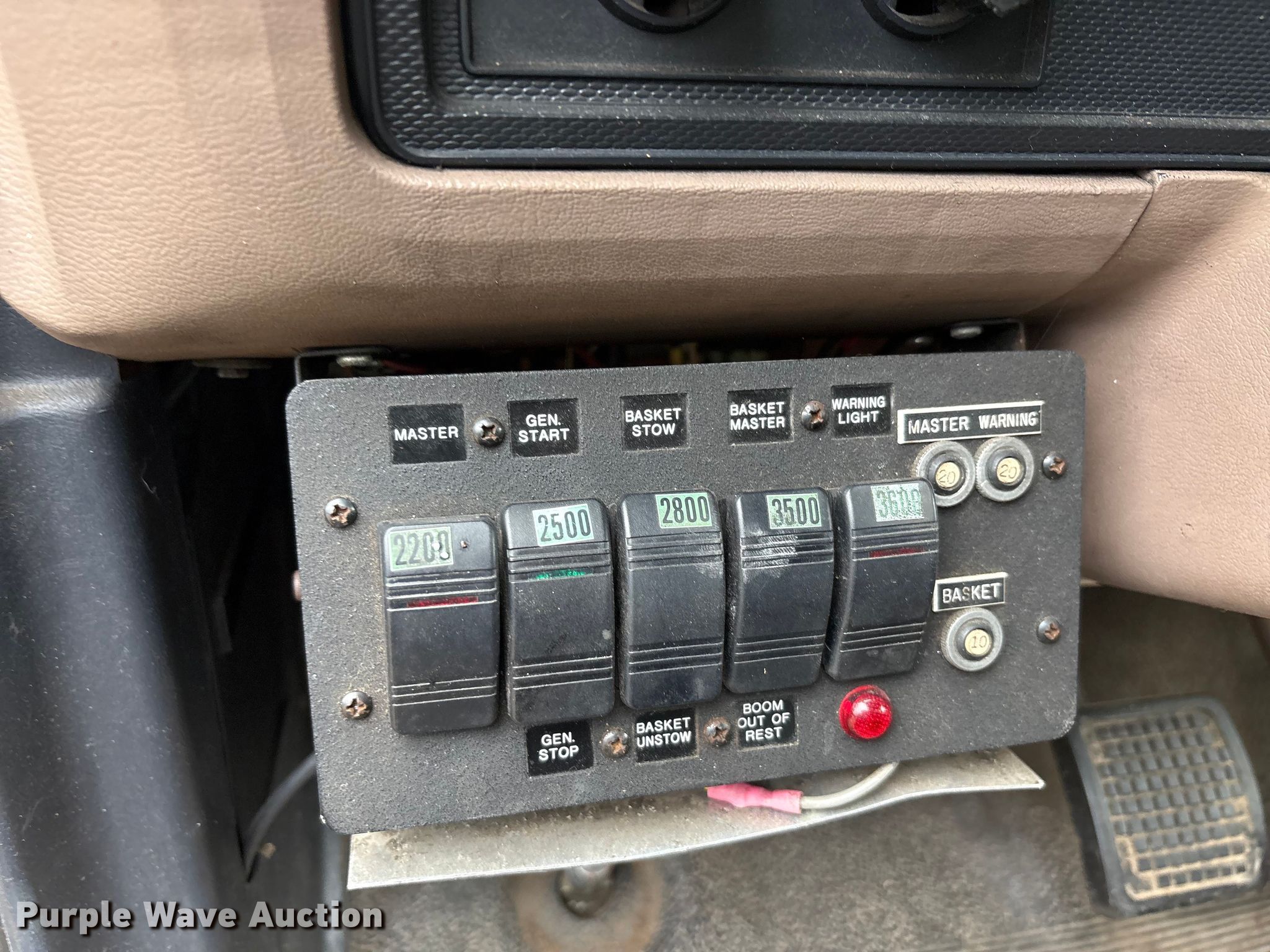 1995 Ford F700 bucket truck. Miles: 109,875 on odometer, Hours: 8,692 on meter, VIN: 1FDMF70J3SVA50295. Engine Displacement: 7.0L, Cylinders: 8, Fuel type: Gas. Transmission Automatic. Chassis Axles: Single, Suspension: Spring, Brakes: Hydraulic, GVWR: 19,000 lbs. Interior AC, Heat. Features Bed Length: 119", Width: 94", Height: 52", Engine Onan 4BGEFA26100P, Displacement: 782cc, Cylinders: 1, Fuel: Gas, kW: 4.0, Boom 94 Veralift TEL29N, Serial: AG94708, Mast height: 29', Maximum lift capacity: 300 lbs, Boom type: Telescopic, Man basket, Boom controls Ground.. Tires Size: 9R22.5, Brand: Bridgestone. Notes Replacement generator included, Dead battery, Non-operational boom, Non-operational generator, Unknown operating condition of air compressor. Oklahoma title. Title distribution may be delayed up to 14 days from verification of funds. Falconhead country club and resort. Burneyville, OK 73430