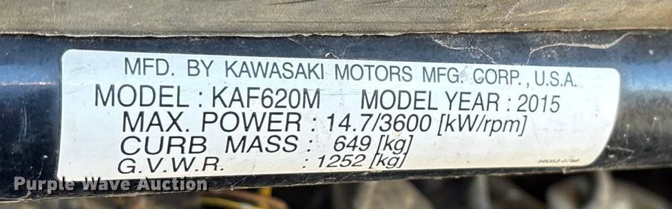 Purple Wave is selling a used Utility Vehicle in Missouri. This item is a 2015 Kawasaki Mule 4010 utility vehicle with the following: Hours: 1,088 on meter, VIN: JK1AFCM14FB517929