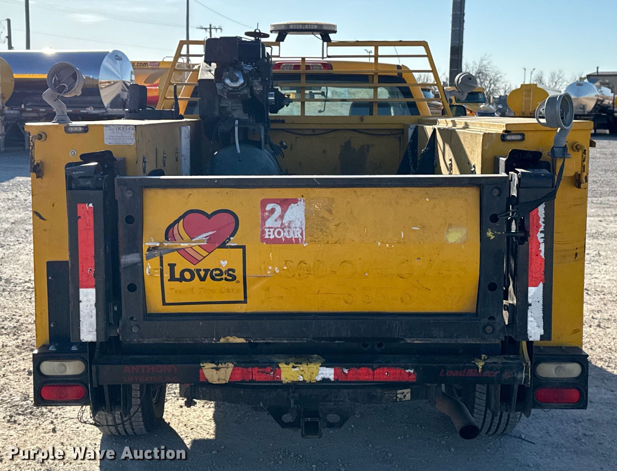 2015 Chevrolet Silverado 3500HD utility bed pickup truck. Miles: 173,571 on odometer, VIN: 1GB3CYCG1FZ518008, Unit #: 518008. Engine Displacement: 6.0L, Cylinders: 8, Fuel type: Gas. Transmission Automatic. Interior AC, Heat, Power locks, Cruise control, Auxiliary controls, Brake controller. Features Bed Utility bed, Warner, Length: 8' 2", Width: 80", Air compressor Champion R Series, End gate lift Anthony LoadBlazer, Capacity: 1,500 lbs. Tires Size: LT265/70R18. Notes Dash warning indicator: Check engine, Dash warning indicator: Service trailer brake system, Engine issues, knocks , Unknown operating condition of air compressor. Oklahoma title. Title distribution may be delayed up to 30 days from verification of funds. Gemini Motor Transport. Oklahoma City, OK 73127