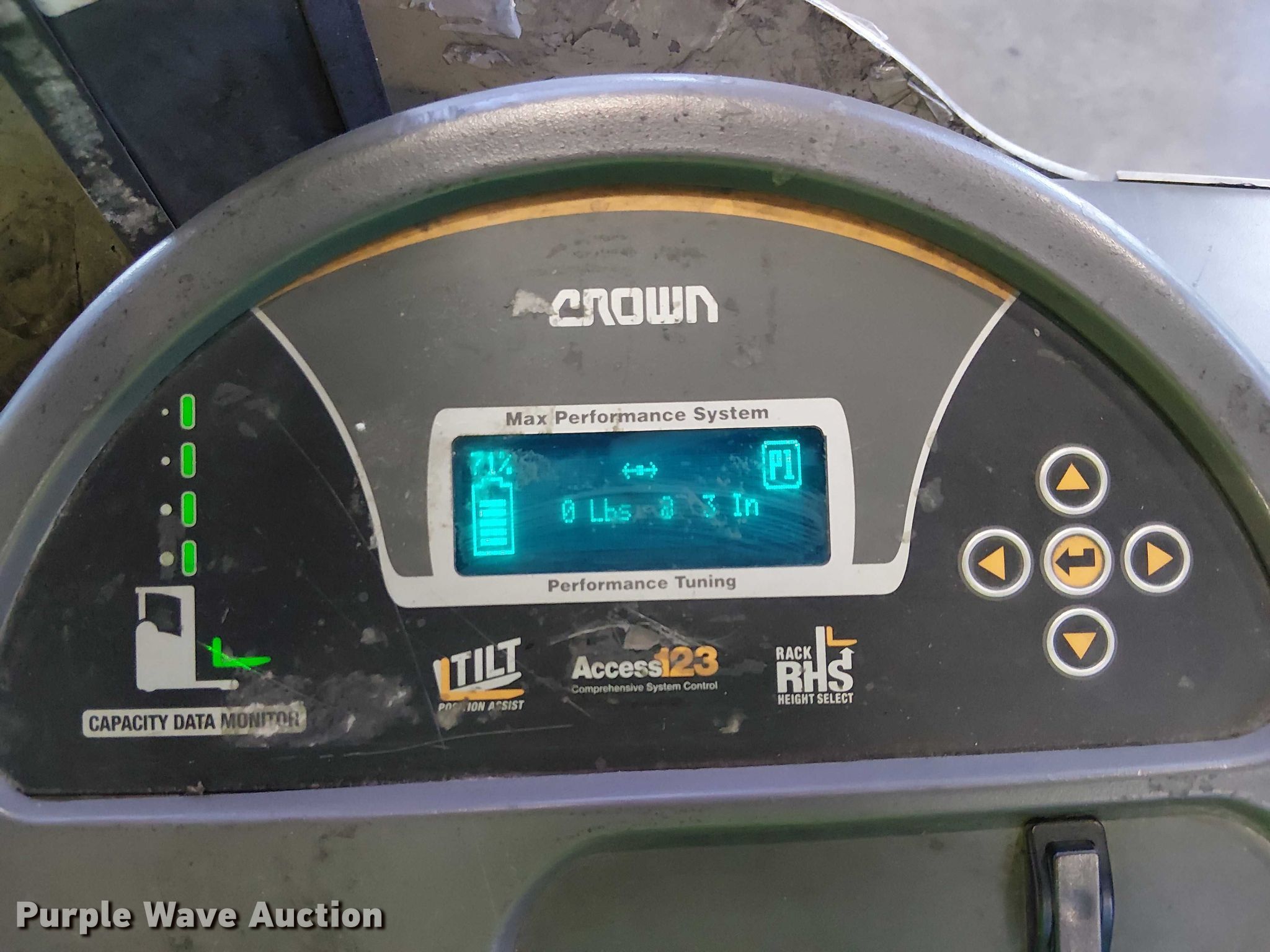 2017 Crown RM6095S-45 order picker. Hours: 13,838 on meter, Miles or hours may vary, unit still in use, Serial: 1A501388, Unit #: SFS2773. Electric Motor Volts: 36, Phase: Three. Transmission Electric drive. Operators station OROPS. Features Maximum lift capacity: 4,500 lbs, Maximum lift height: 341", Collapsed mast height: 149", Mast stages: 1, Side shift, Reach / retract, Fork length: 42". Tires Solid. Ferguson. Perris, CA 92571