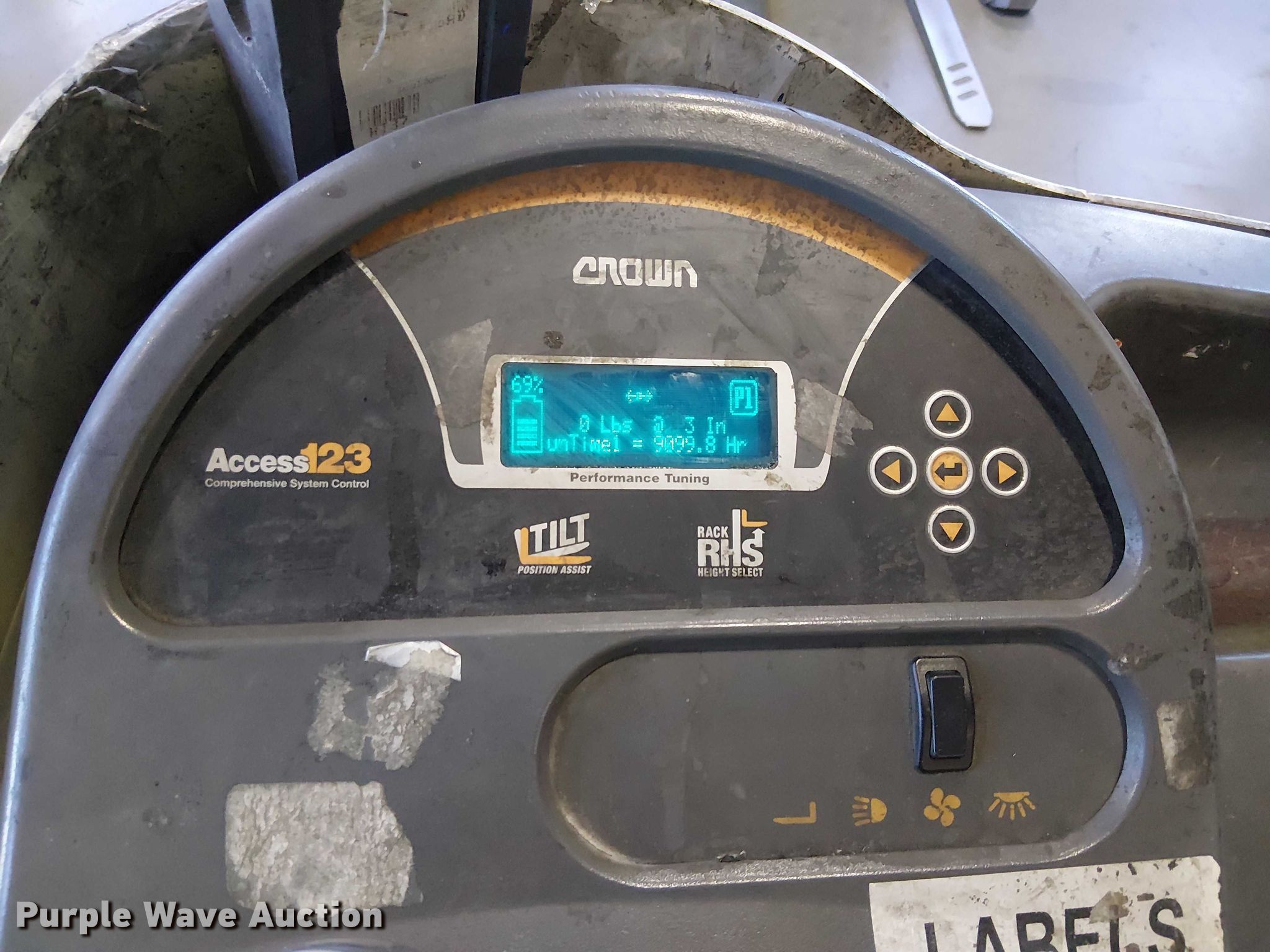Purple Wave is selling a used Warehouse Forklift in California. This item is a 2017 Crown RM6095-45 order picker with the following: Hours: 9,100 on meter, Miles or hours may vary, unit still in use, Serial: 1A486740, Unit #: SFS2772