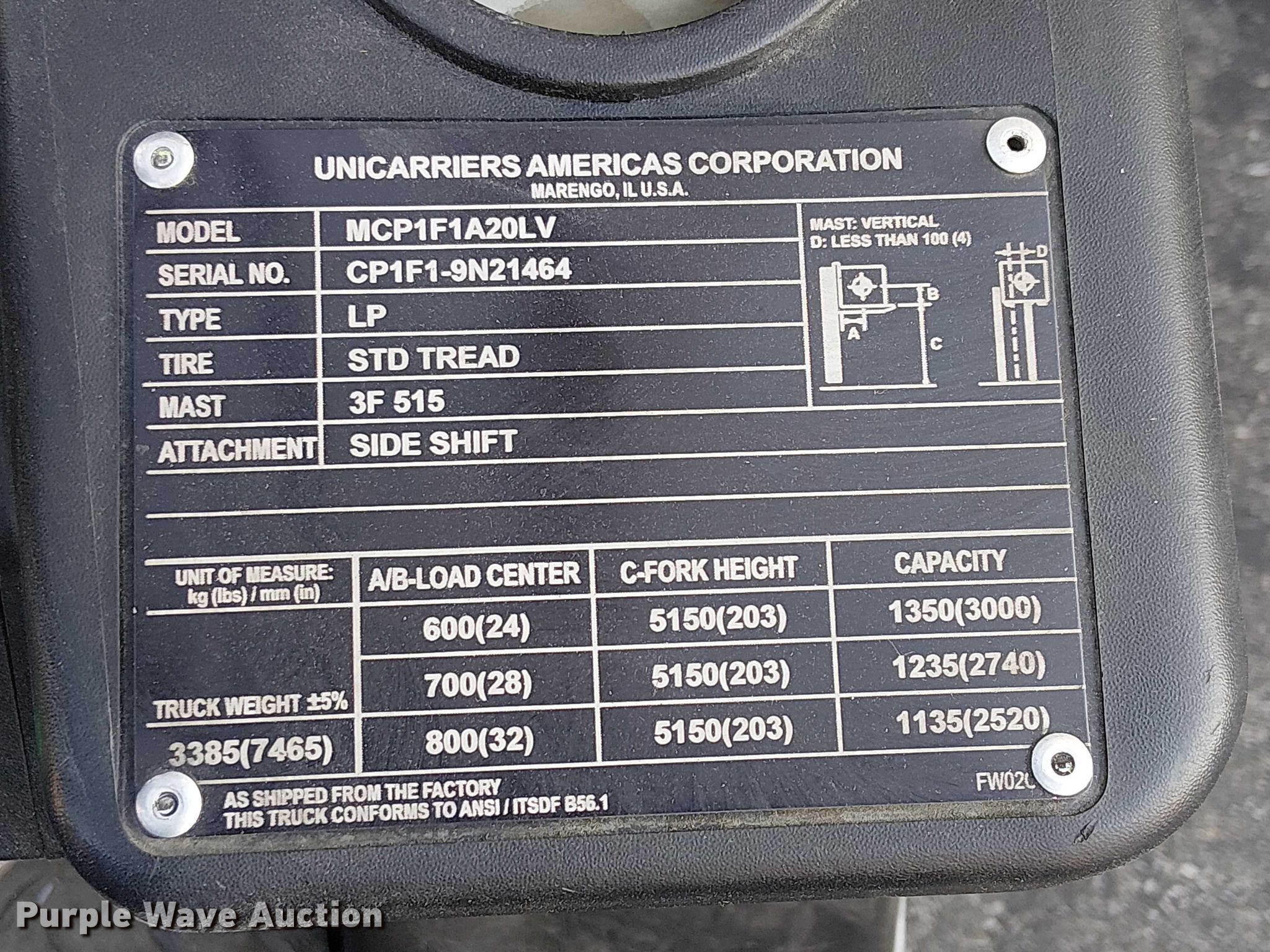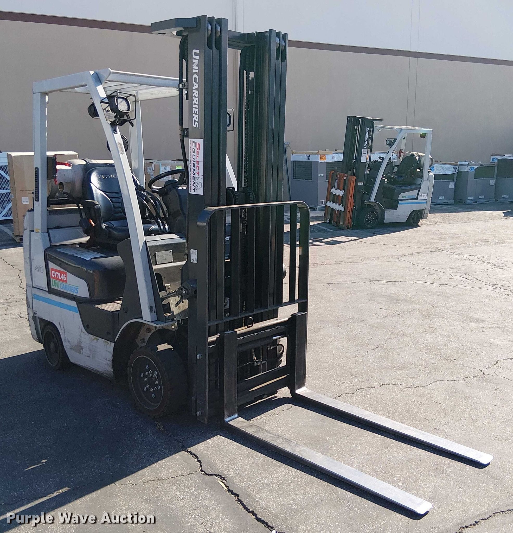 Purple Wave is selling a used Cushion Tire or Pneumatic Forklift in California. This item is a 2017 UniCarriers CFS40 forklift with the following: Hours: 2,751 on meter, Miles or hours may vary, unit still in use, Serial: CP1F1-9N21464, Unit #: SFS2799
