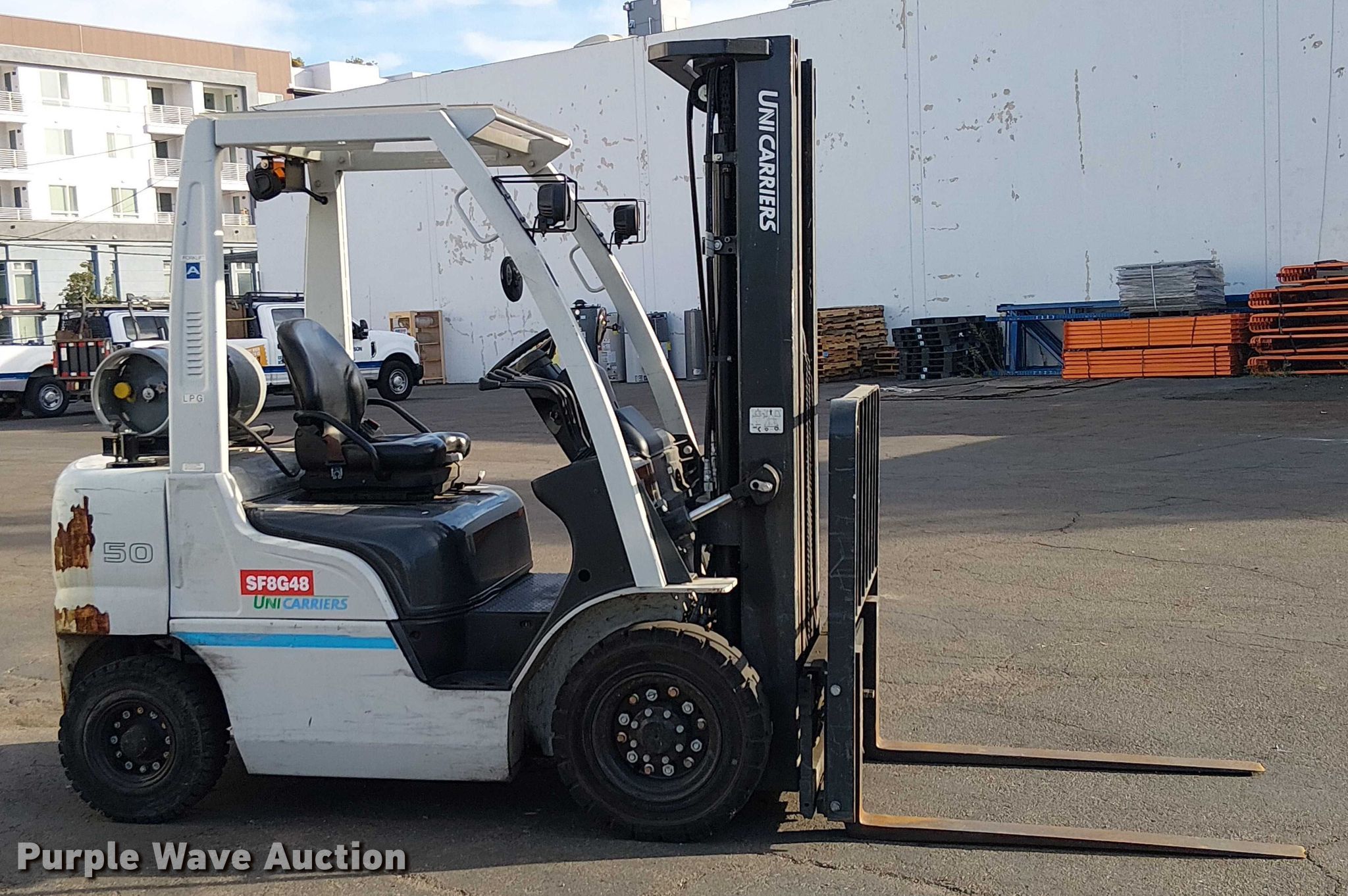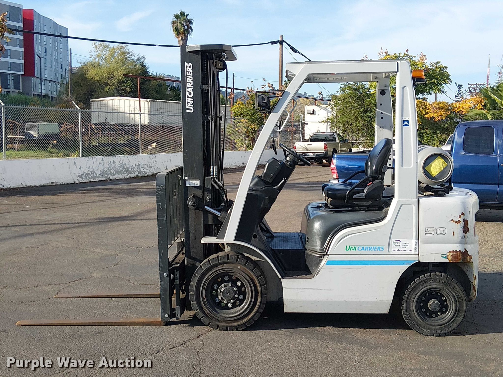 Purple Wave is selling a used Cushion Tire or Pneumatic Forklift in California. This item is a 2019 UniCarriers PF50 forklift with the following: Hours: 1,787 on meter, Miles or hours may vary, unit still in use, Serial: P1F2-9H25470, Unit #: SFS2736