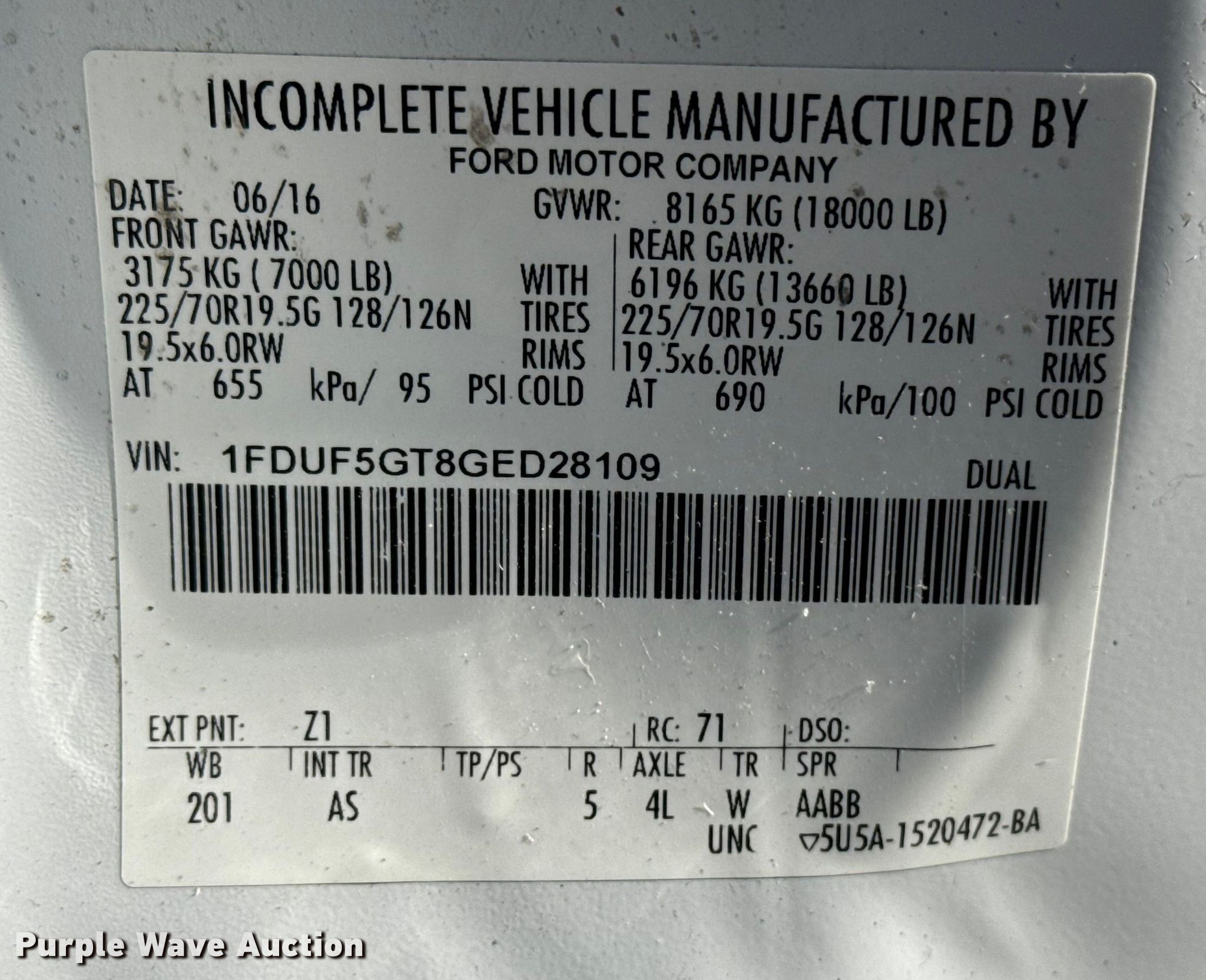 2016 Ford F550 Super Duty XL flatbed truck. Miles: 161,606 on odometer, VIN: 1FDUF5GT8GED28109. Engine Displacement: 6.7L, Cylinders: 8, Fuel type: Diesel. Transmission Automatic. Interior AC, Heat, Heated mirrors, Power windows, Power locks, Cruise control, Auxiliary controls, Brake controller. Features Bed Flatbed, Length: 16' 6", Width: 96", Wanco traffic control controller, Wanco arrow board. Tires Size: 225/70R19.5. Notes Dash warning indicator: Airbag, Glass cracked. Oklahoma title. Seller is an Oklahoma licensed motor vehicle dealer. Buyers may be required to provide identification to the licensed dealer to comply with state laws. Title will be assigned and distributed by the dealer. Please contact the seller for distribution questions. Title distribution may be delayed up to 30 days from verification of funds. Collinsville, OK 74021