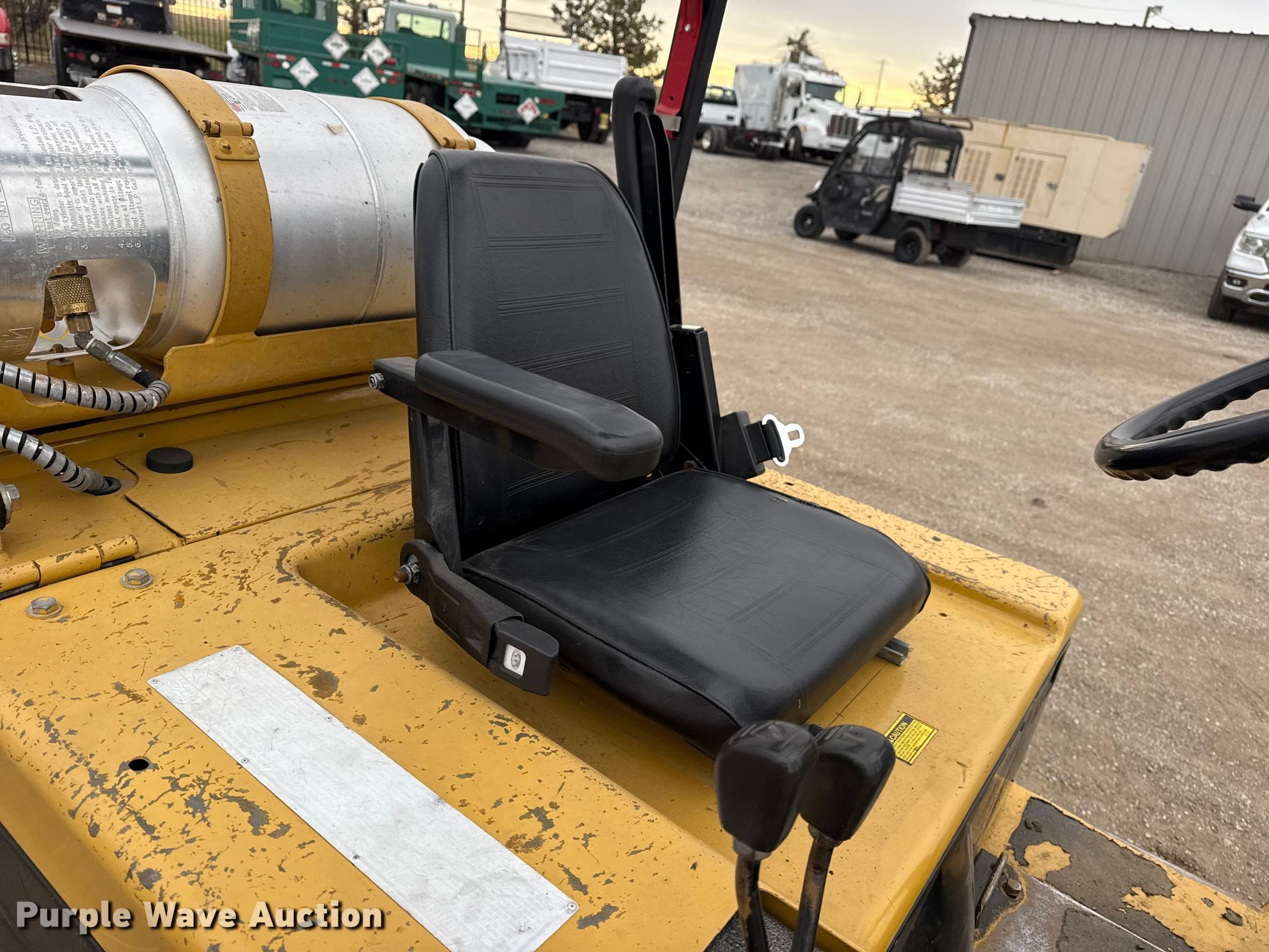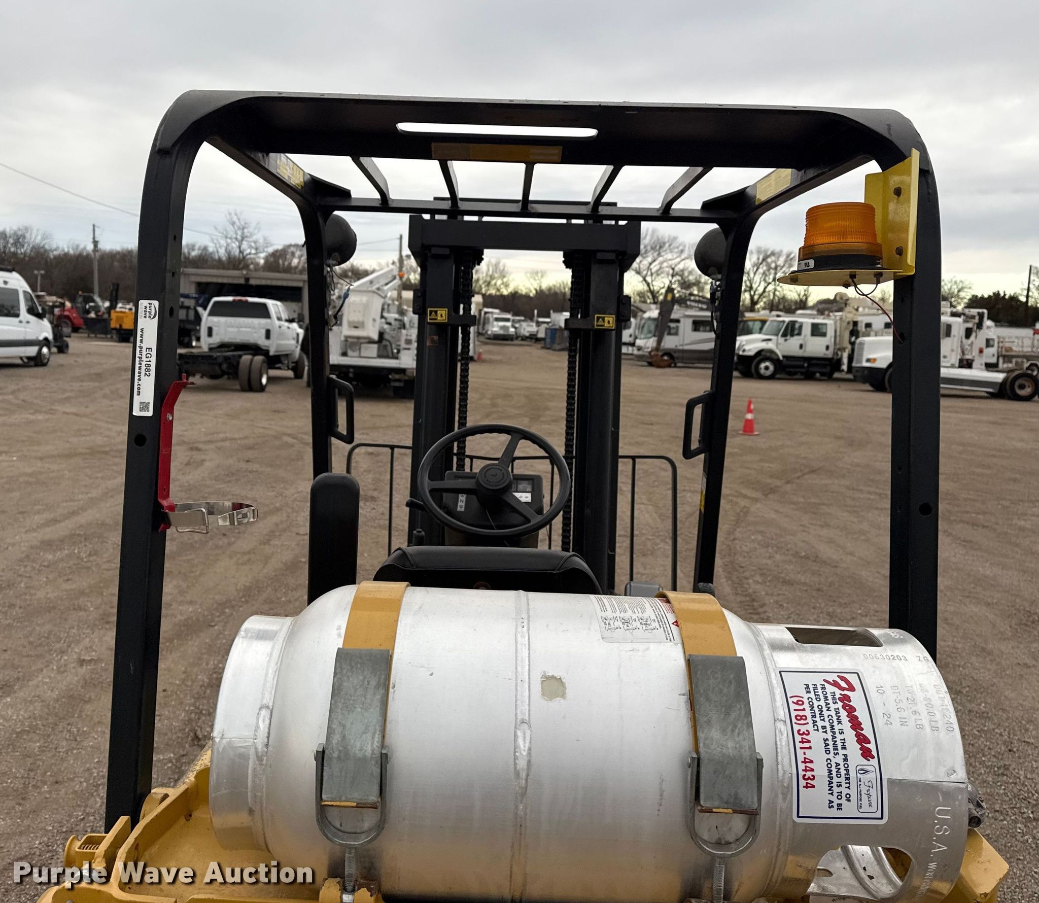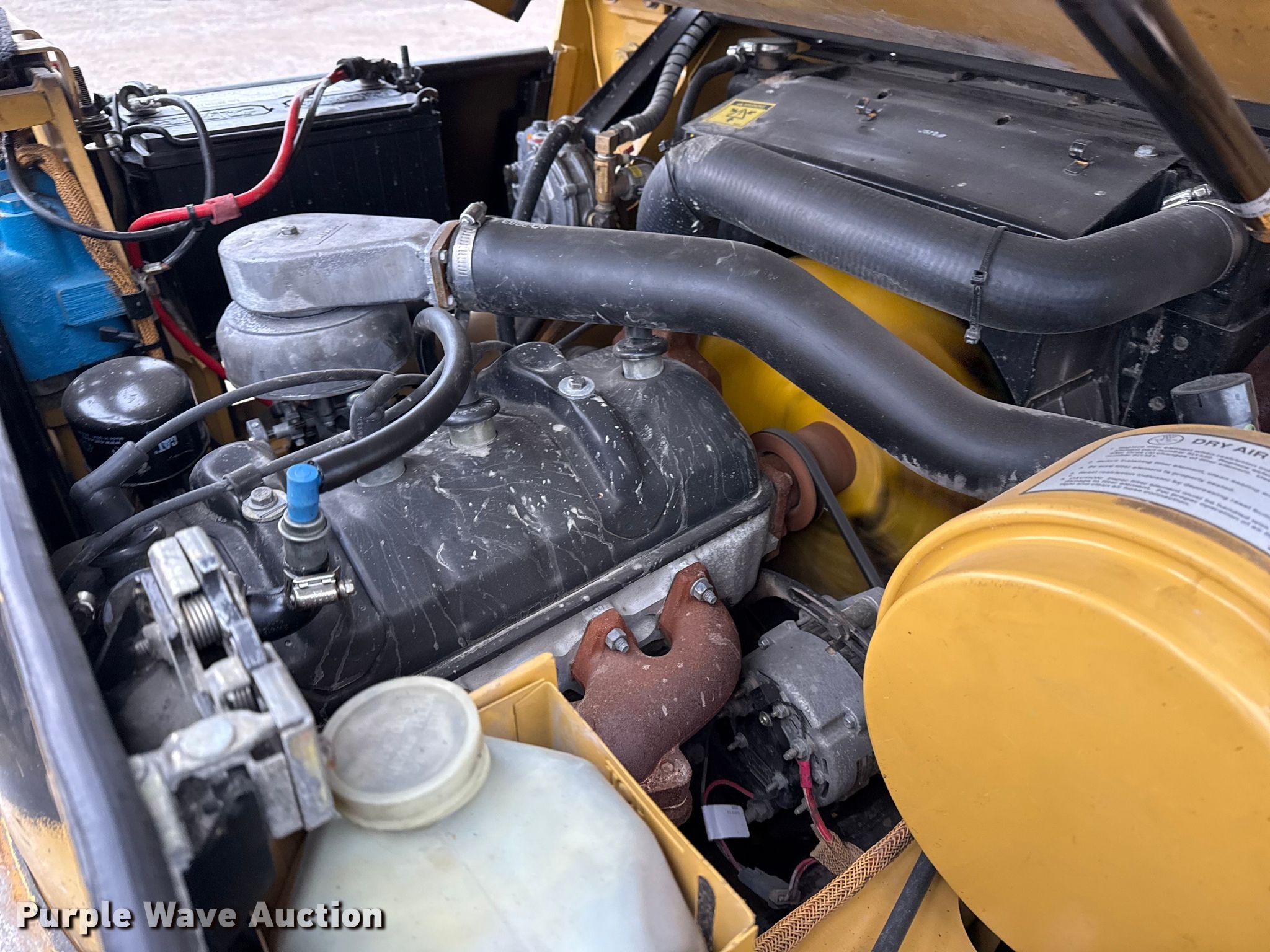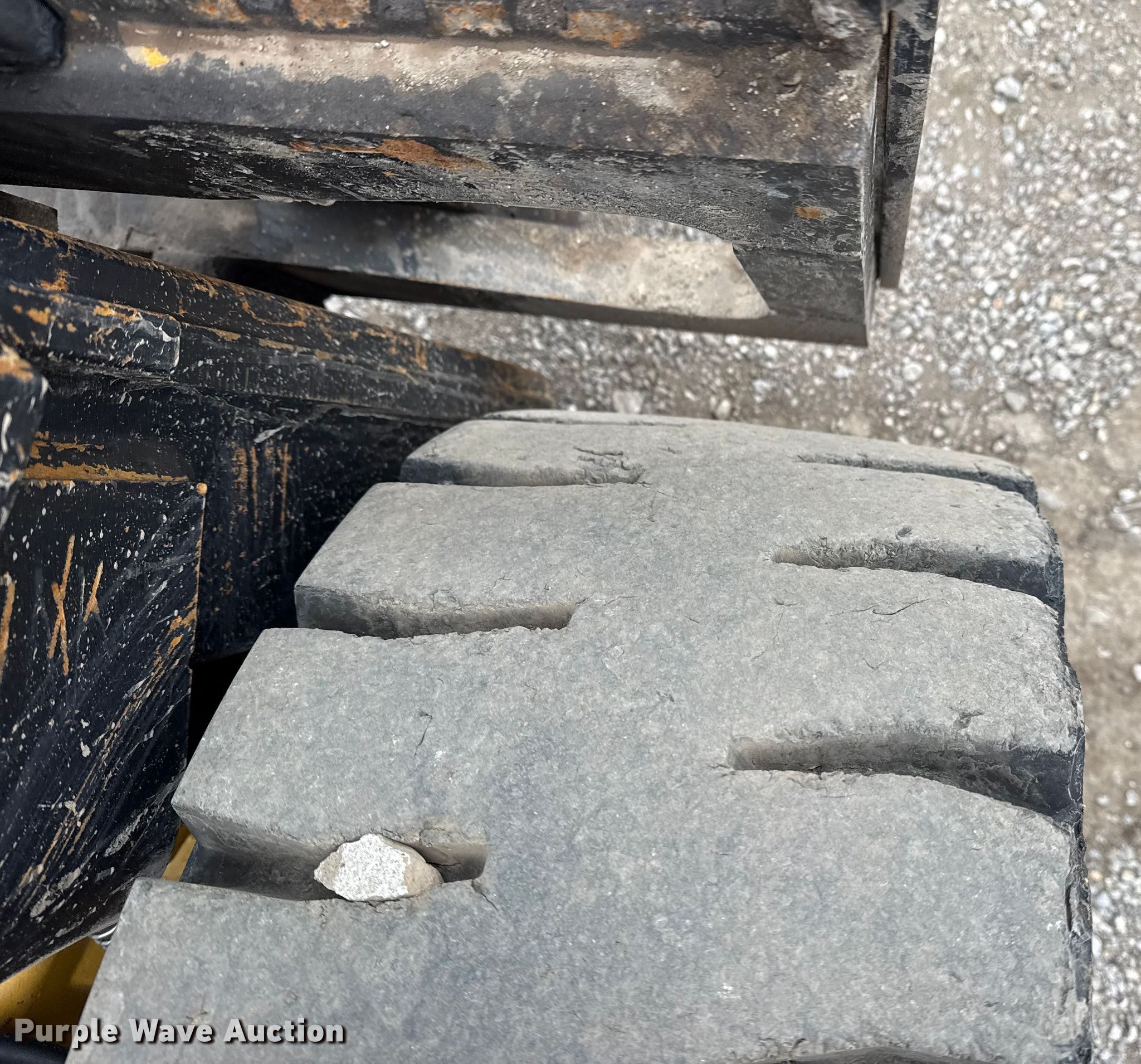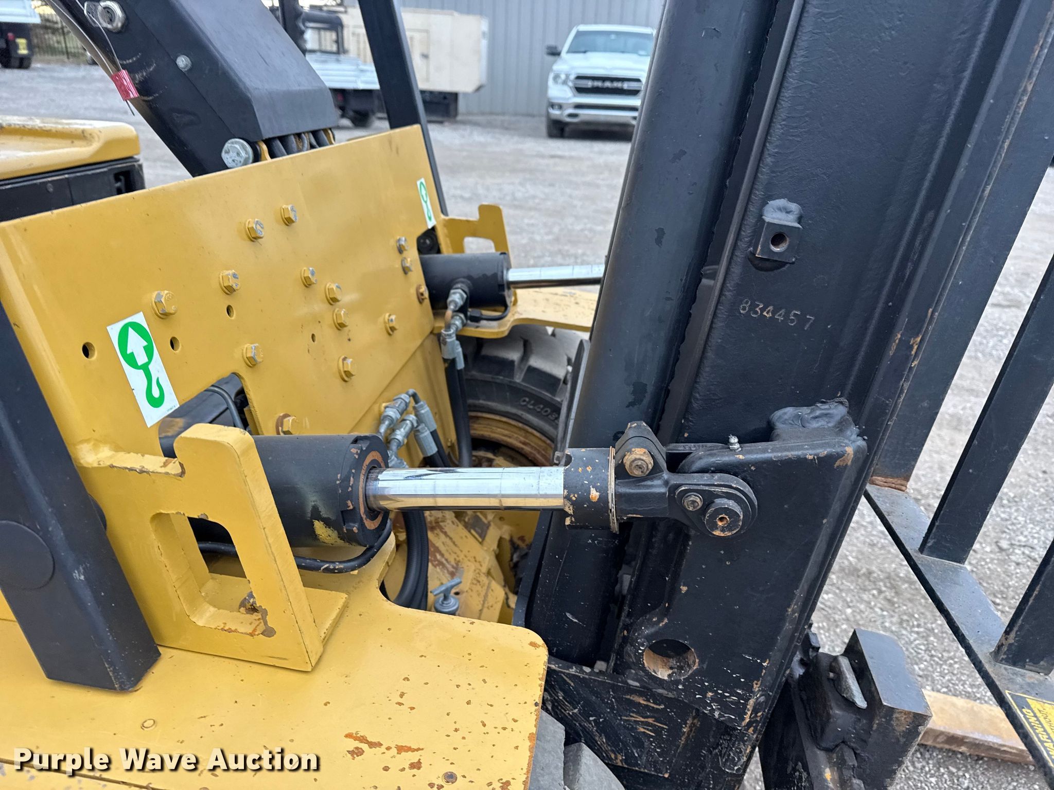 1993 Caterpillar V40E forklift. Hours: 4,358 on meter, Serial: 5NG00851. Engine Caterpillar, Cylinders: 4, Fuel type: LPG LP bottle: Included. Transmission Powershift. Operators station OROPS. Features Maximum lift capacity: 4,400 lbs, Maximum lift height: 129", Collapsed mast height: 84", Mast stages: 2, Mast tilt, Fork length: 42". Tires Front: 28x12.5-15, Rear: 6.50-10, Solid. Collinsville, OK 74021