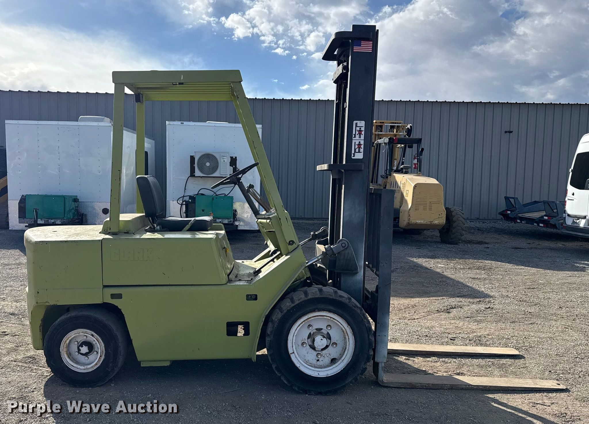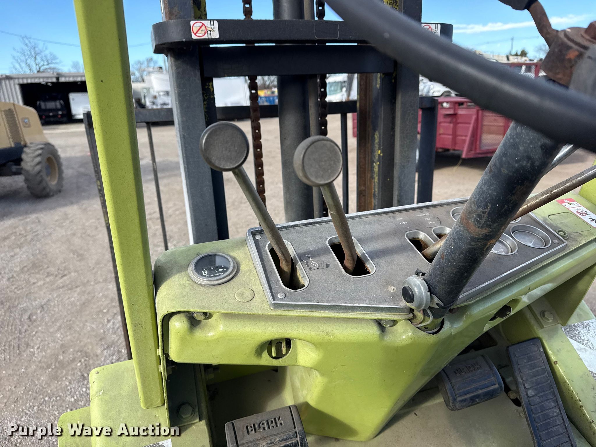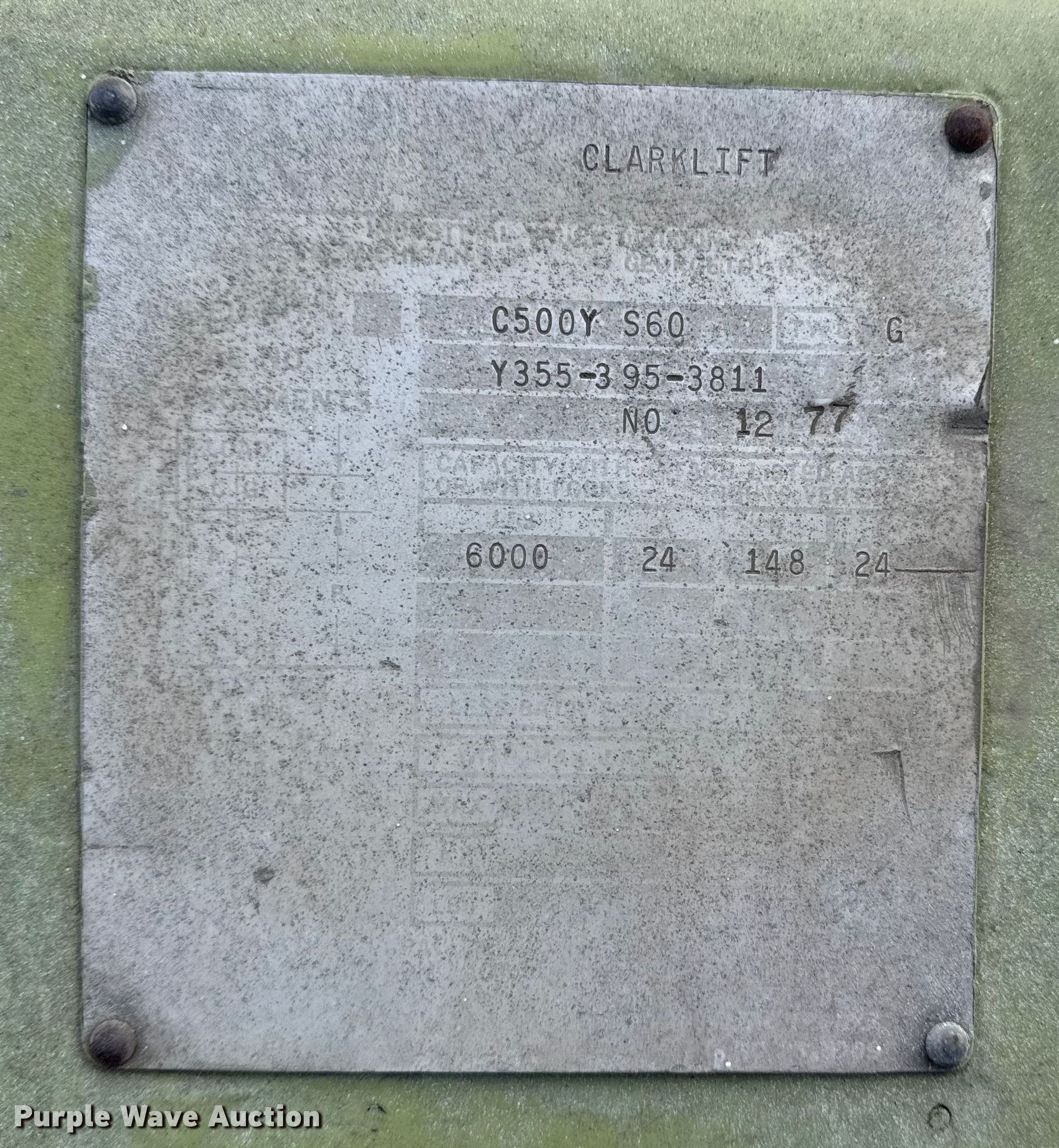 Purple Wave is selling a used Cushion Tire or Pneumatic Forklift in Oklahoma. This item is a Clark C500Y S60 forklift with the following: Hours: 3,291 on meter, Serial: Y355-395-3811, Unit #: