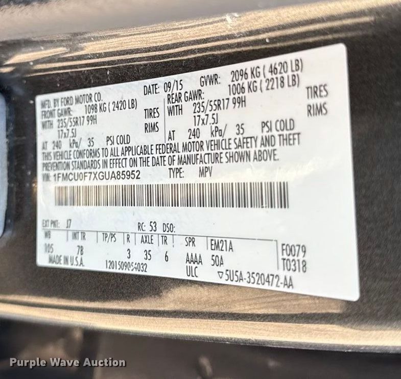 • VIN: 1FMCU0F7XGUA85952