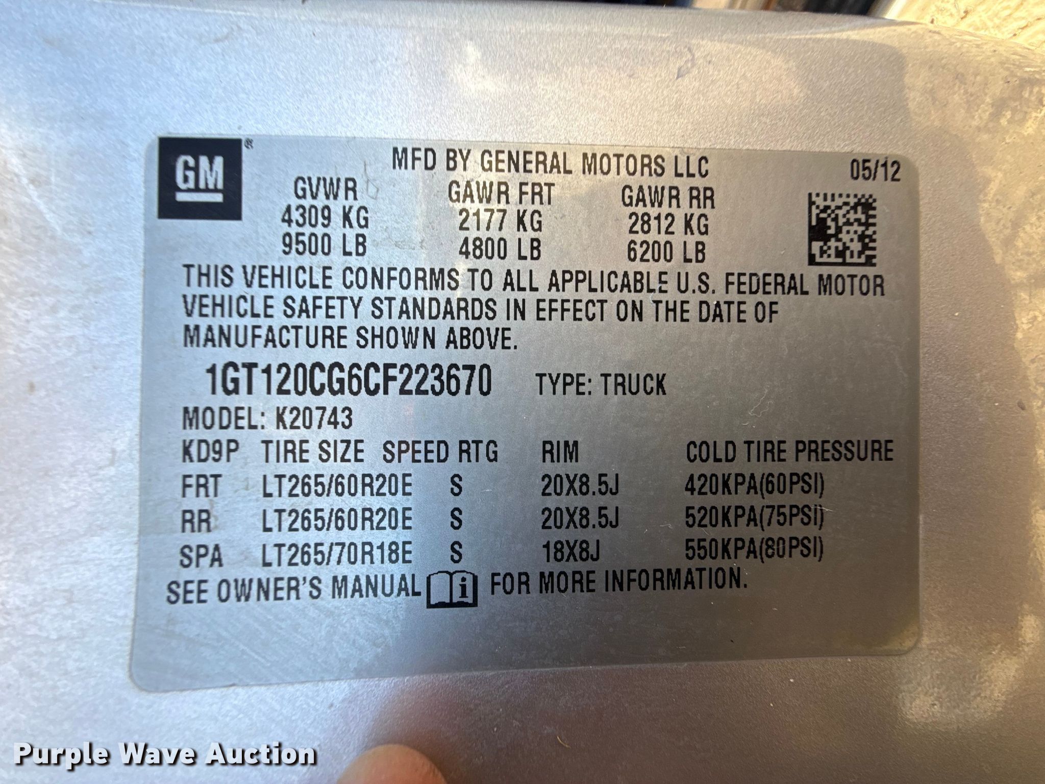 Purple Wave is selling a used 3/4 or 1 Ton Pickup or Van in Kansas. This item is a 2012 GMC Sierra 2500HD Crew Cab flatbed pickup truck with the following: Miles: 209,003 on odometer, VIN: 1GT120CG6CF223670, Unit #: