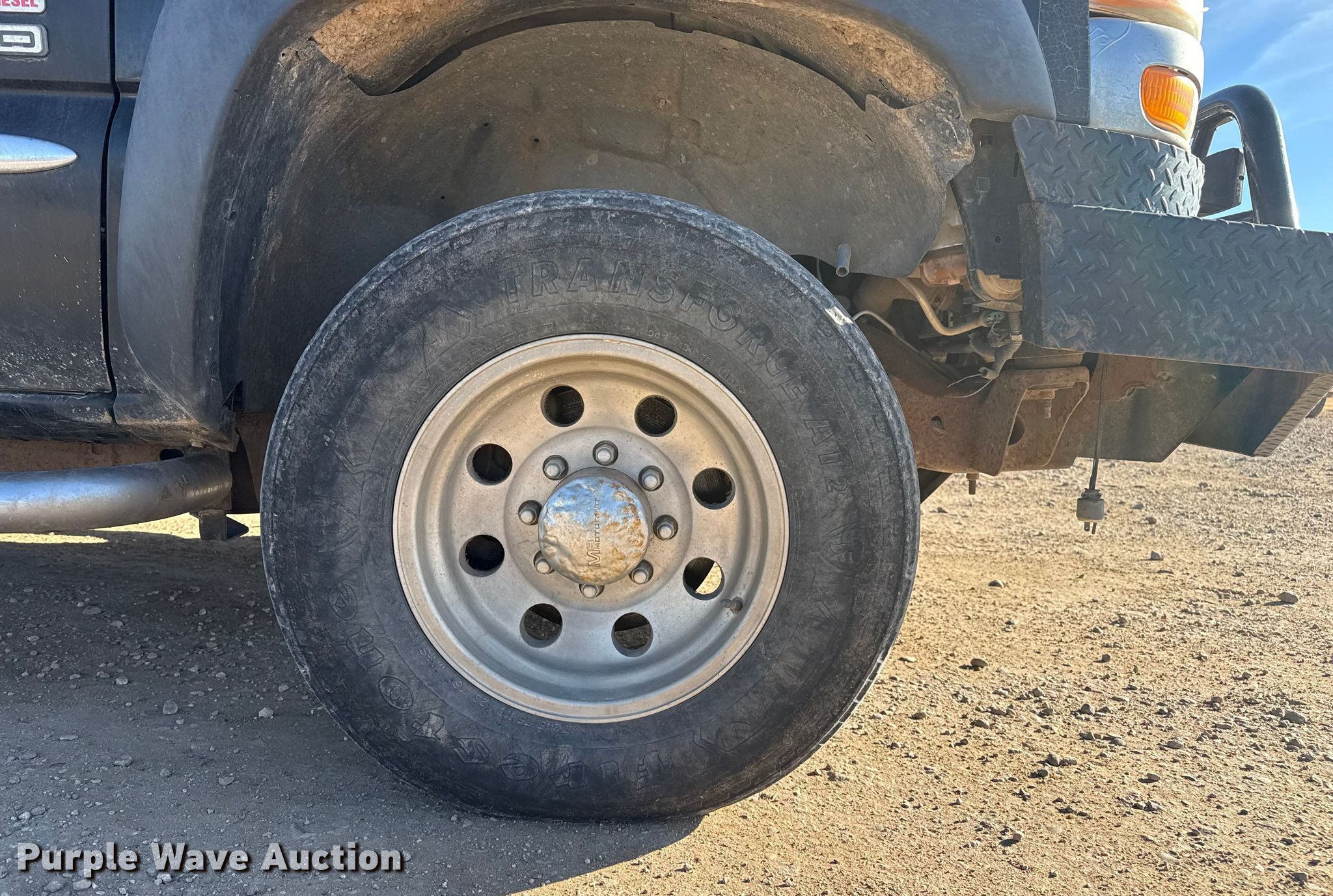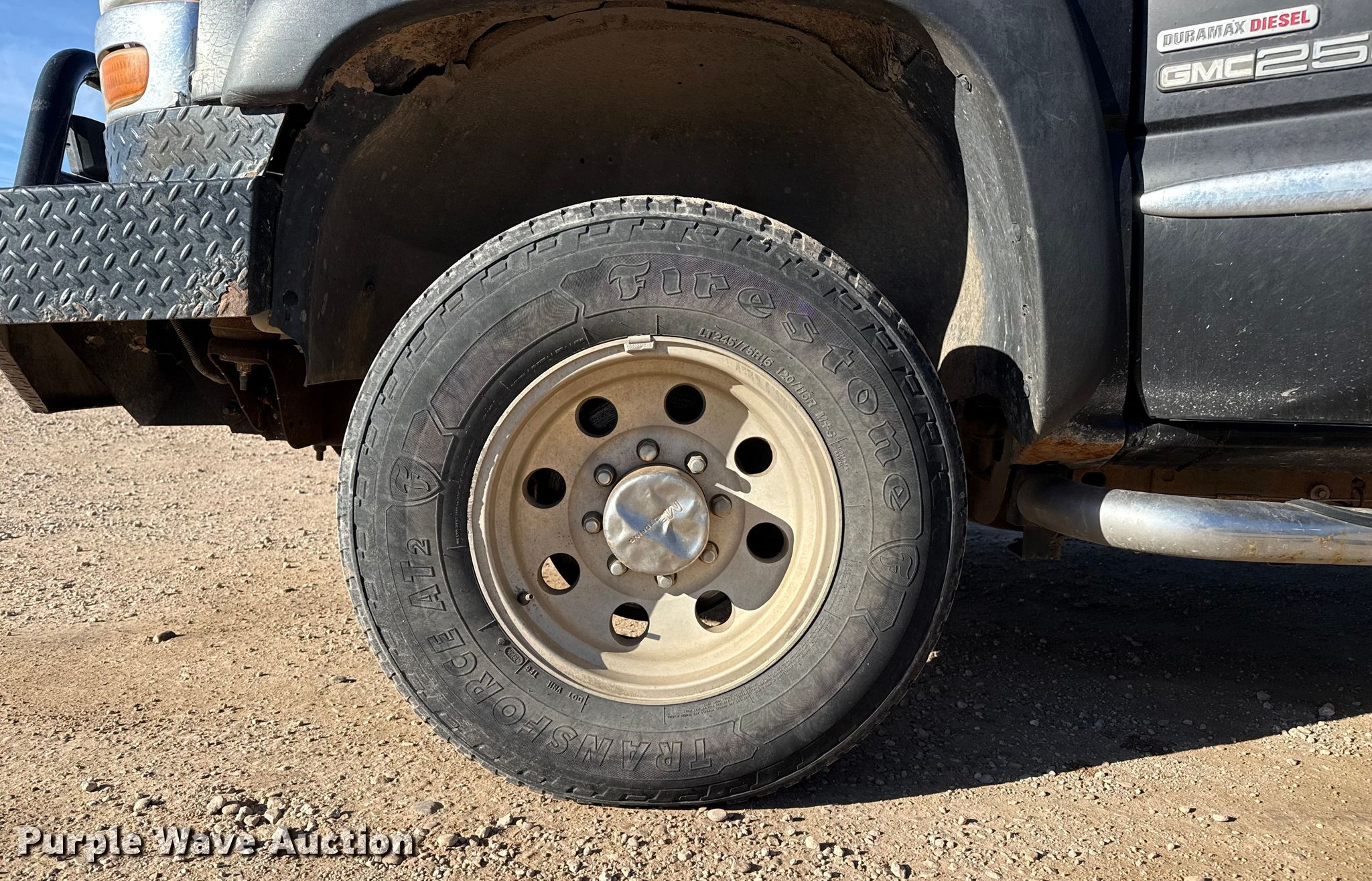 2002 GMC Sierra 2500HD Ext. Cab flatbed pickup truck. Miles: Unknown, VIN: 1GTHK29142E303566, Unit #:. Engine Displacement: 6.6L, Cylinders: 8, Fuel type: Diesel. Transmission Automatic, Four wheel drive. Interior AC, Heat, Seat: Power driver, Power passenger, Power windows, Power locks, Cruise control. Features Bed Flatbed, Length: 8' 6", Width: 80", Hitch: Gooseneck. Tires Size: 245/75R16. Notes Non-operational odometer, Toolbox not included, Air compressor not included, Windshield chipped or cracked. Kansas title. Mileage has not been verified. Exempt will be written in the odometer disclosure on the title. Small Man Ag LLC. Hugoton, KS 67951