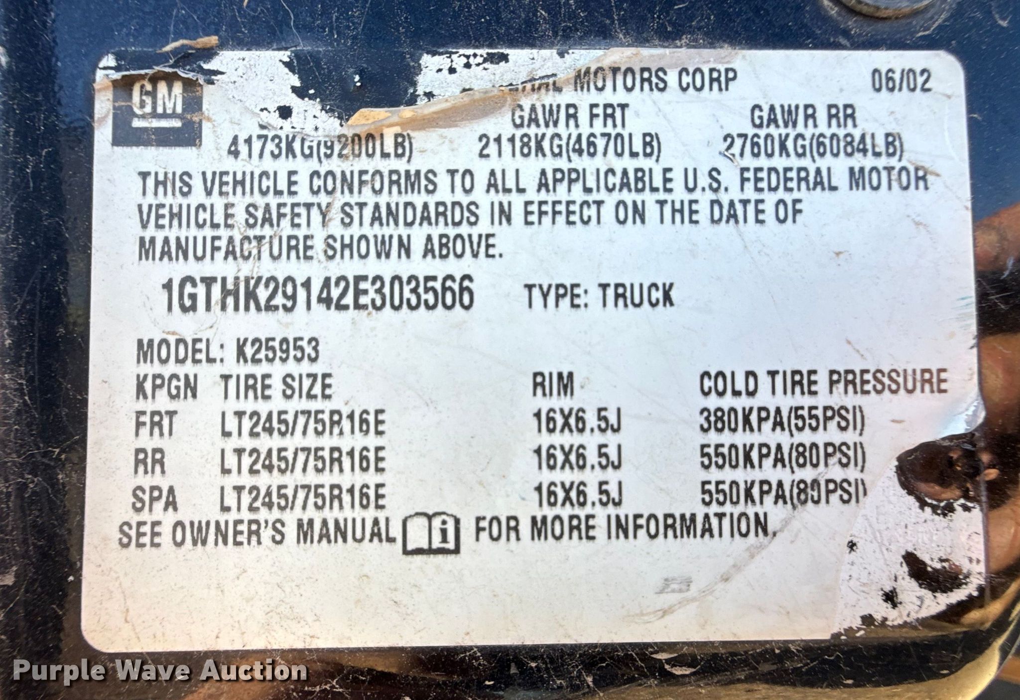 Purple Wave is selling a used 3/4 or 1 Ton Pickup or Van in Kansas. This item is a 2002 GMC Sierra 2500HD Ext. Cab flatbed pickup truck with the following: Miles: Unknown, VIN: 1GTHK29142E303566, Unit #: