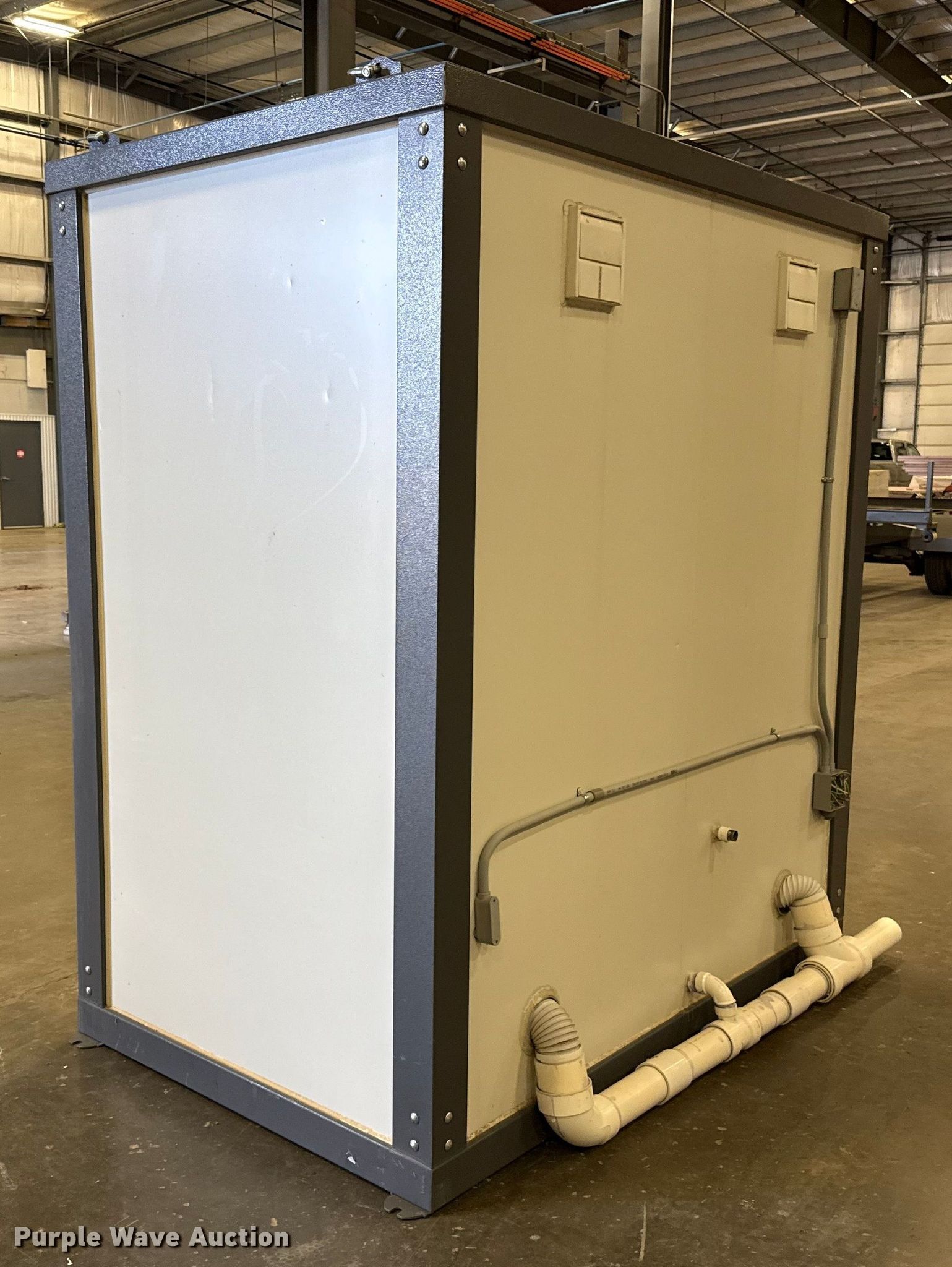 Purple Wave is selling a used Other Industrial or Business in Oklahoma. This item is a Portable bathroom with the following: Dimensions: 8' 9" L x 50 1/2" W x 89 1/2" H, Skid mounted