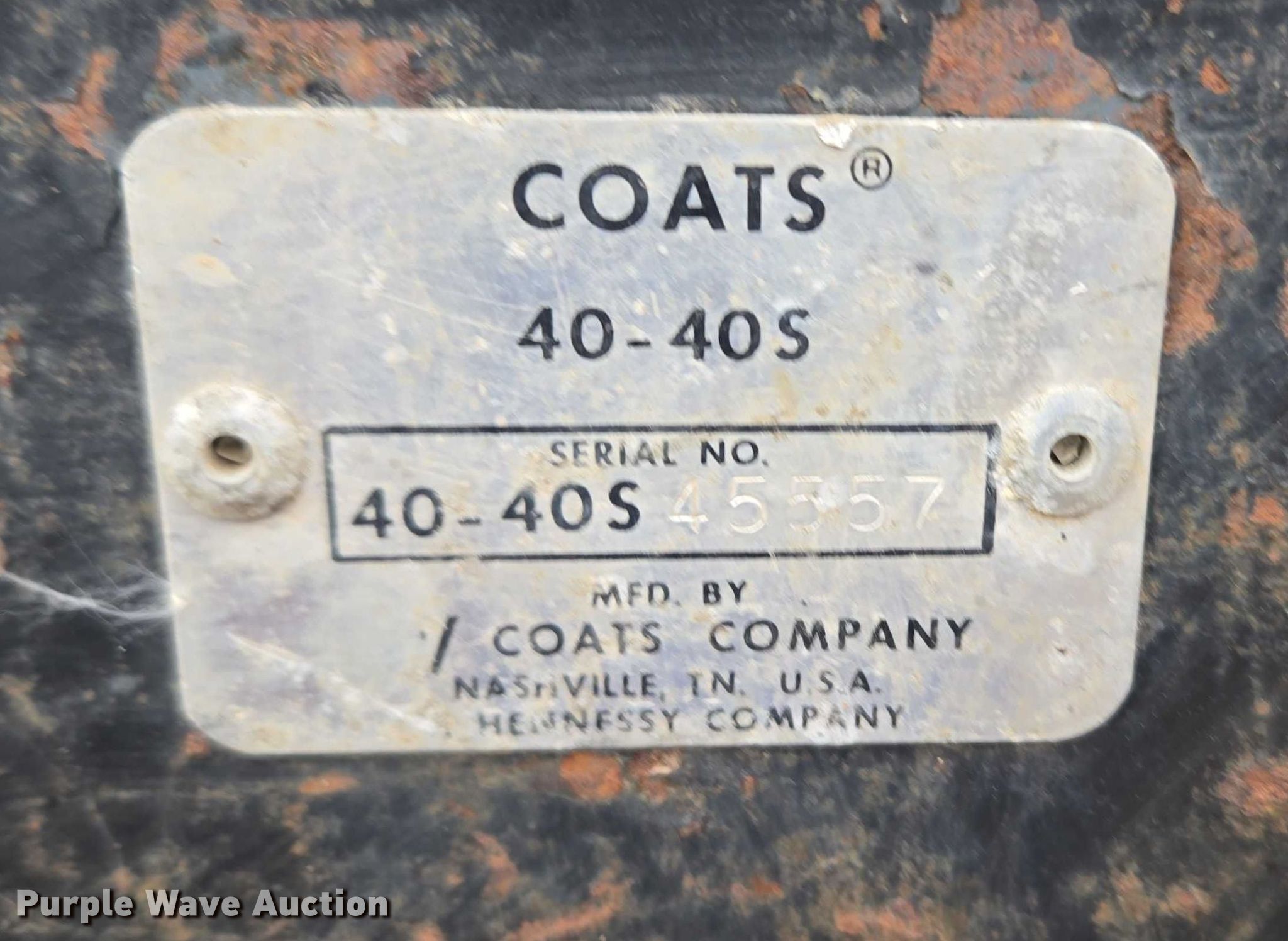 Purple Wave is selling a used Tools in Oklahoma. This item is a Coats 40-40S tire machine with the following: Serial: 45557