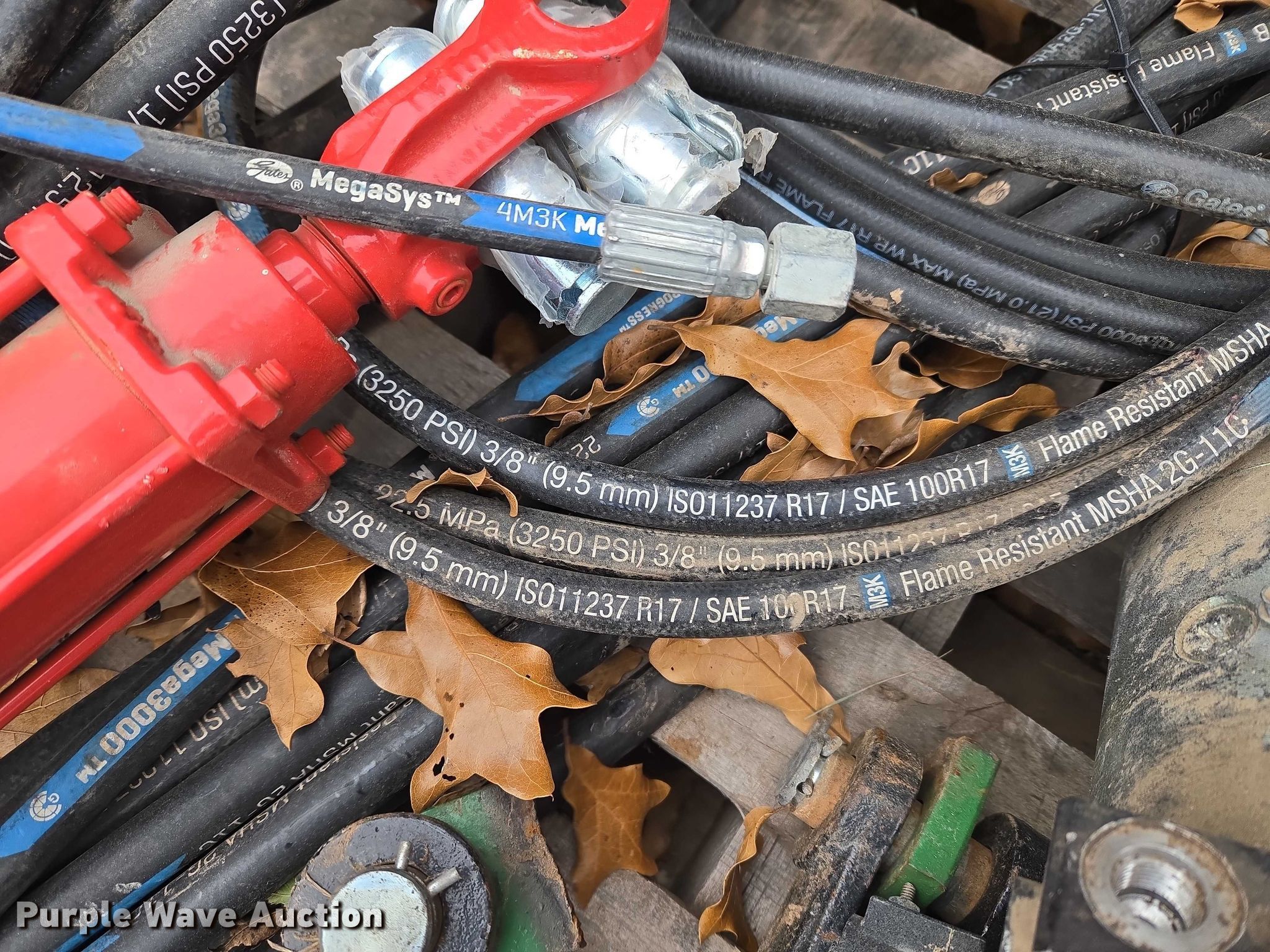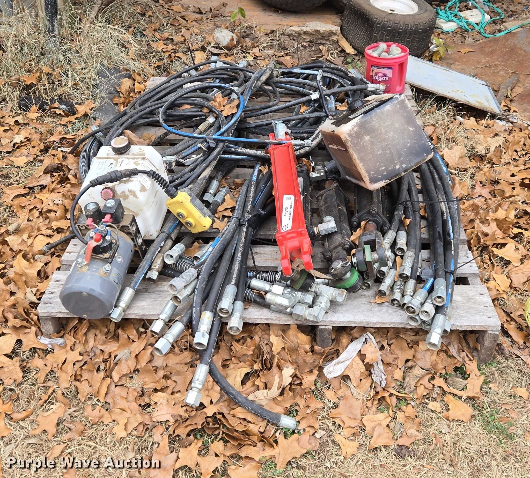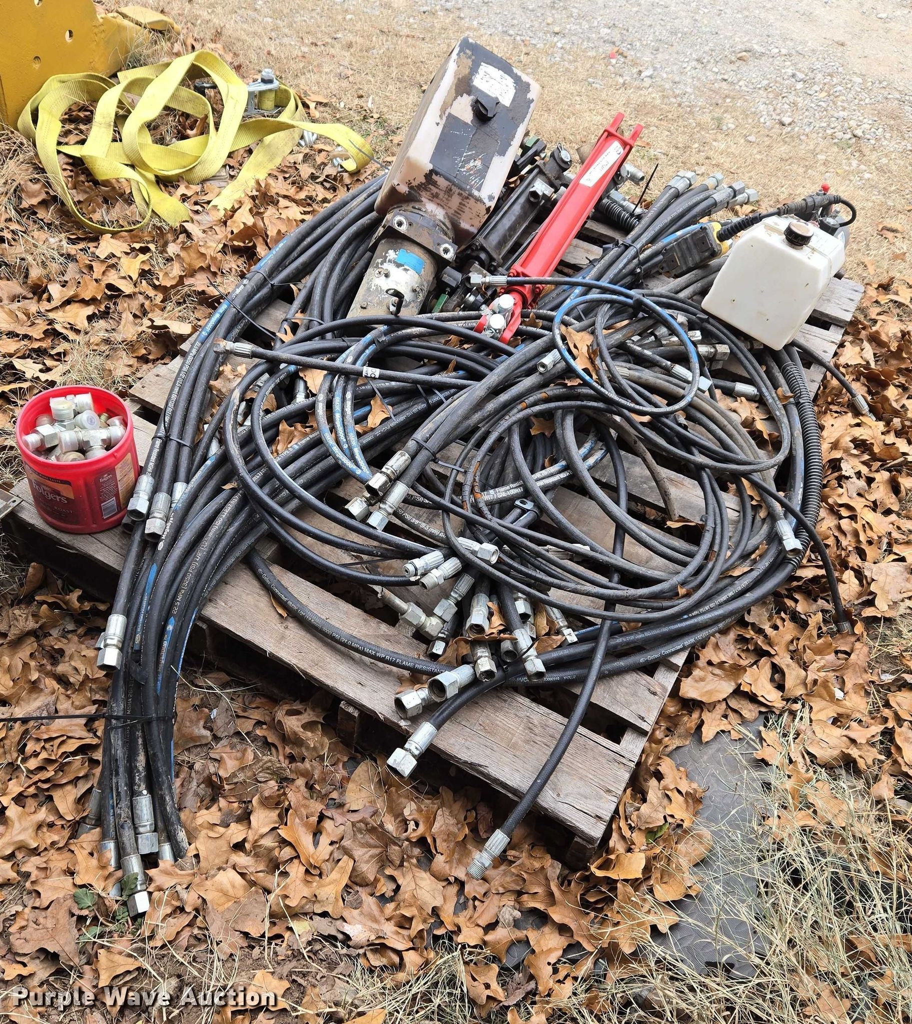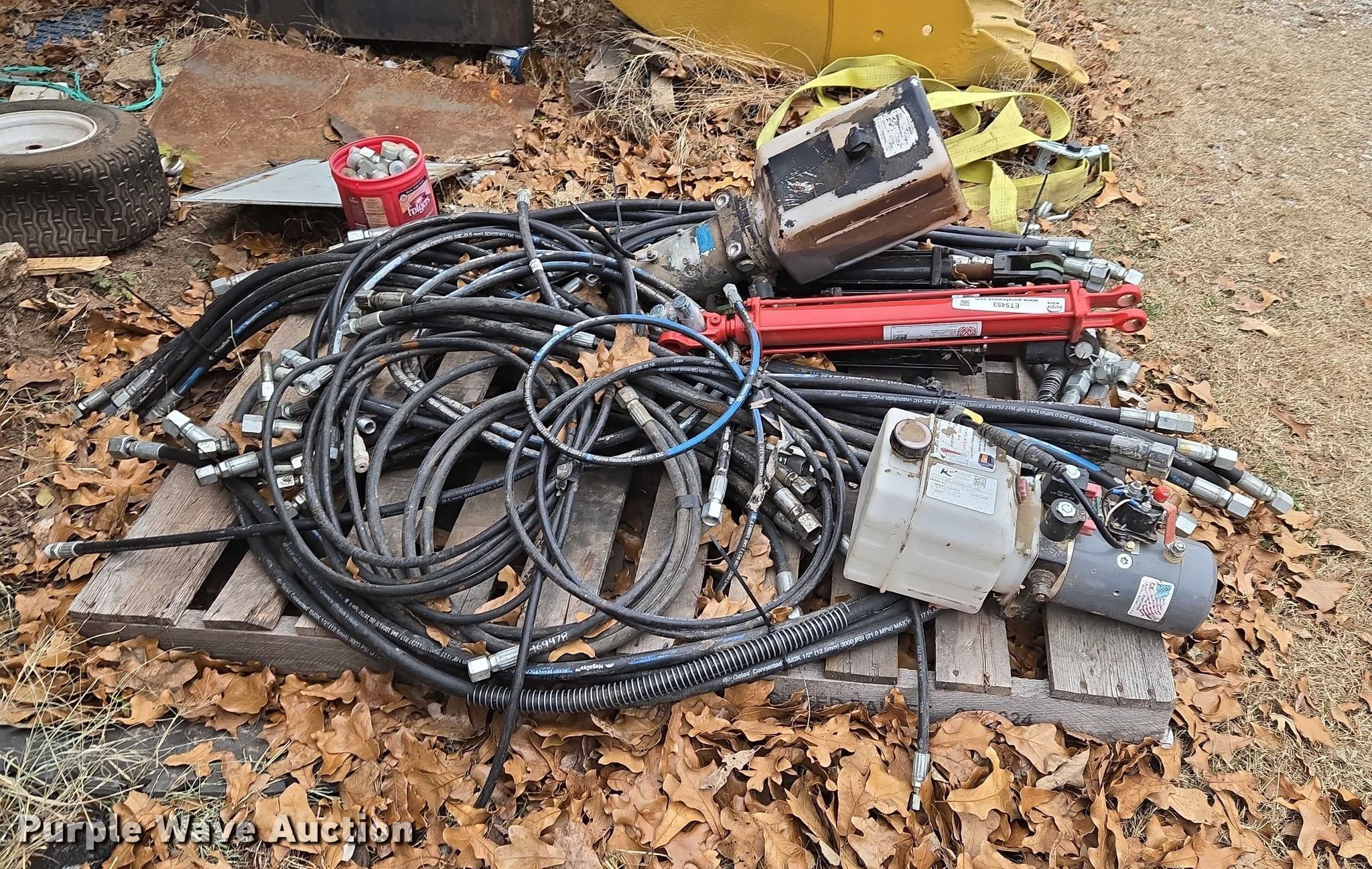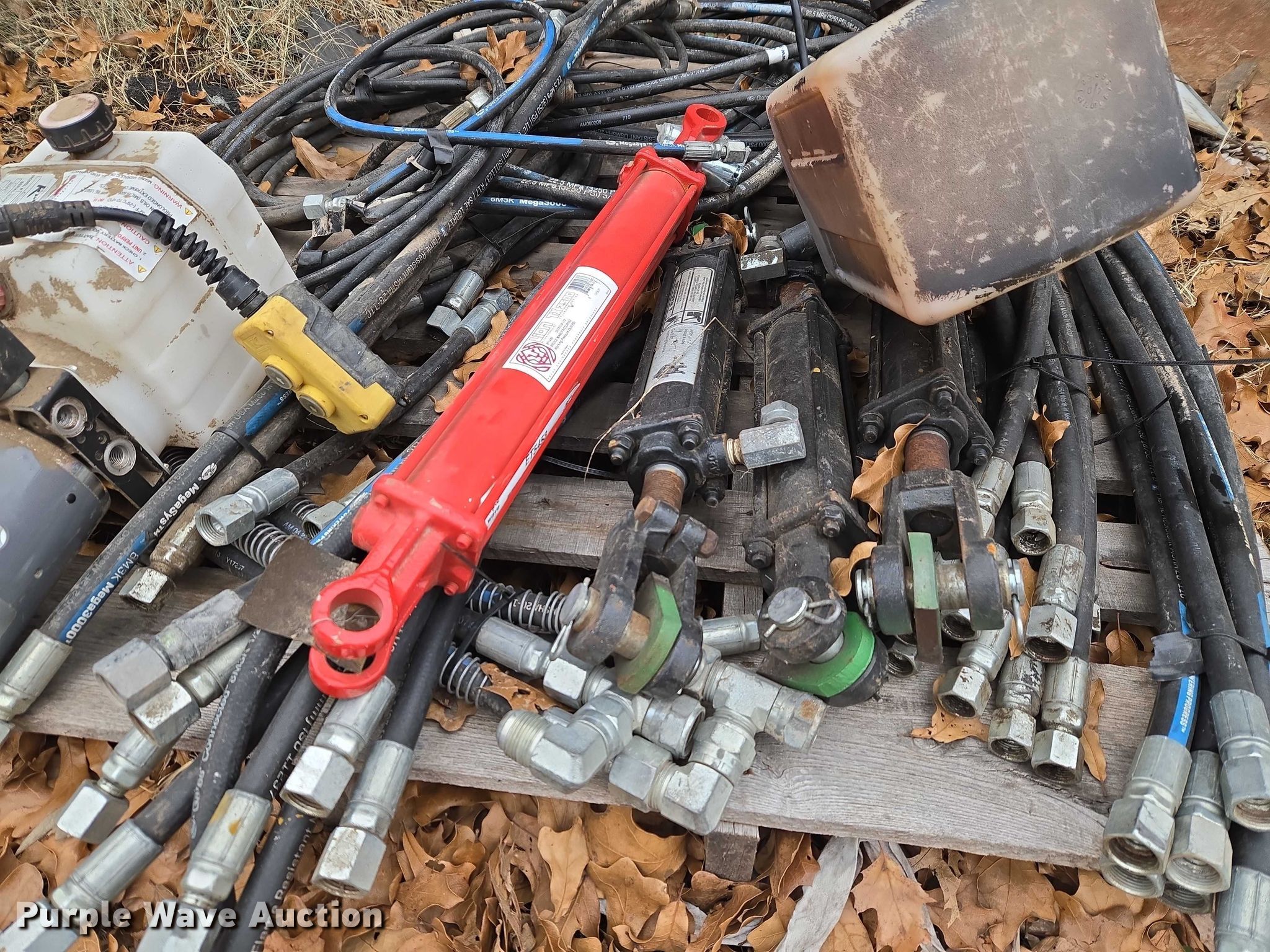 Purple Wave is selling a used Tools in Oklahoma. This item is a Hydraulic equipment with the following: Hydraulic lines, (2) hydraulic pumps, (4) hydraulic cylinders