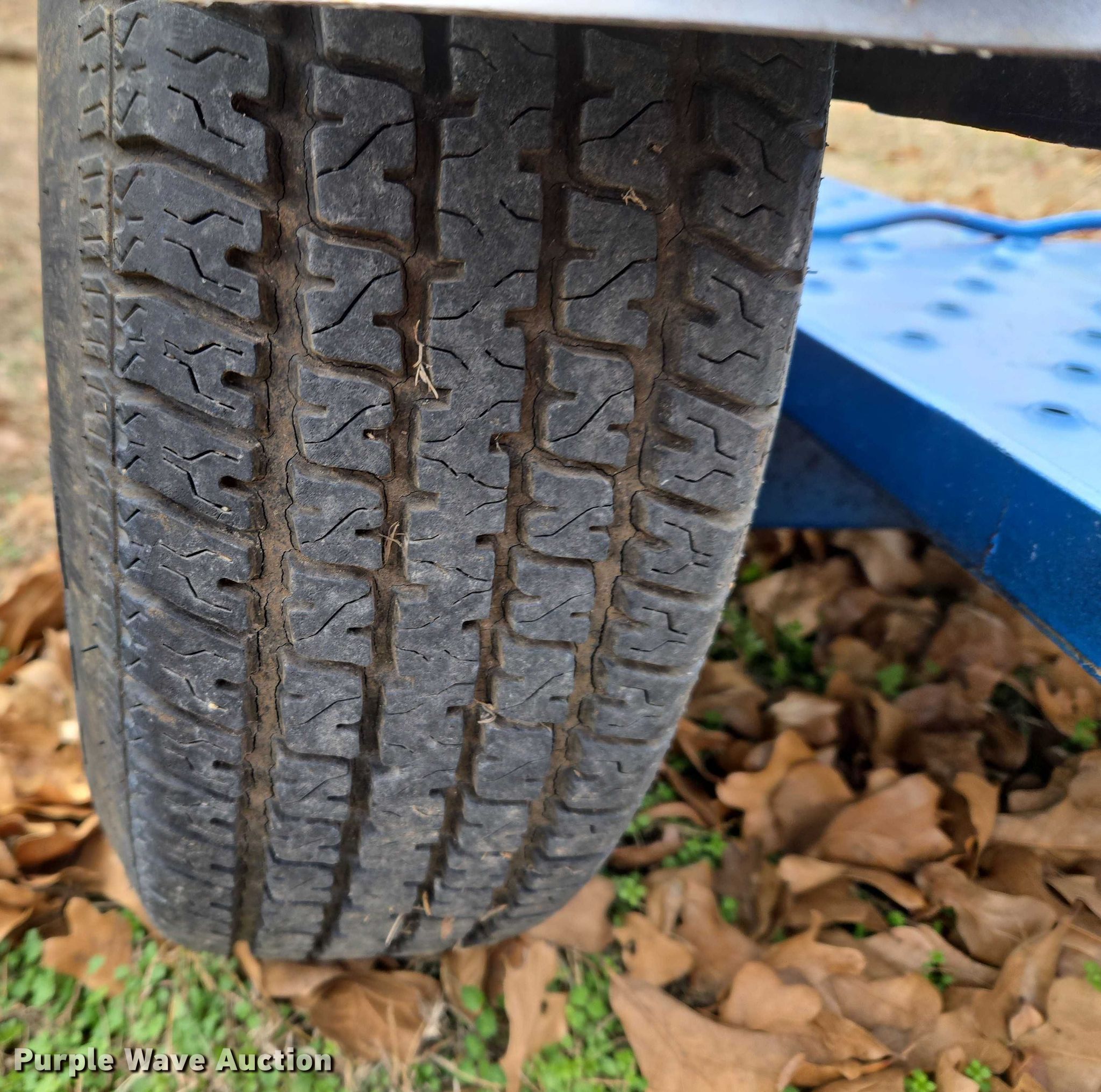 Shop built car dolly. Dimensions. Overall Length: 10' 2", Width: 96", Deck Length: 4' 2", Width: 6' 8". Features Deck type: Steel. Chassis Ball hitch: 1 7/8", Landing gear: Single, Brakes: Air. Tires Steel wheels, Size: ST175/80R13. Notes Lights damaged, Wires damaged. Transfer of ownership documentation will be a bill of sale. Ponca City, OK 74604