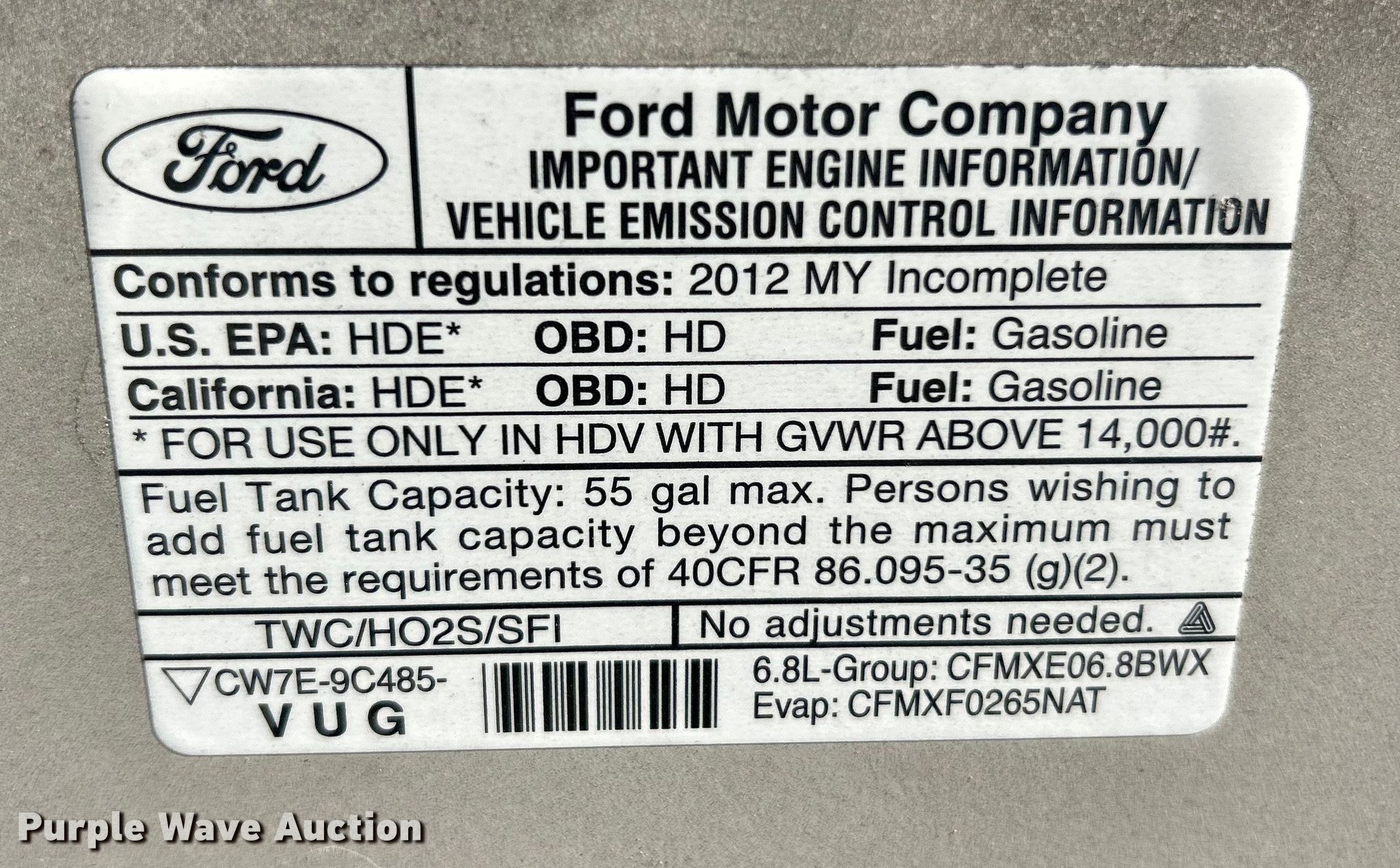 2012 Ford E450 Super Duty shuttle bus. Miles: 158,338 on odometer, VIN: 1FDFE4FSXCDB09327. Engine Displacement: 6.8L, Cylinders: 10, Fuel type: Gas. Transmission Automatic. Chassis Axles: Single, Suspension: Spring, Brakes: Hydraulic, GVWR: 14,500 lbs, Wheelbase: 158". Interior AC, Heat, Cruise control, Wheelchair lift. Tires Size: 225/75R16. Notes Glass missing, Seats missing. Missouri title. Seller is a Missouri licensed motor vehicle dealer. The buyer may be required to pay sales tax and/or registration fees to the dealer prior to taking possession. Buyers may be required to provide identification to the licensed dealer to comply with state laws. Title will be assigned and distributed by the dealer. Please contact the seller for distribution questions. Title distribution may be delayed up to 30 days from verification of funds. Northpoint Enterprises, LLC. Troy, MO 63379