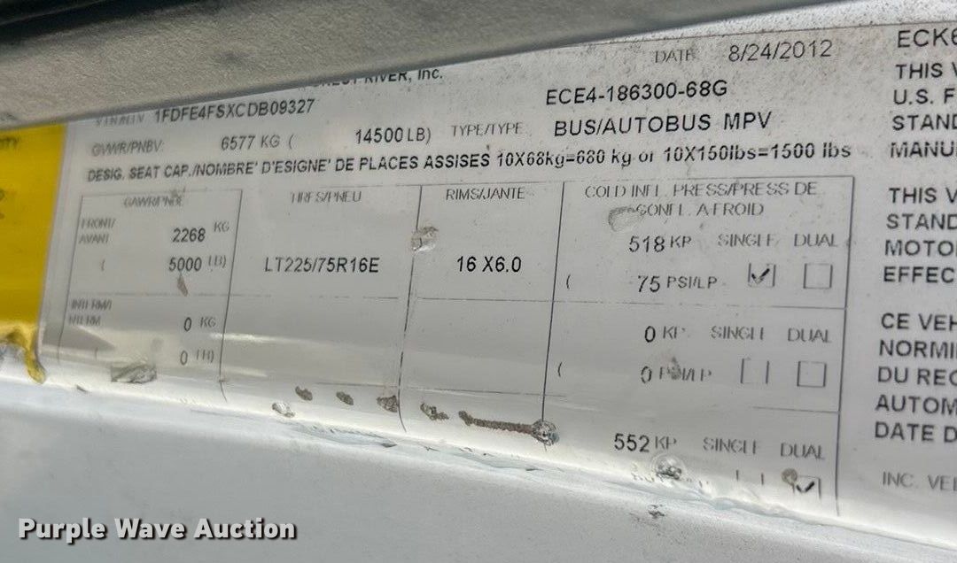 Purple Wave is selling a used Bus in Missouri. This item is a 2012 Ford E450 Super Duty shuttle bus with the following: Miles: 158,338 on odometer, VIN: 1FDFE4FSXCDB09327