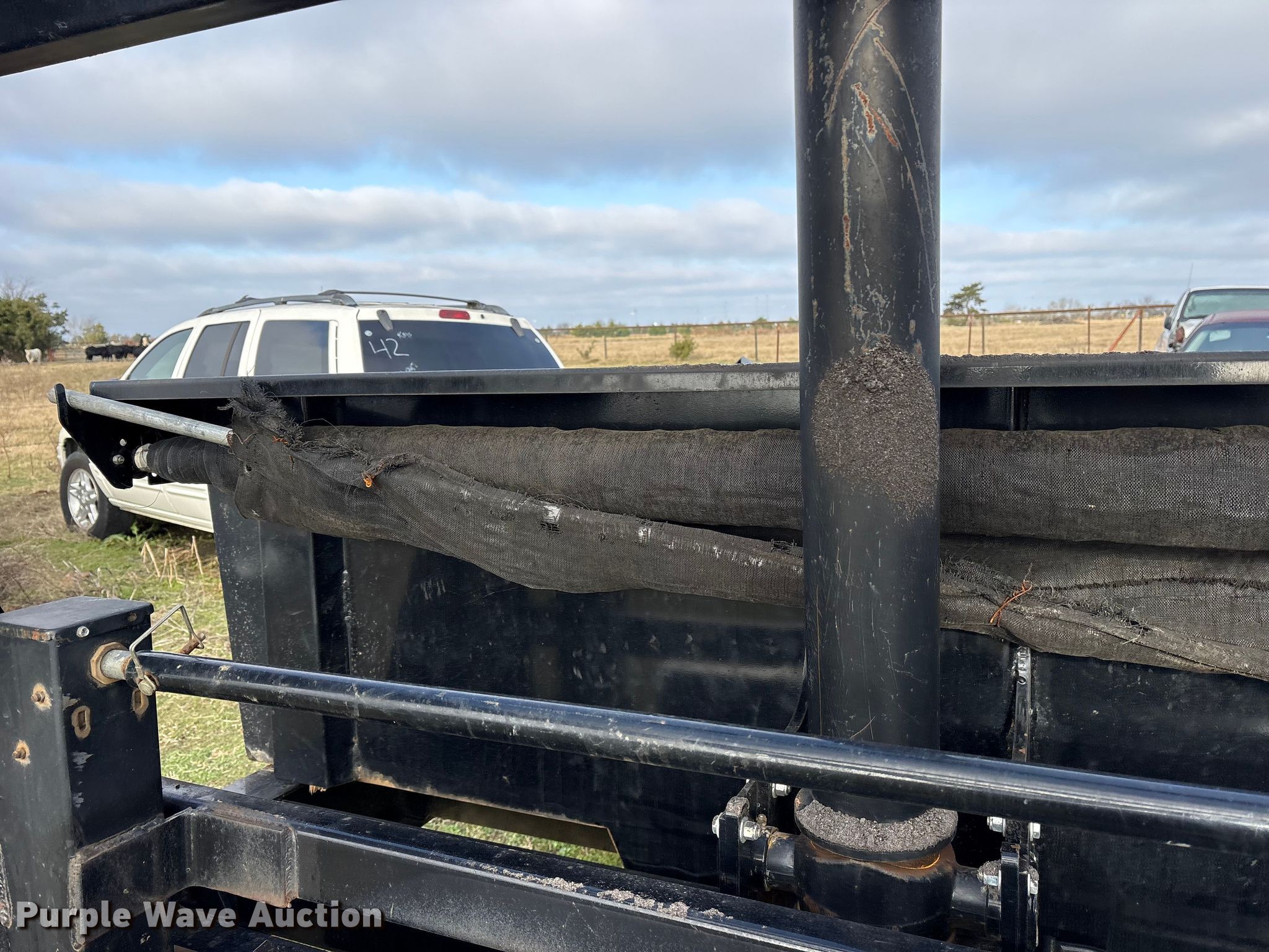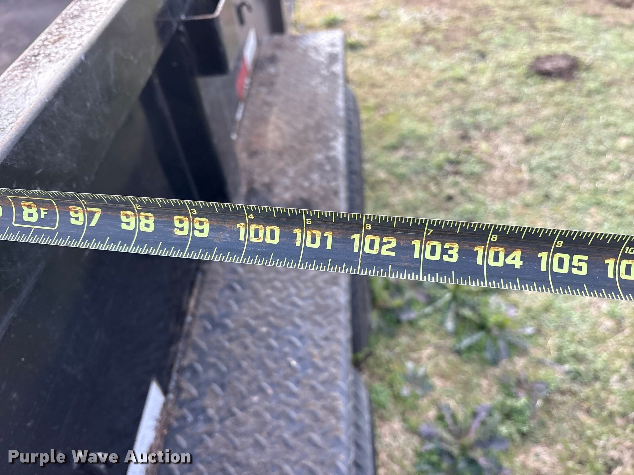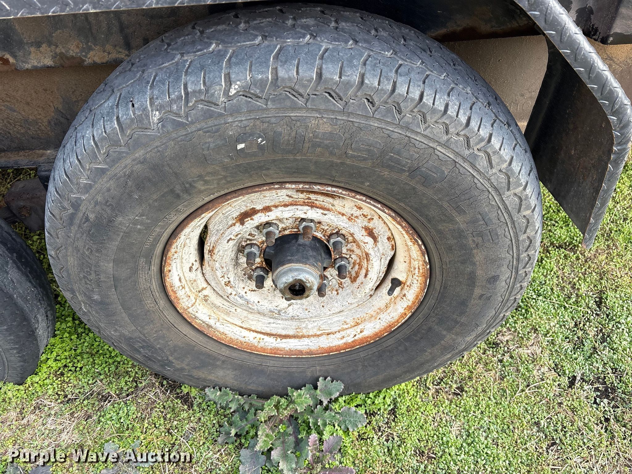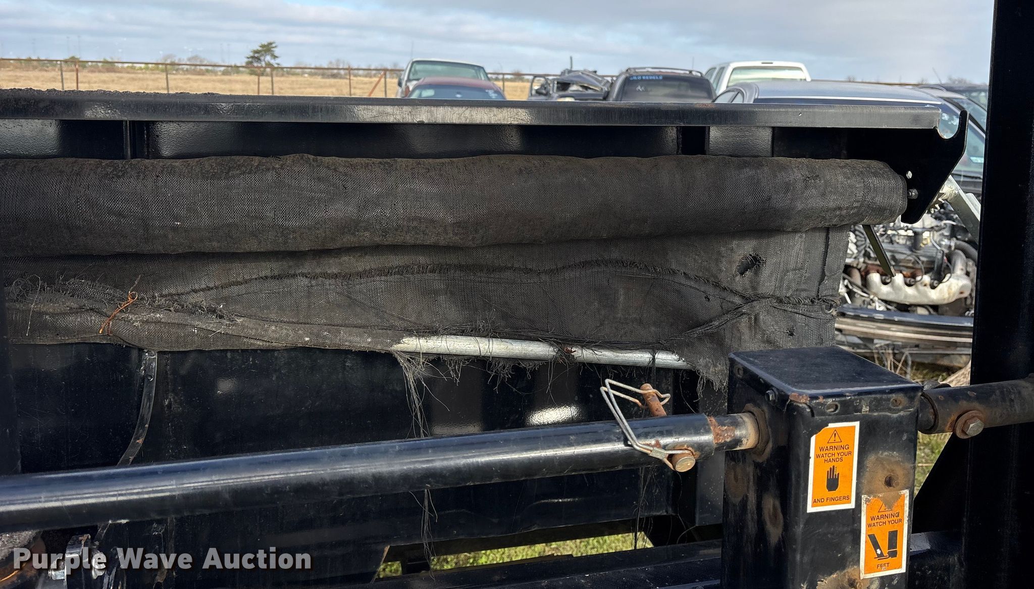 2022 Big Tex 14GT-14BK6SIR dump trailer. VIN: 16V3D2229N5201261. Dimensions Overall Length: 24', Width: 8' 6", Body Length: 14', Width: 7', Side height: 2'. Features Body type: Steel, Ram: Single, End gate: Manual, Trailer controls, Roll tarp. Chassis Hitch: Gooseneck, Landing gear: Dual, Suspension: Spring, Brakes: Electric, Axles: Tandem, GVWR: 15,900 lbs, GAWR: 7,000 lbs. Tires Steel wheels, Size: LT265/75R16. Notes Battery missing, Tire issues. Transfer of ownership documentation will be a bill of sale. Vision Bank. Durant, OK 74701