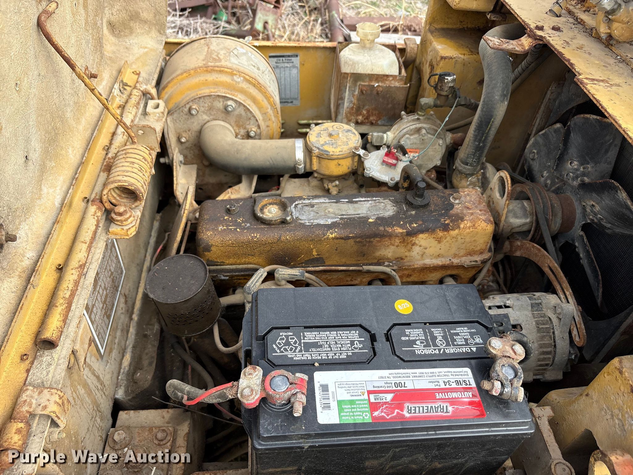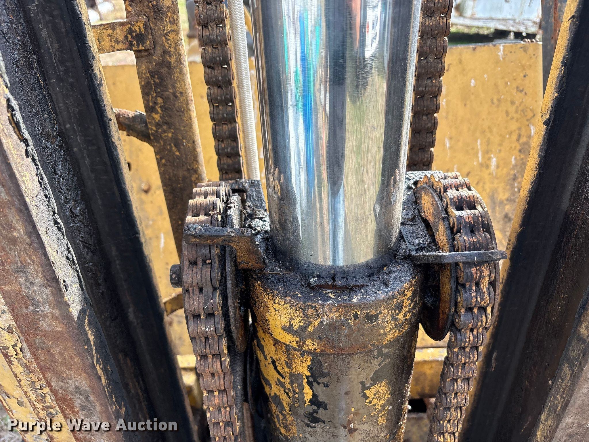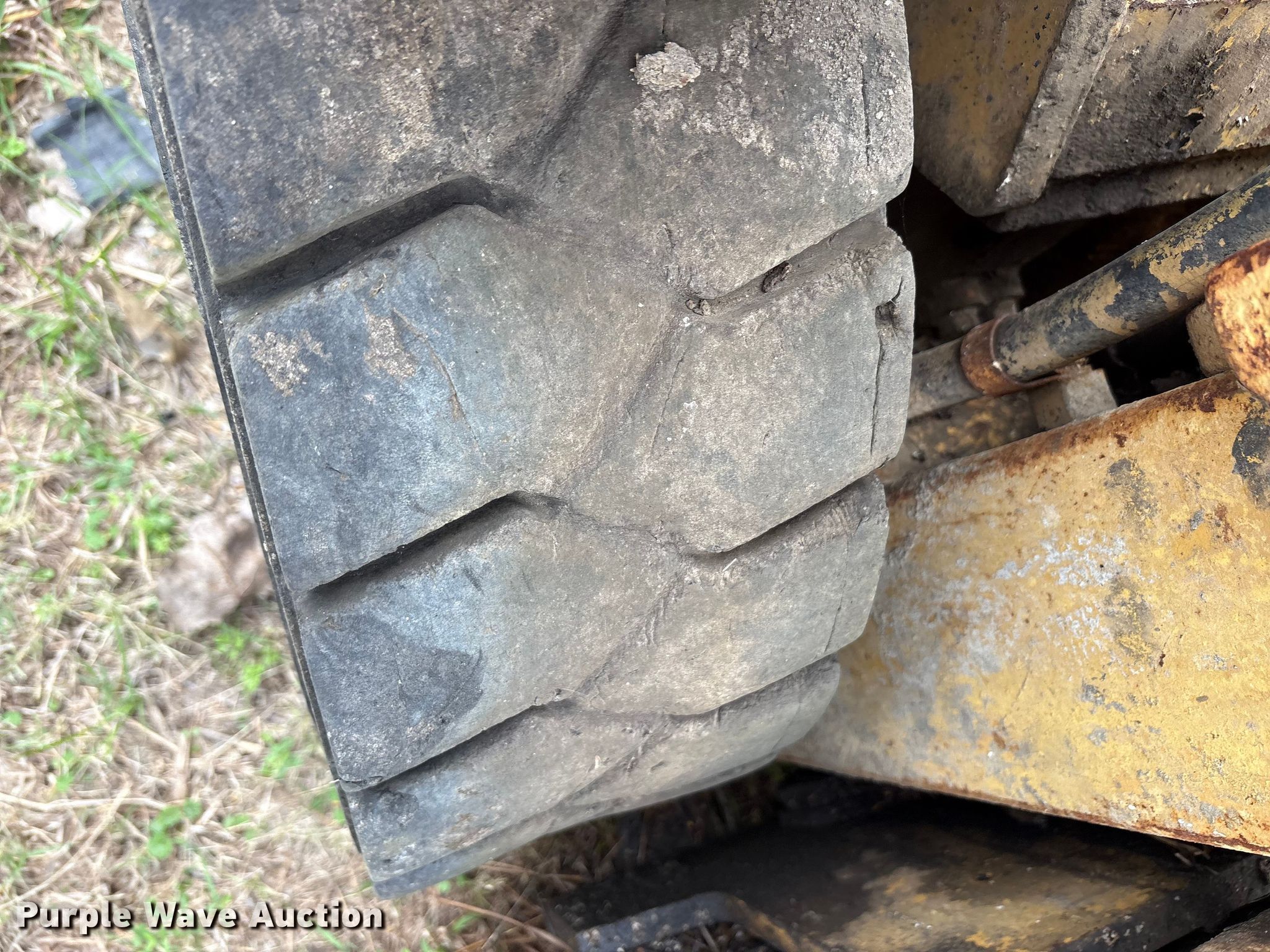 Caterpillar V50C forklift. Hours: 2,552 on meter, Serial: 02Y00725. Engine Caterpillar, Cylinders: 4, Fuel type: LPG LP bottle: Included. Transmission Manual. Operators station OROPS. Features Maximum lift capacity: 500 lbs, Maximum lift height: 159", Collapsed mast height: 38", Mast stages: 3, Side shift, Mast tilt, Fork length: 42". Tires Front: 29x8-15, Rear: 6.50X10. Notes Mast cylinder leaks. Delta Ag, LLC. Ben Franklin, TX 75415