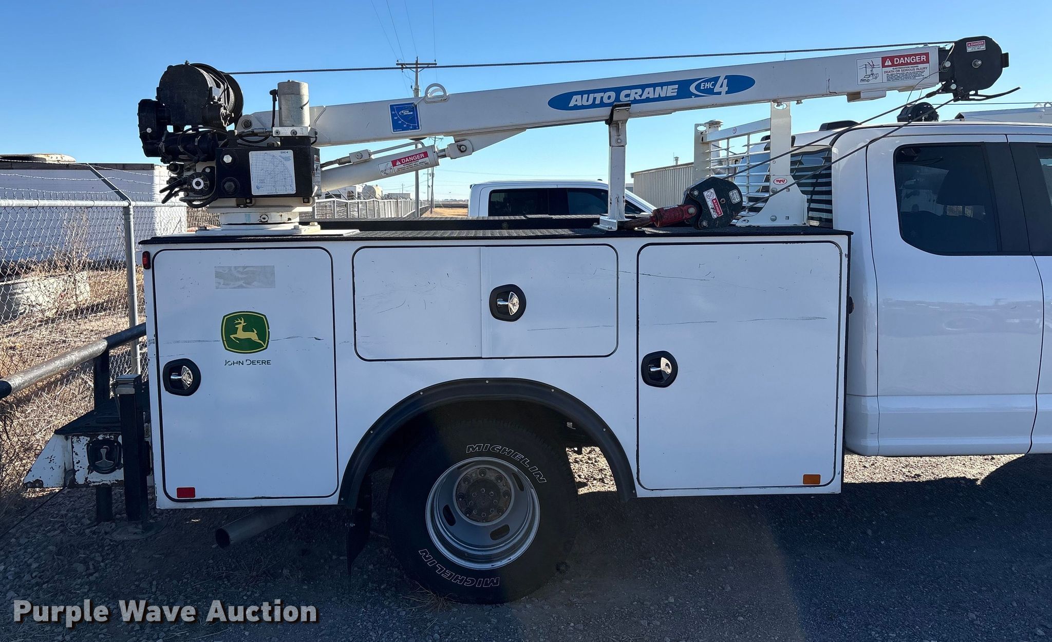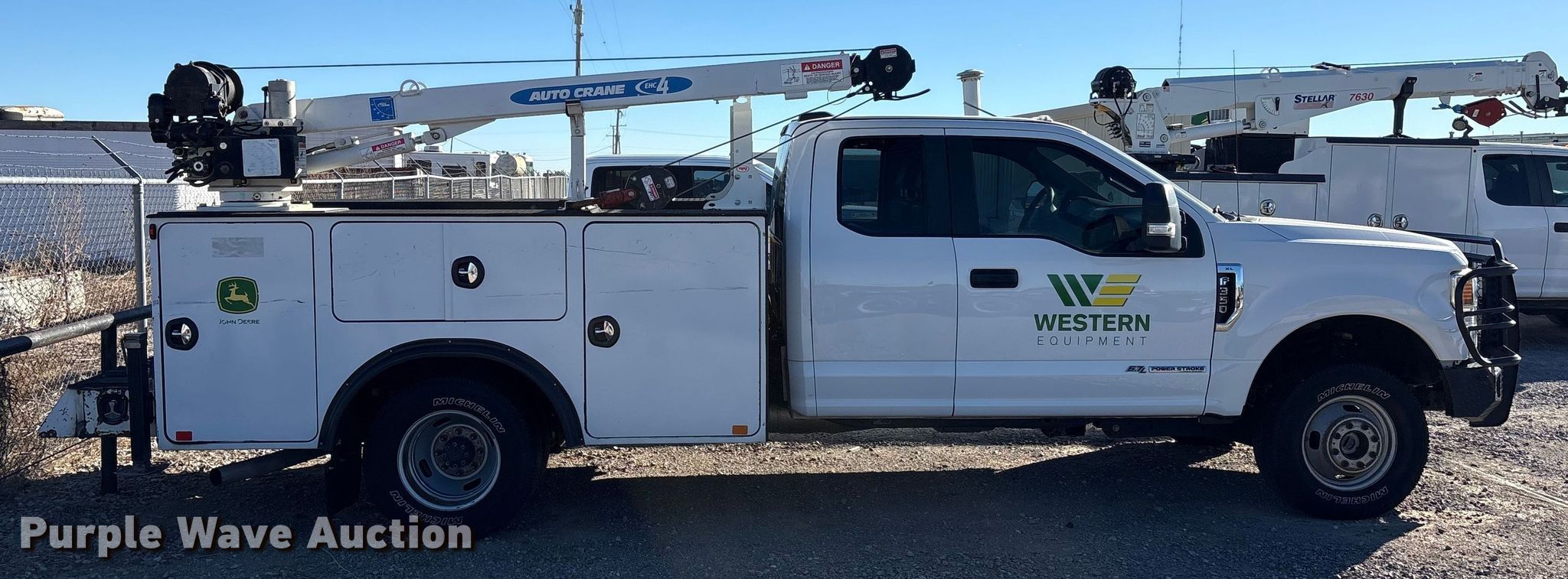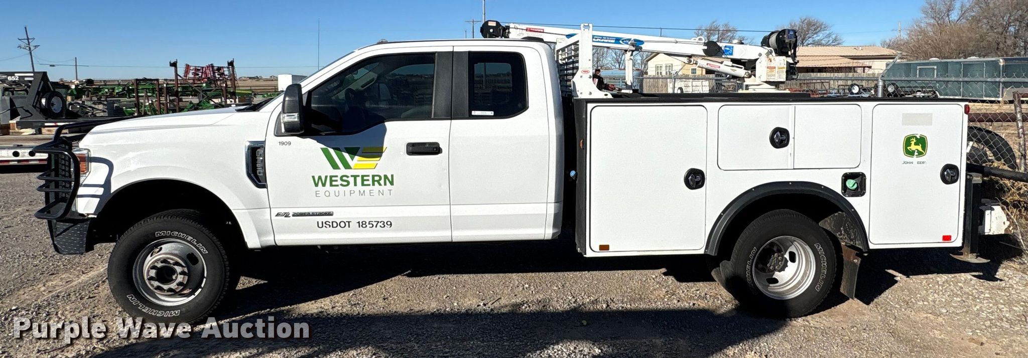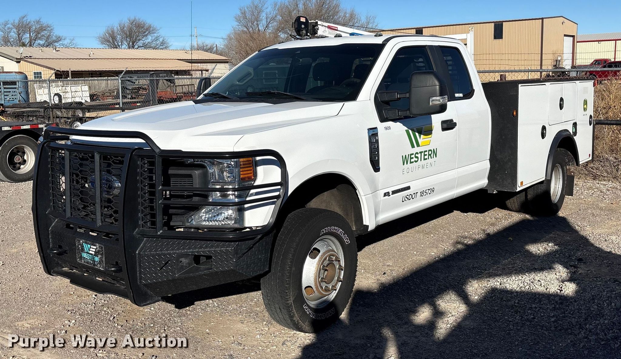 2020 Ford F350 Super Duty Ext. Cab utility bed pickup truck. Miles: 170,739 on odometer, VIN: 1FD8X3HT6LEC54569, Unit #: 1909. Engine Displacement: 6.7L, Cylinders: 8, Fuel type: Diesel. Transmission Automatic. Chassis Four wheel drive, Axles: Single, Suspension: Spring, Brakes: Hydraulic. Interior AC, Heat, Heated mirrors, Power windows, Power locks, Cruise control, Auxiliary controls, Brake controller. Features Bed Utility bed, Auto Crane 16K-Body, Serial: 16K-0120-005, Length: 11' 2", Width: 8', Crane Auto Crane EHC-4, Maximum boom length: 20' Maximum lift capacity: 4,000 lbs.. Tires Size: 245/75R17. Notes Windshield chipped or cracked, Hail damage, Batteries missing, Non-operational unit, Unit must be towed or hauled. Oklahoma title. Title distribution may be delayed up to 14 days from verification of funds. Western Lease LLC. Amarillo, TX 79119