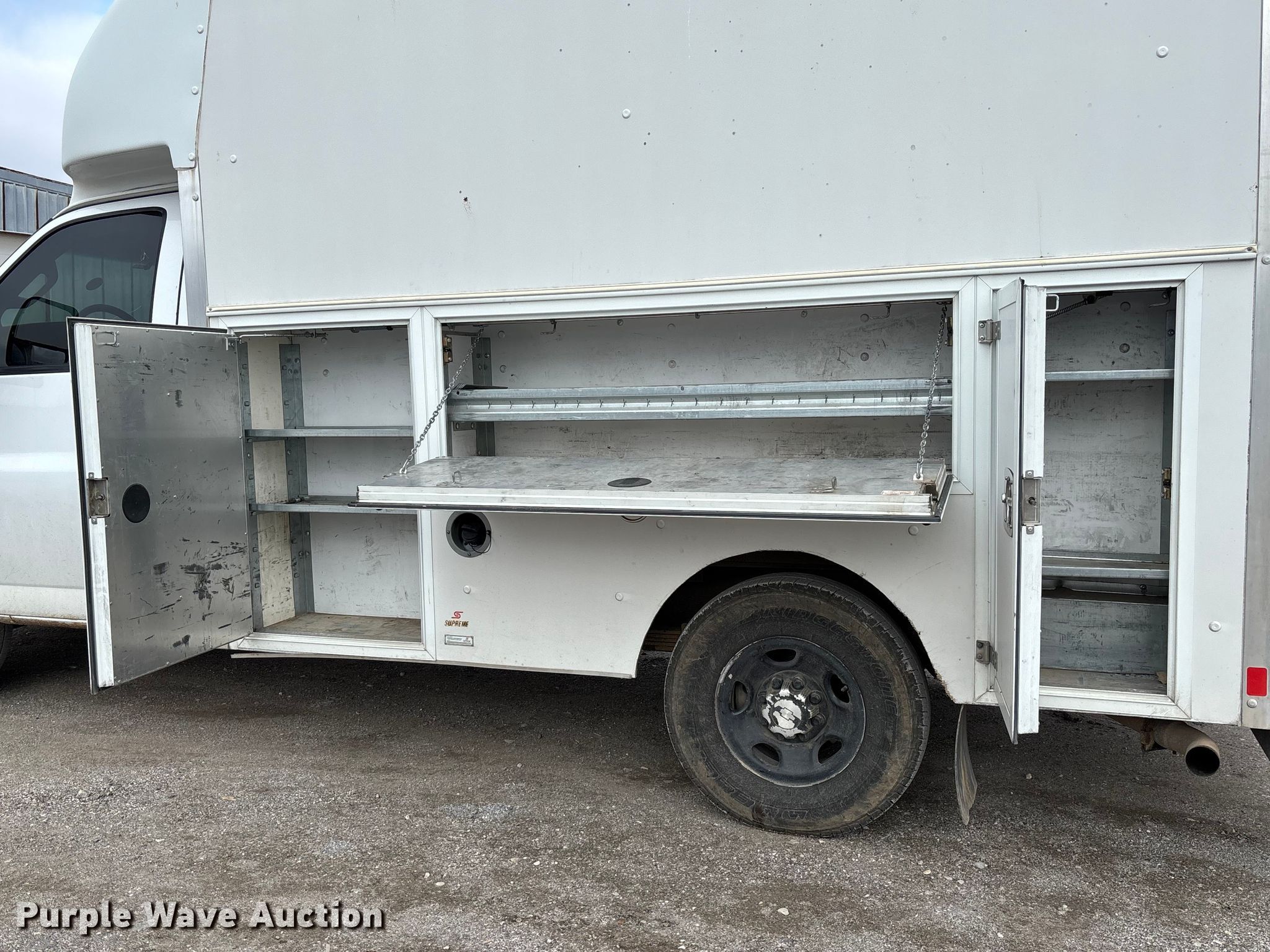 2017 Chevrolet Express 3500 utility van. Miles: 205,518 on odometer, Hours: 6,039 on meter, VIN: 1HA0GRFG6HN010482. Engine Displacement: 6.0L, Cylinders: 8, Fuel type: Gas. Transmission Automatic. Interior AC, Heat, Power windows, Power locks, Cruise control, Backup camera. Features Bed Utility bed, Supreme SSB10078079, Serial: H0403826, Length: 10' 8", Width: 79", Height: 79". Tires Size: 245/75R16. Notes Dash warning indicator: TPMS, Windshield chipped or cracked. Oklahoma title. Title distribution may be delayed up to 30 days from verification of funds. Rockin h Truck& Equipment Service llc. Miami, OK 74354