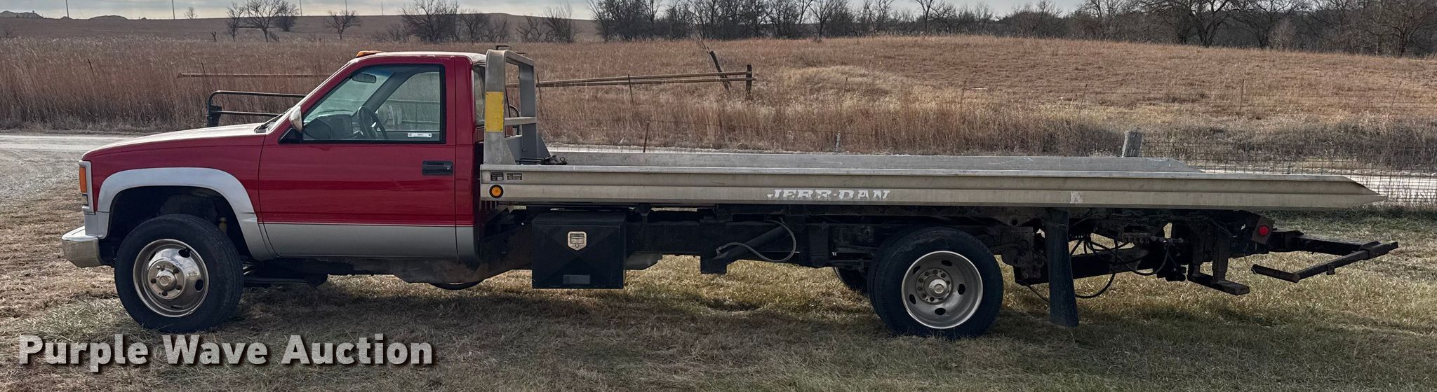 1994 Chevrolet C3500 rollback truck. Miles: 313,318 on odometer, VIN: 1GBKC34N4RJ114005. Engine Displacement: 7.4L, Cylinders: 8, Fuel type: Gas. Transmission Manual, Speed: 5. Chassis Axles: Single, Suspension: Spring, Brakes: Hydraulic. Interior AC, Heat. Features Bed Rollback bed, Jerr-Dan 19AEL, Serial: 29244, Length: 19', Width: 86", Ram: Dual, Winch, Underlift. Tires Size: 225/79R19.5. Kansas title. Title distribution may be delayed up to 30 days from verification of funds. Farmer State Bank. Westmoreland, KS 66549