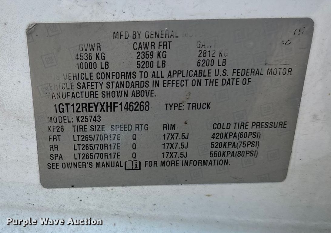 2017 GMC Sierra 2500HD Crew Cab pickup truck. Miles: 251,435 on odometer, VIN: 1GT12REYXHF146268. Engine Displacement: 6.6L, Cylinders: 8, Fuel type: Diesel. Transmission Automatic, Four wheel drive. Interior AC, Heat, Heated mirrors, Power windows, Power locks, Cruise control, Backup camera, Auxiliary controls, Brake controller. Tires Size: 265/70R17. Notes Dash warning indicator: Check engine, TPMS, ABS, Brake, Traction control, Airbag. Illinois title. Title distribution may be delayed up to 14 days from verification of funds. Byrne & Jones Construction. Olathe, KS 66061