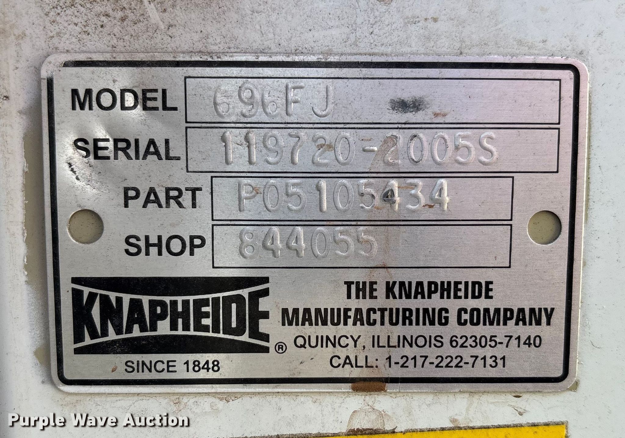 Purple Wave is selling a used Automotive Parts or Acces. in Kansas. This item is a Knapheide 696FJ pickup truck utility bed with the following: Serial: 119720-2005S