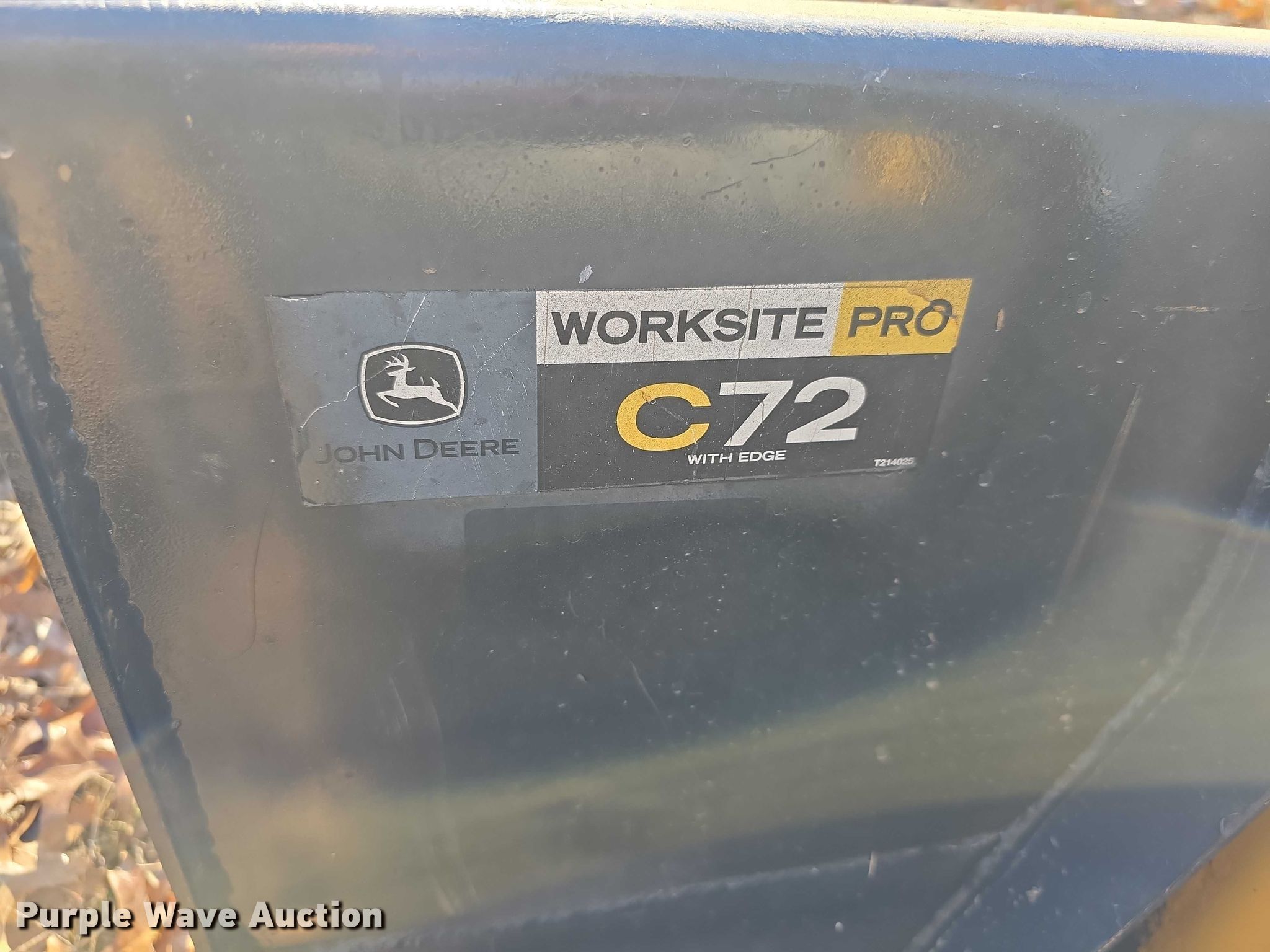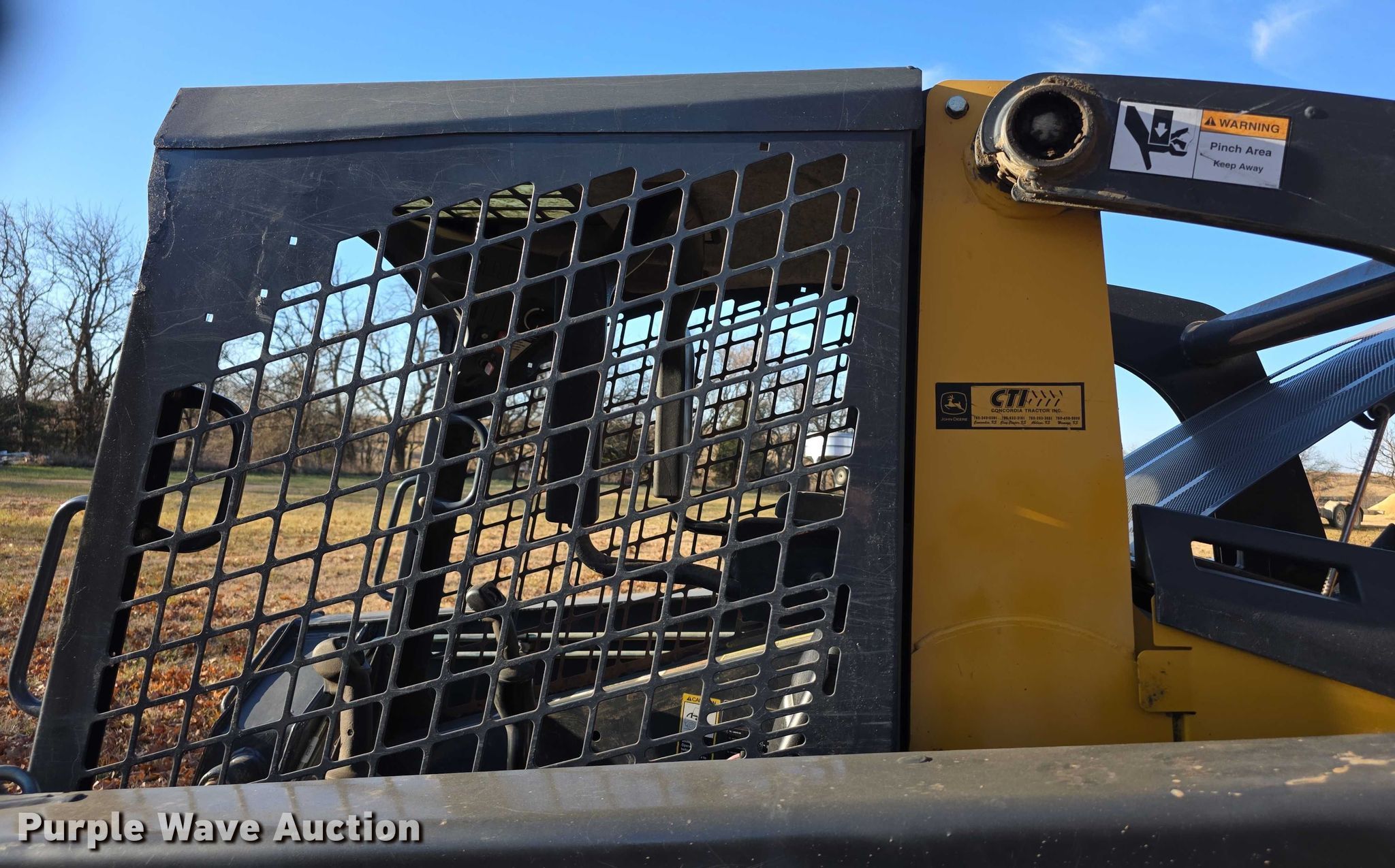 2013 John Deere 320D skid steer loader. Hours: 2,799 on meter, Serial: 1T0320DBCDG240571. Engine Cylinders: 4, Fuel type: Diesel. Transmission Hydrostatic, Two speed travel. Operators station OROPS, Bucket control: Foot, Electronic Monitoring System panel. Features Auxiliary hydraulics, Quick coupler: Hydraulic, Counter weights, Bucket John Deere C72 worksite pro, Width: 72", Low profile, Cutting edge: Bolt-on. Tires Size: 12-16.5. Notes Door missing. Clay Center, KS 67432