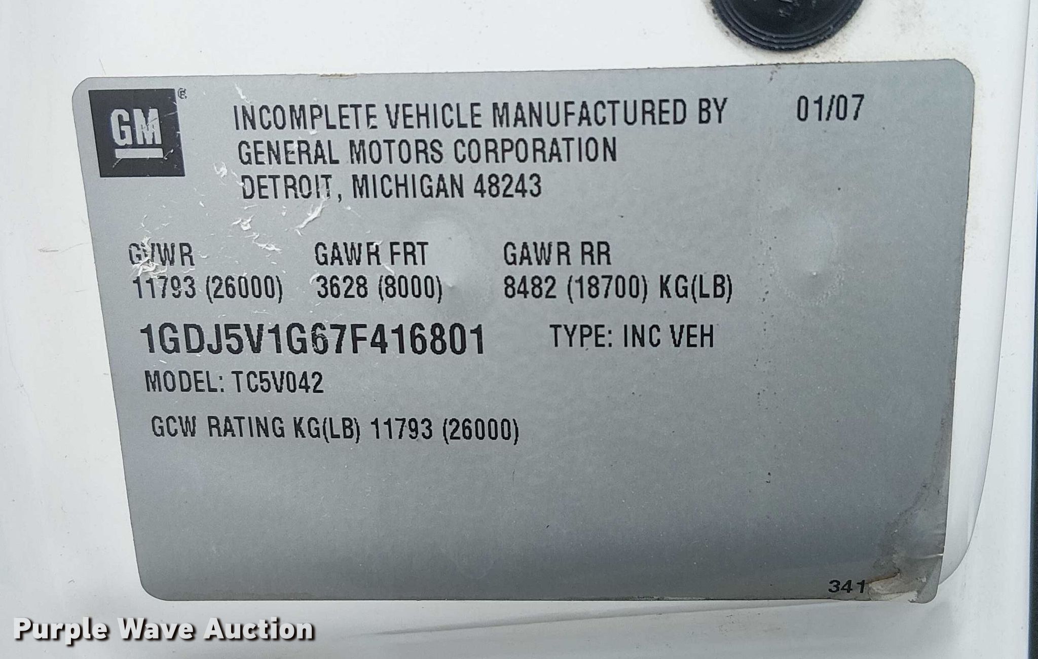 - VIN: 1GDJ5V1G67F416801