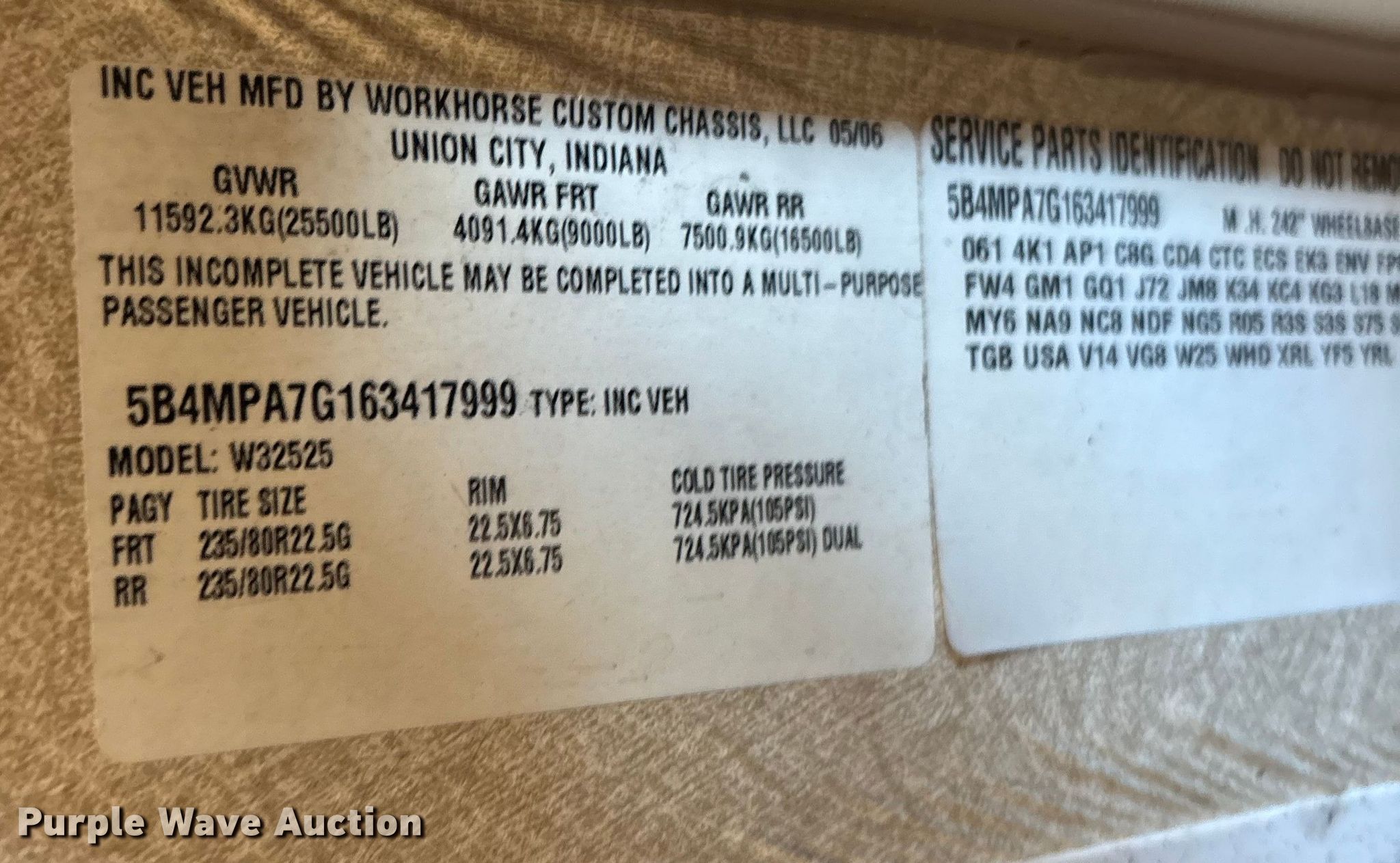 - VIN: 5B4MPA7G163417999