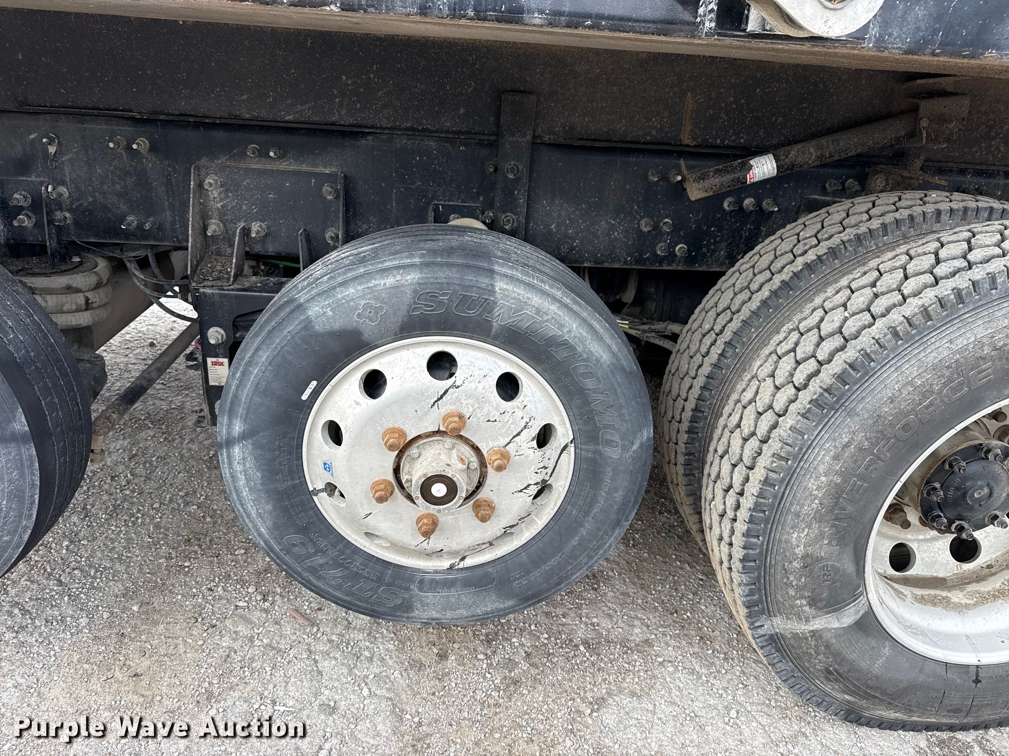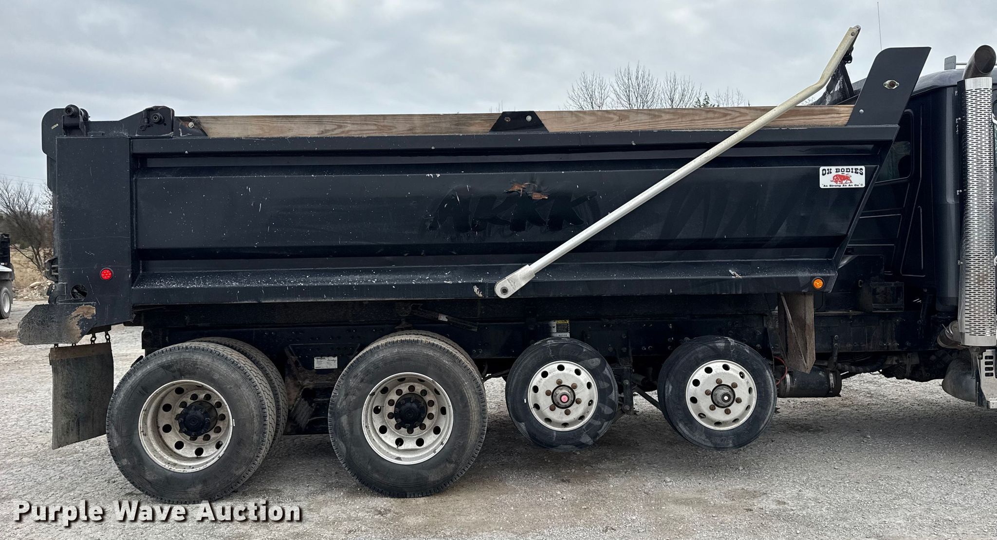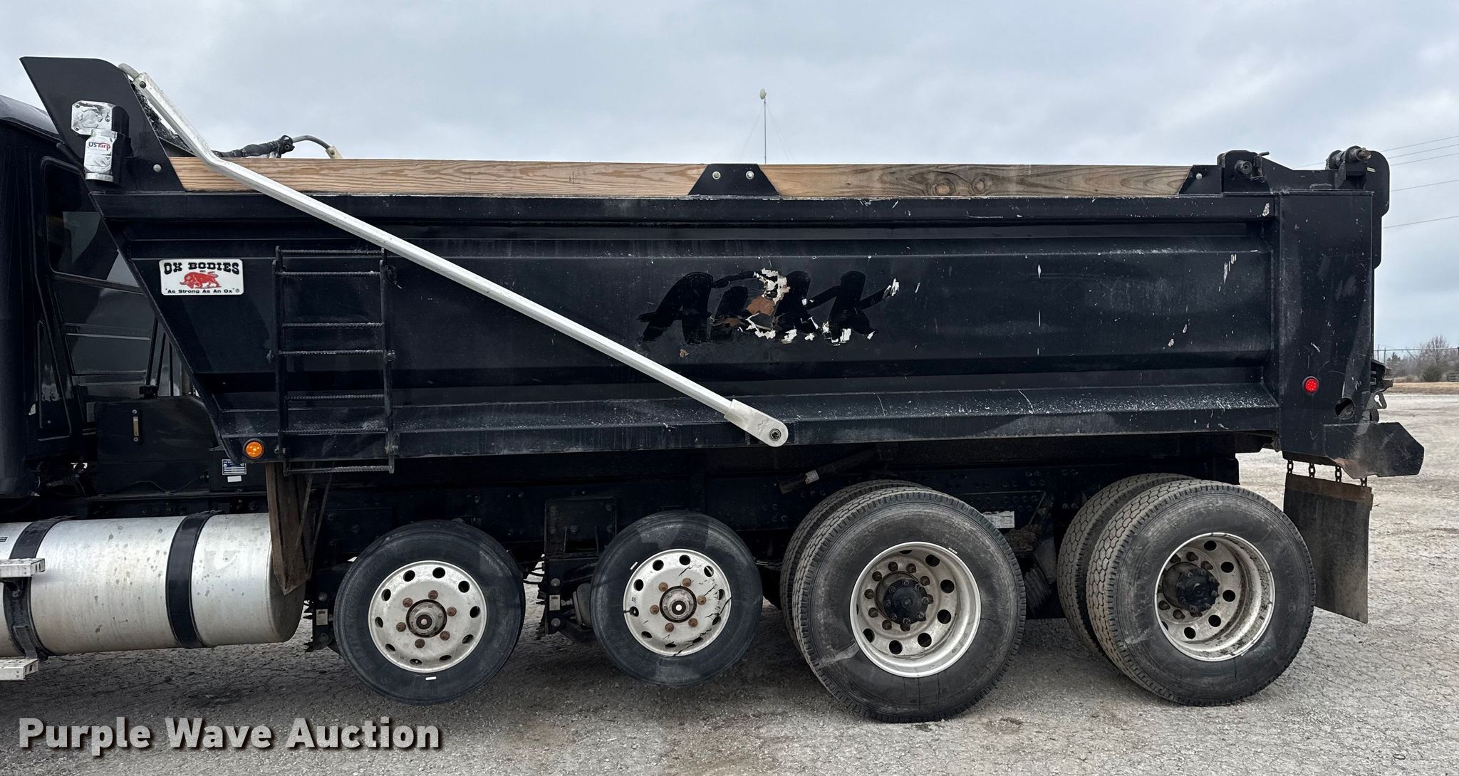 2023 Mack Granite dump truck. Miles: 195,271 on odometer, VIN: 1M2GR3GC4PM032017. Engine Mack MP8, Displacement: 13.0L, Fuel type: Diesel, Engine brake. Transmission Automatic. Chassis Axles: 4, Pusher axle, Differential lock: Inter-axle, Suspension: Spring over walking beam, Brakes: Air, PTO, GVWR: 58,000 lbs FAWR: 18,000 lbs, IAWR: 20,000 lbs, RAWR: 20,000 lbs. Interior AC, Heat, Heated mirrors, Power windows, Cruise control. Features Bed Dump bed, Ox Bodies, Inc. 18FT 17/18YD, Serial: FR220108210055135AL, Length: 18', Width: 96", Side height: 42", Side board height: 6", Bed type: Steel, Roll tarp, Ram: Single, End gate: Air operated. Tires Front: 315/80R22.5, Rear: 11R22.5, Lift axle: 215/75R27.5. Notes Dash warning indicator: Check engine, Traction control, Dash warning indicator: Hill assist, ATC, Windshield chipped or cracked, Tag axle tires damaged. Oklahoma title. Title has a lien that will be released following the close of the auction. Title distribution may be delayed up to 30 days from verification of funds. ARKK Trucking, Inc.. Sand Springs, OK 74063