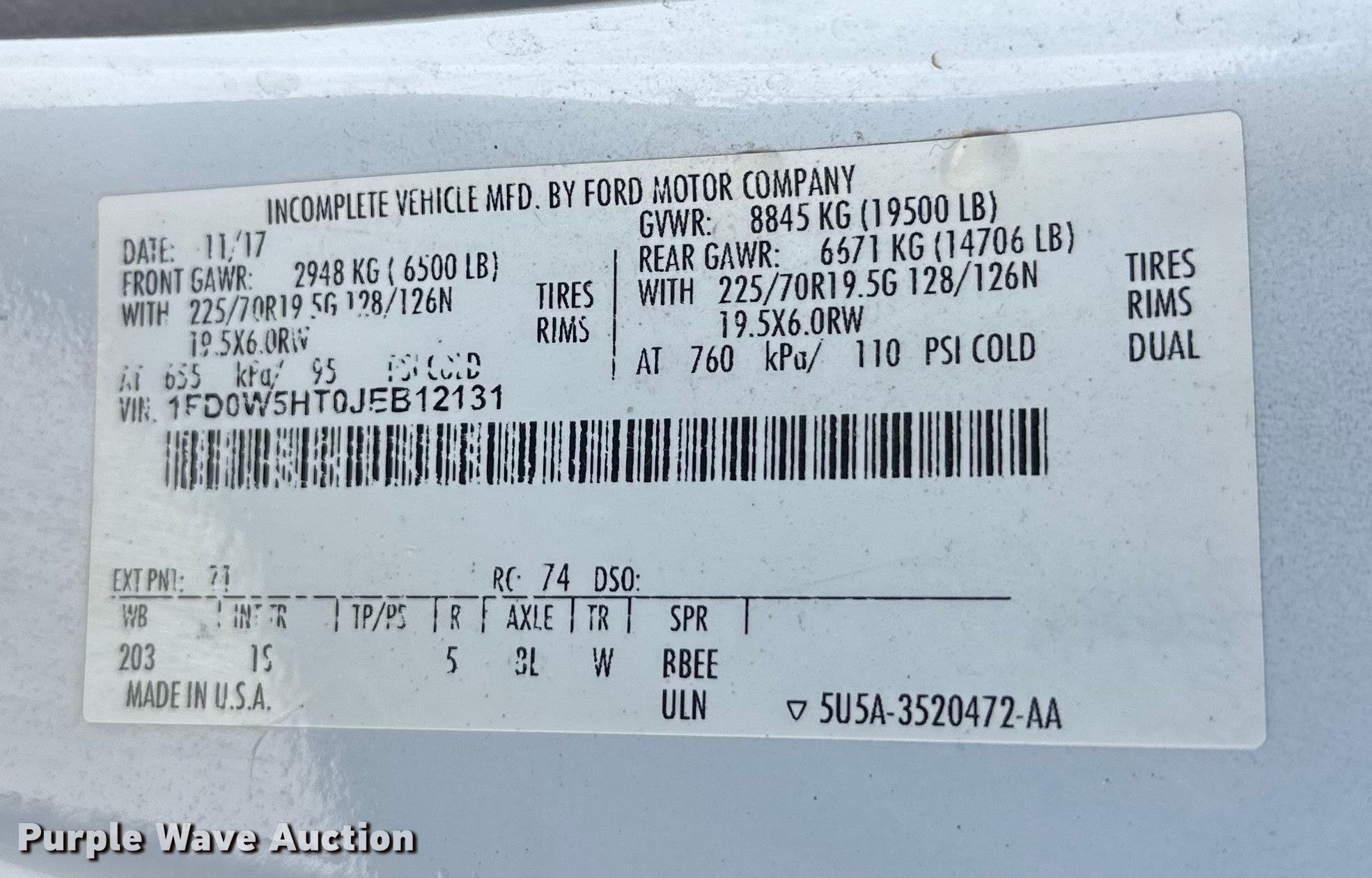 2018 Ford F550 flatbed truck. Miles: 178,642 on odometer, VIN: 1FD0W5HT0JEB12131. Engine Displacement: 6.7L, Cylinders: 8, Fuel type: Diesel, HP: 440. Transmission Automatic, Four wheel drive. Interior AC, Heat, Power windows, Power locks, Cruise control, Auxiliary controls. Features Bed Flatbed, Length: 8', Width: 11' 4". Tires Size: 255/70R19.5. Notes DPF deleted. Minnesota title. Title has a lien that will be released following the close of the auction. Title distribution may be delayed up to 30 days from verification of funds. Big Block Masonry Inc.. Forest Lake, MN 55025