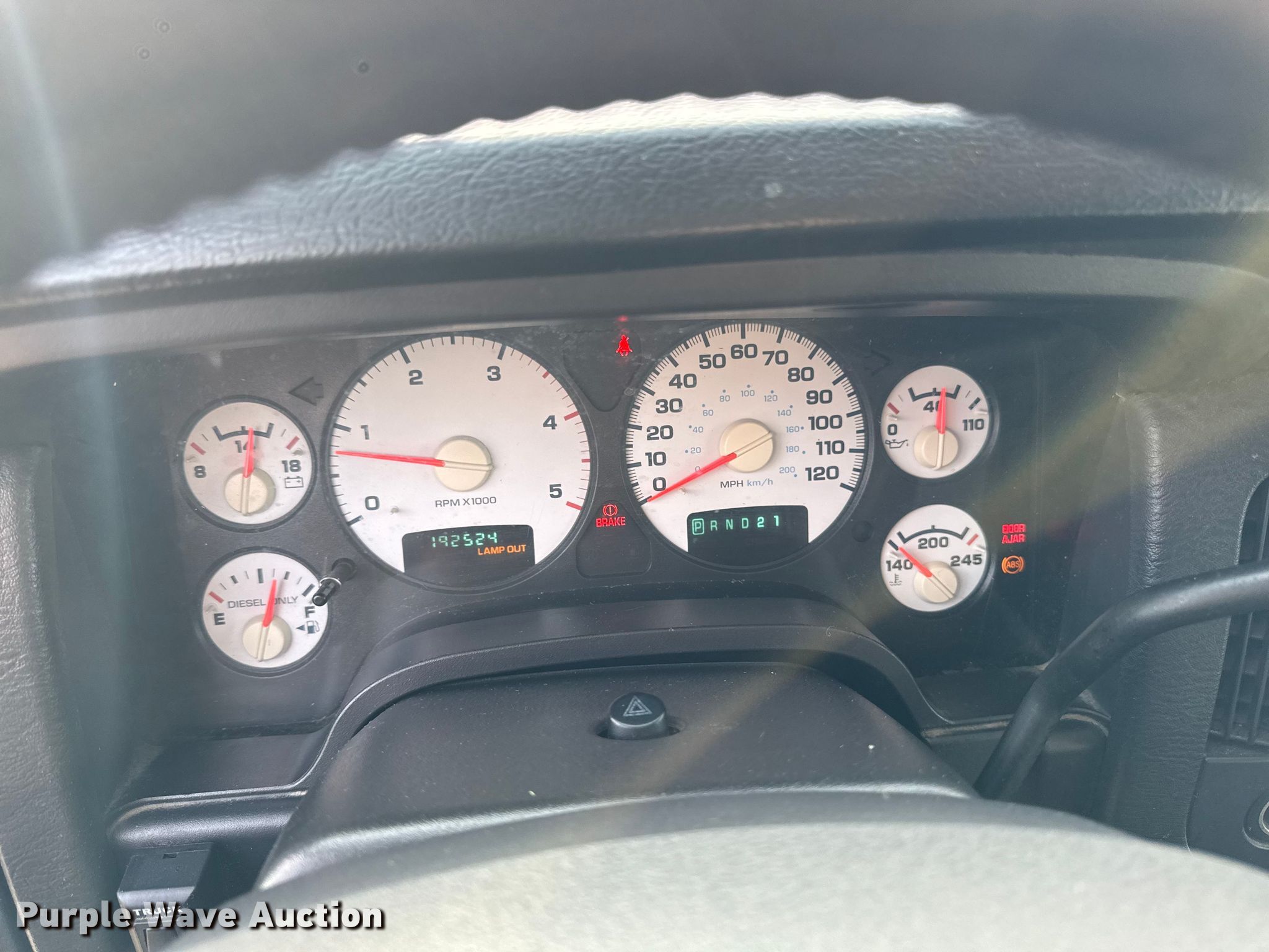2004 Dodge Ram 2500 Ext. Cab flatbed pickup truck. Miles: 192,524 on odometer, Miles or hours may vary, unit still in use, VIN: 3D7KU286X4G116962. Engine Displacement: 5.9L, Cylinders: 6, Fuel type: Diesel. Transmission Automatic, Four wheel drive. Interior AC, Heat, Seat: Power driver, Power passenger, Power windows, Power locks, Cruise control, Brake controller. Features Bed Flatbed, Hillsboro, Length: 7', Width: 81", Hitch: Gooseneck. Tires Size: 265/70R17. Notes Dash warning indicator: ABS, Brake, Transmission issues Slips, Leaks. Iowa title. Title distribution may be delayed up to 14 days from verification of funds. Davenport, IA 52806