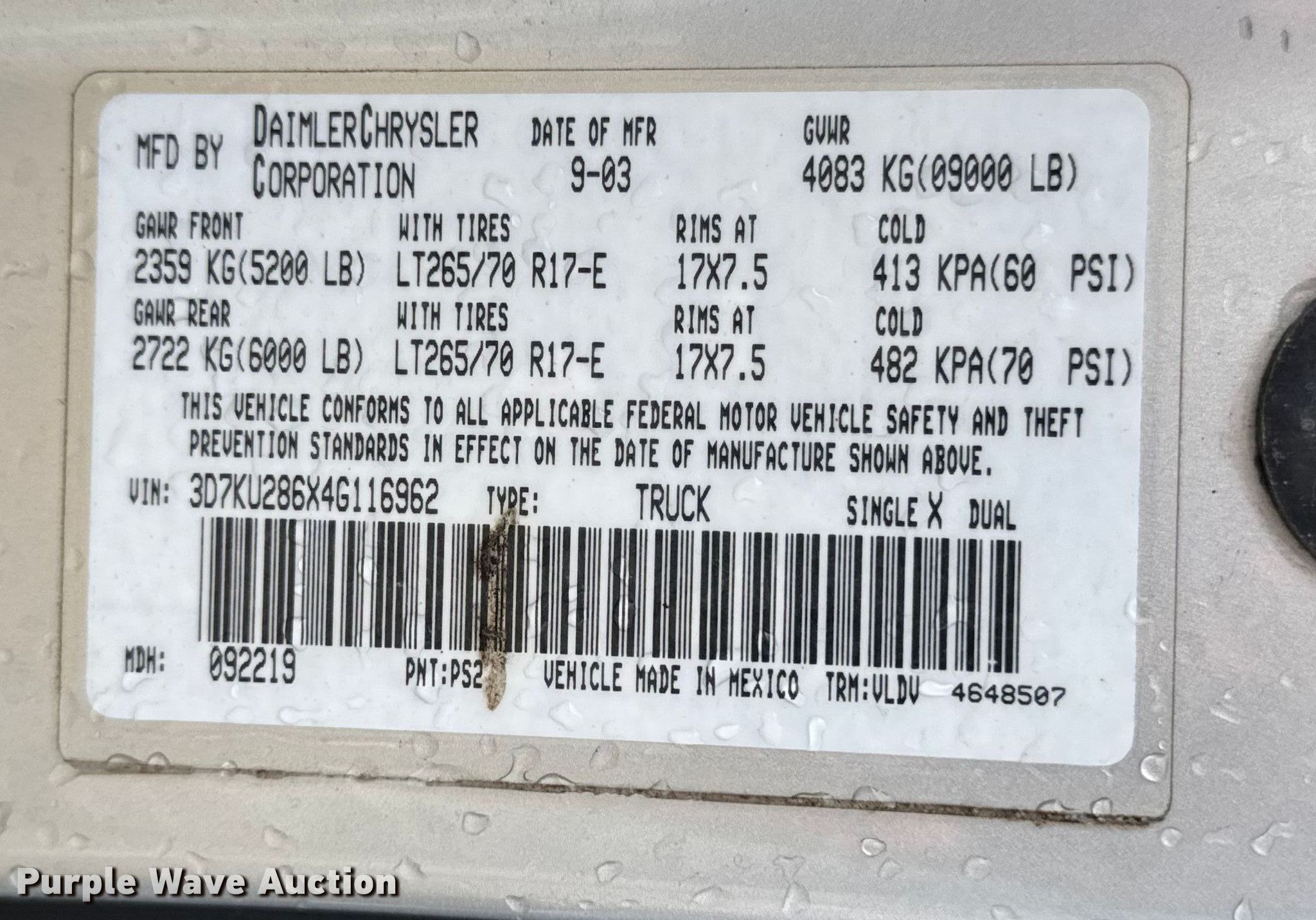 Take a look at this used 2004 Dodge Ram 2500 Ext. Cab flatbed pickup truck being sold on January 15th, 2026 in the Thursday January 15 Construction Equipment Auction made by Dodge. Take a look at all of the item information below or take a look at similar auctions for Pickups and Vans.